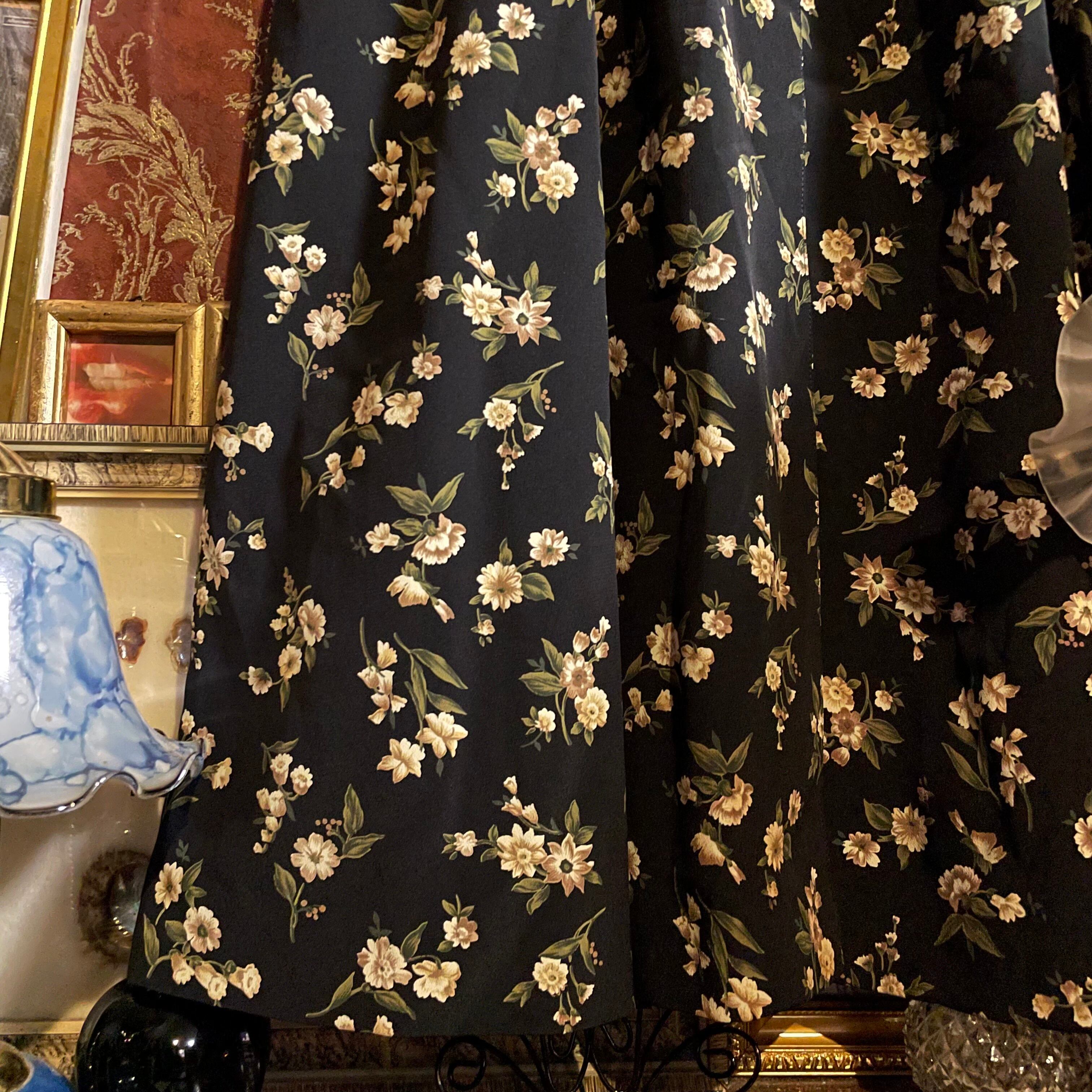 黒をベースにセピアカラーの花柄ワンピースです。