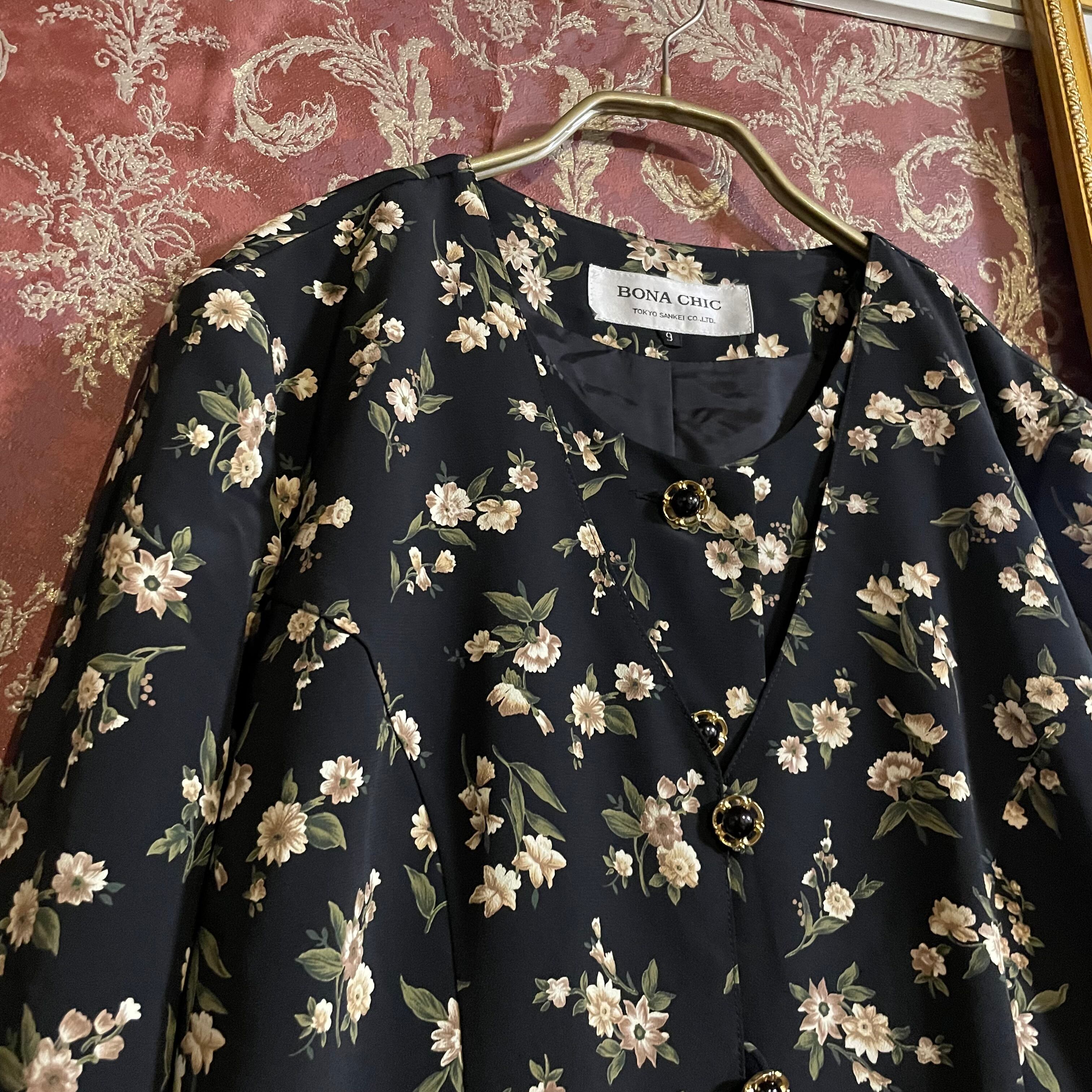 black × flower ensemble style one piece