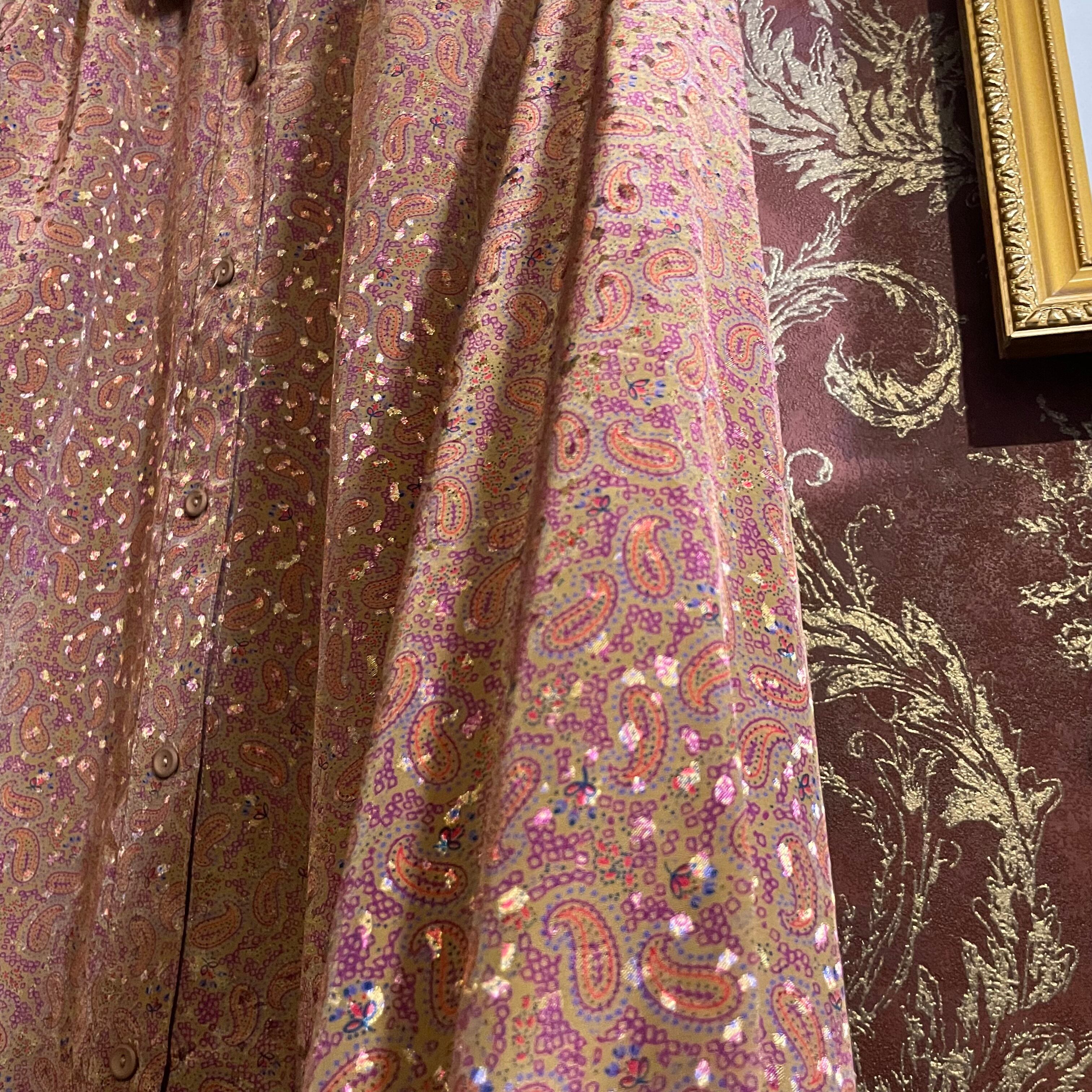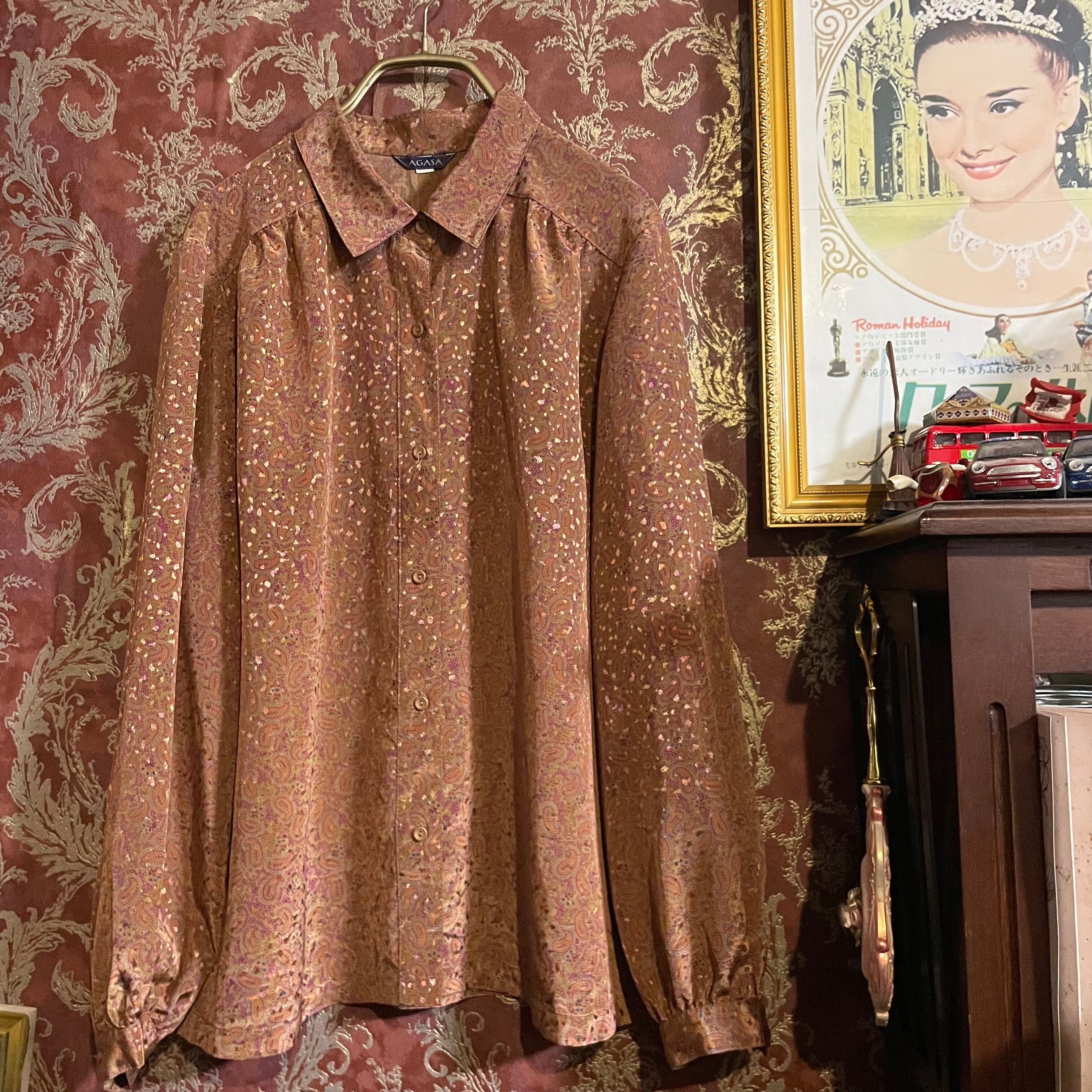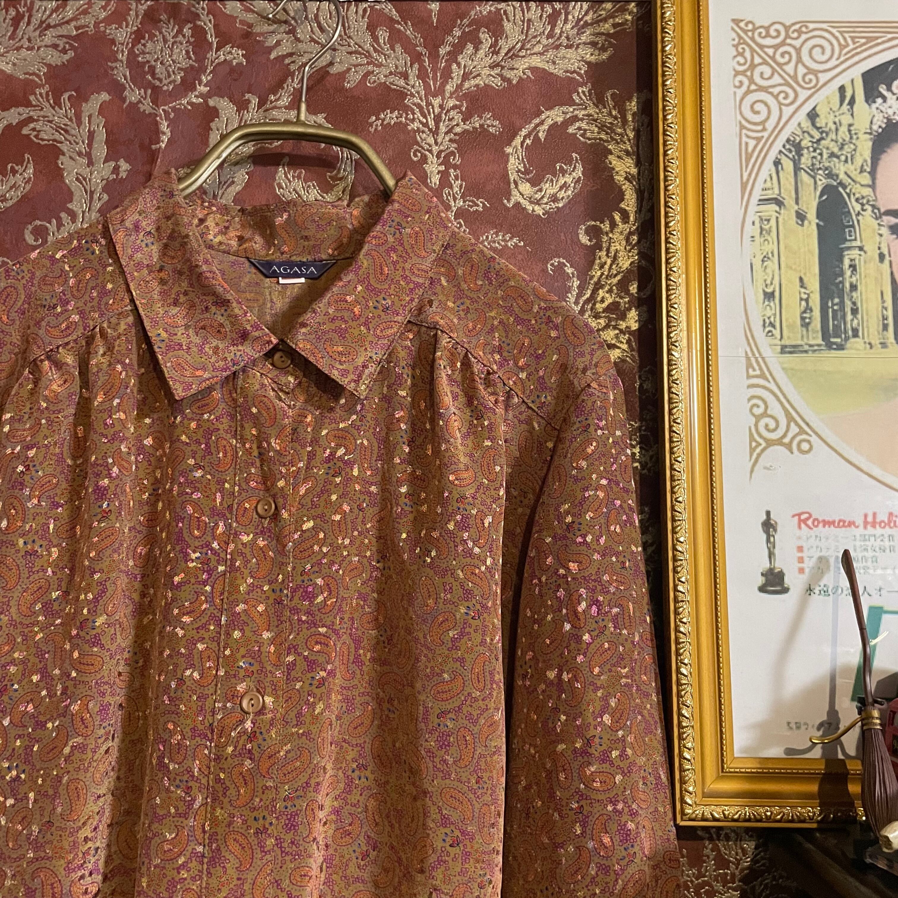 何色と表現したら良いか分からないペイズリー柄のブラウスです。