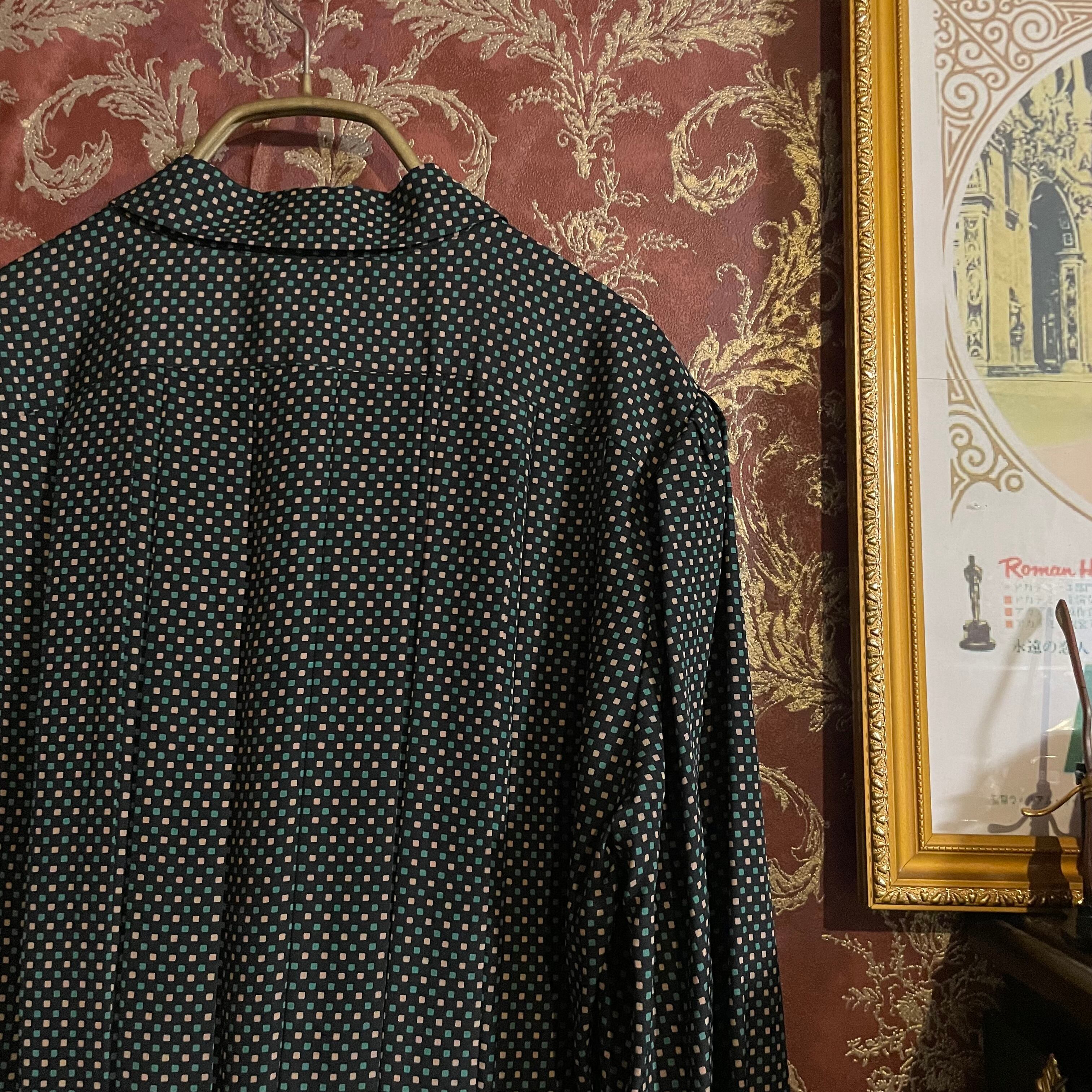 シックで大人っぽいブラック×グリーン×ベージュのスクエア柄ワンピースです。