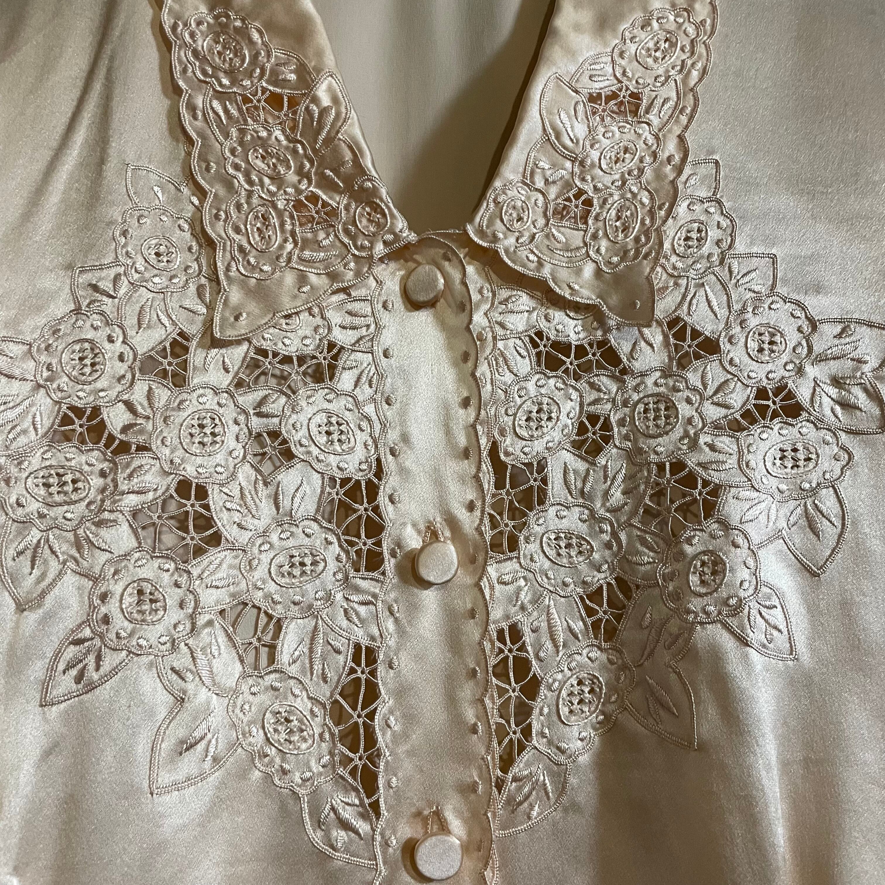 ピュアシルクに細かい手刺繍が施された繊細で豪華な一着です。