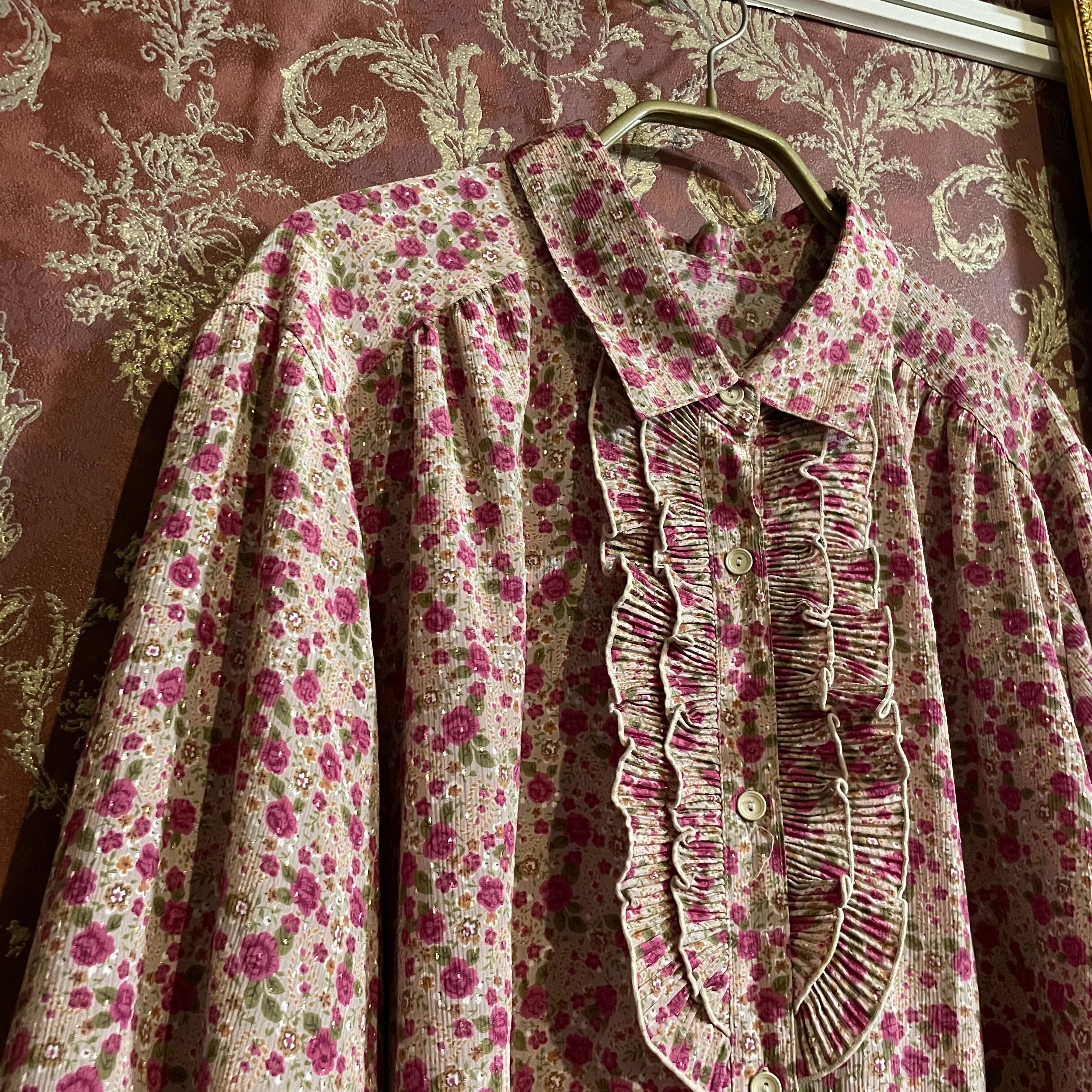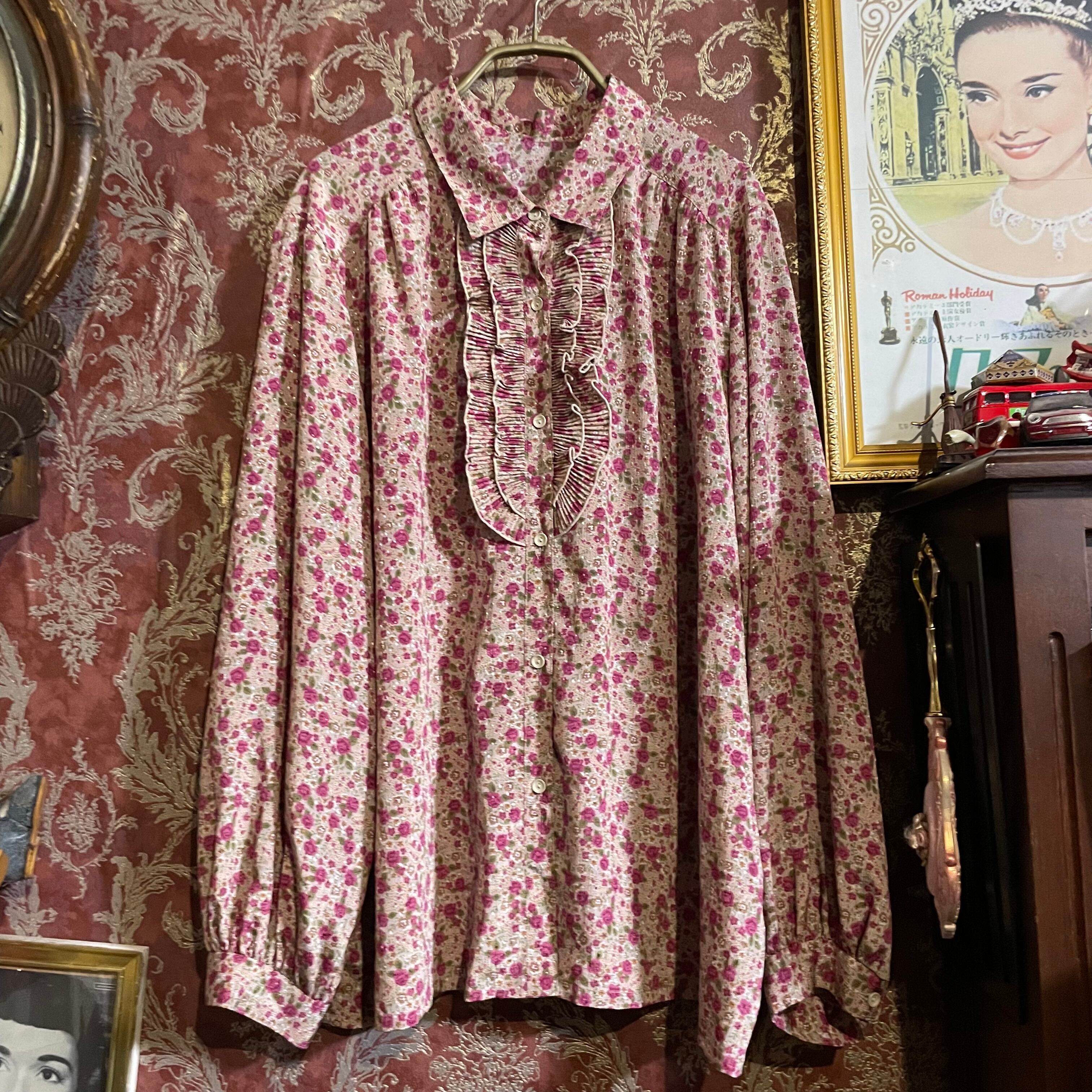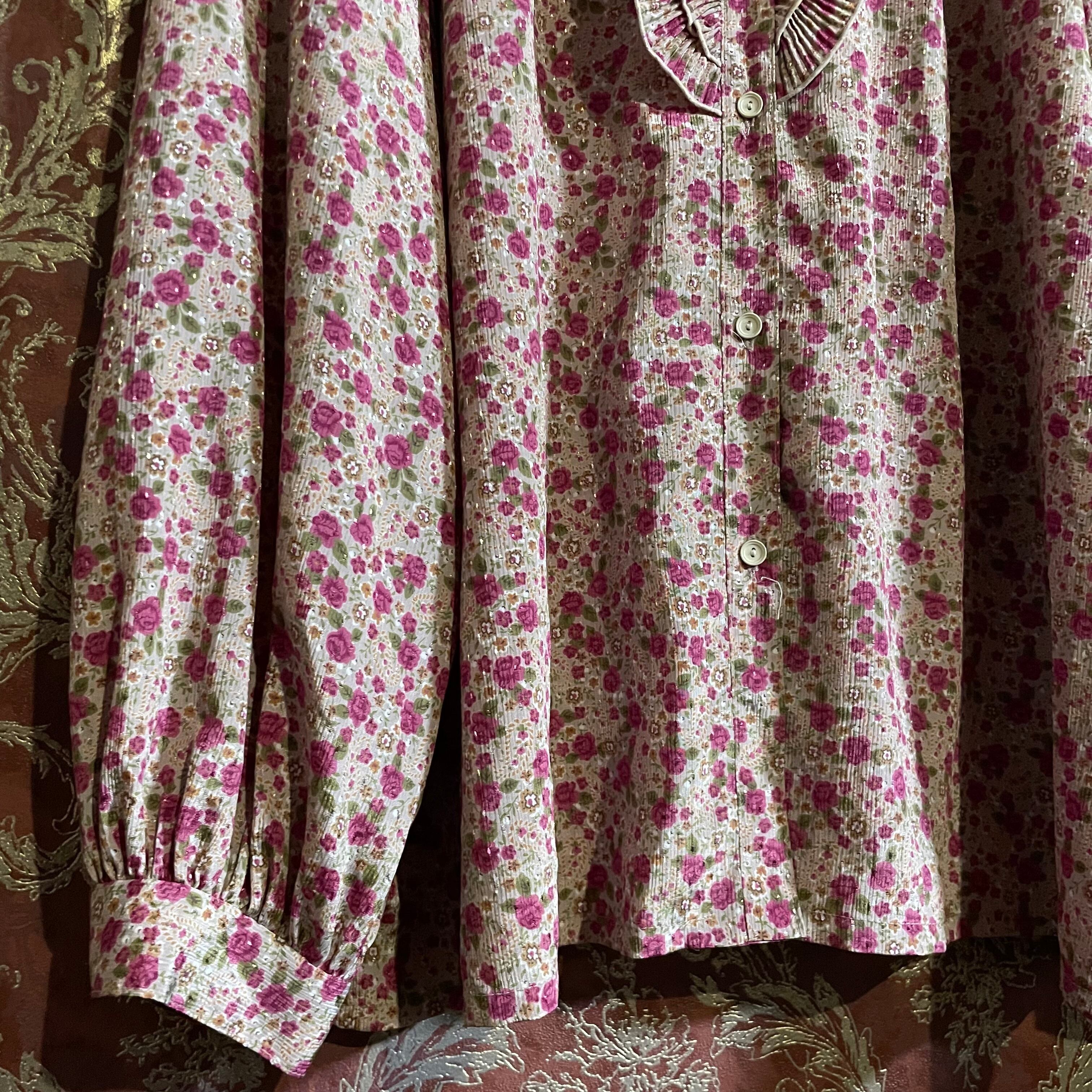 洗練されたピンクローズと上品なくすみピンクにジャガードのドット柄が美しいブラウスです。