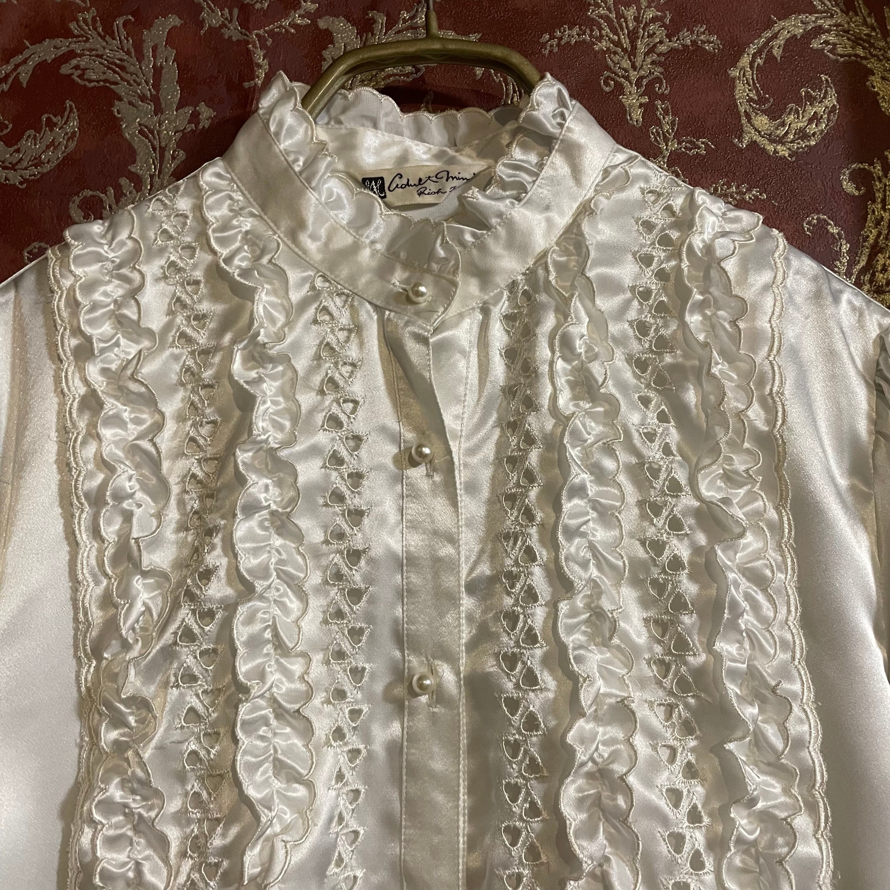 ヴィンテージな雰囲気を醸し出カットワークと、フロントに施された豪華なフリルが、お洒落さを引き立てます。