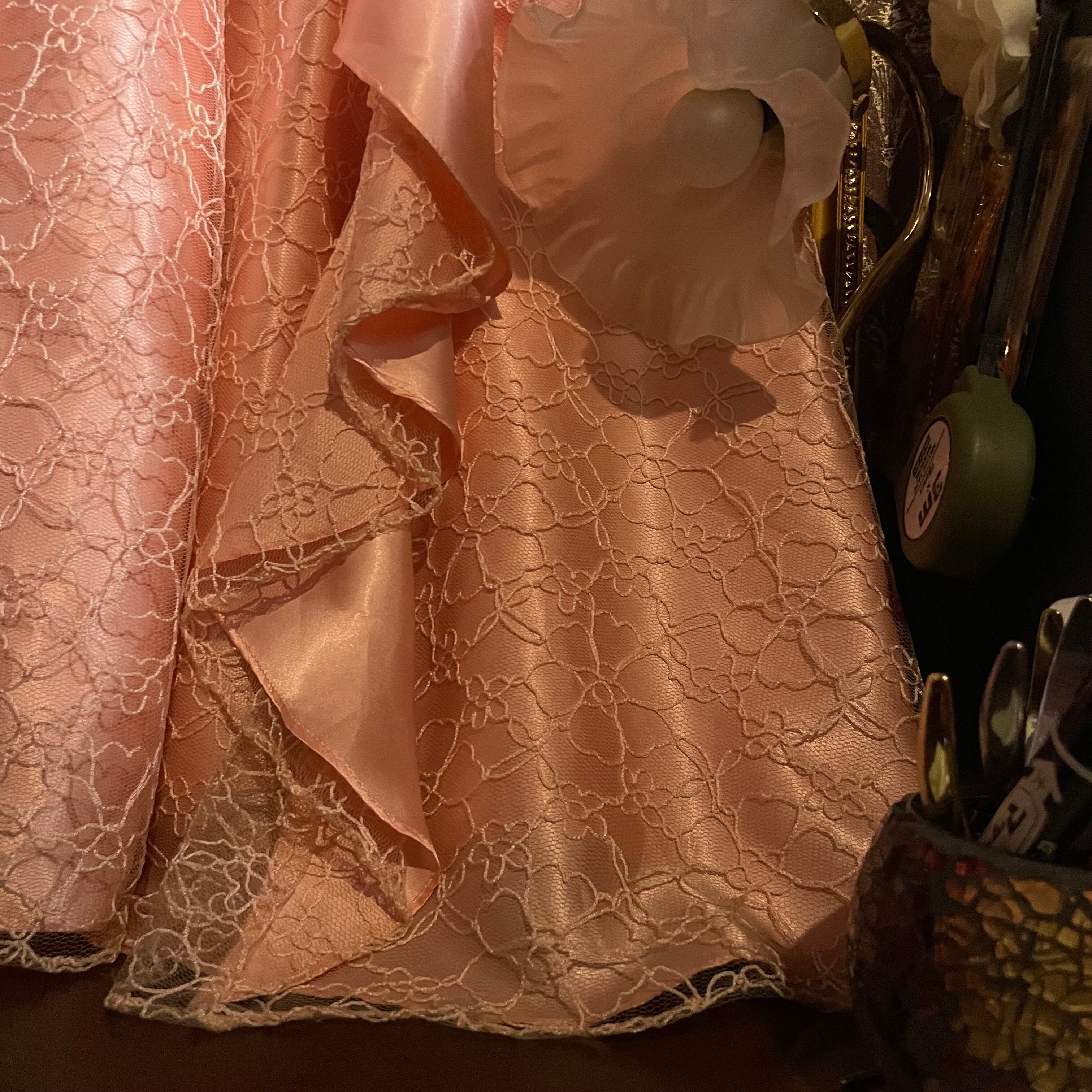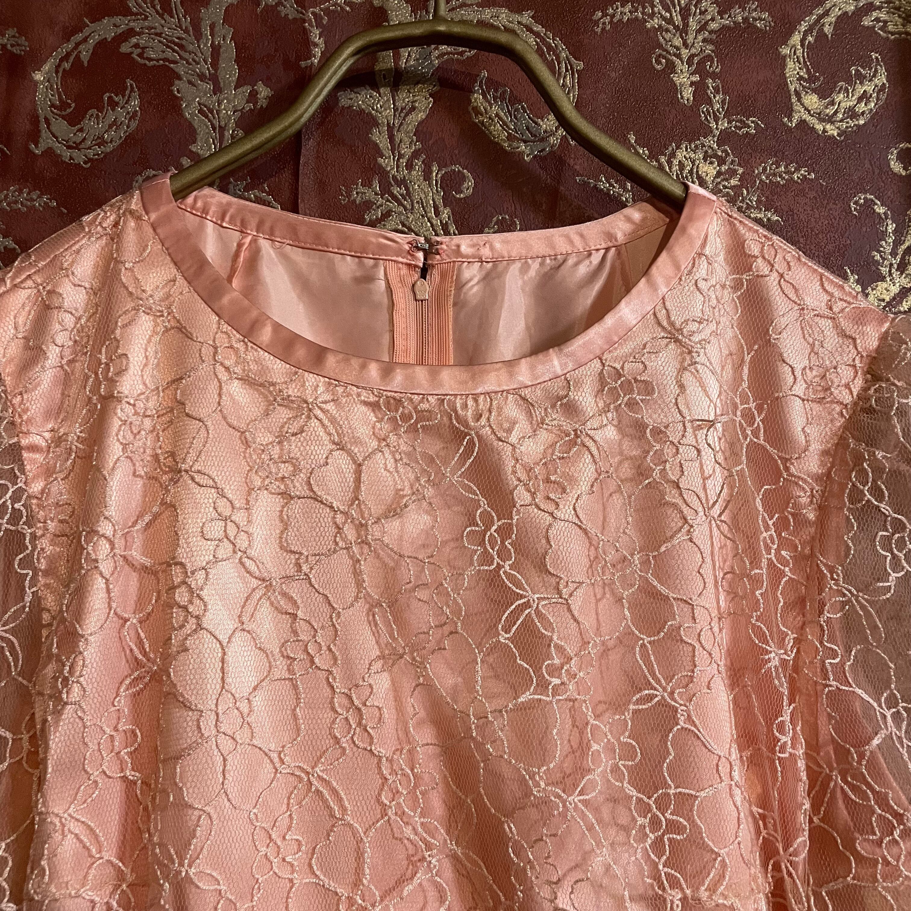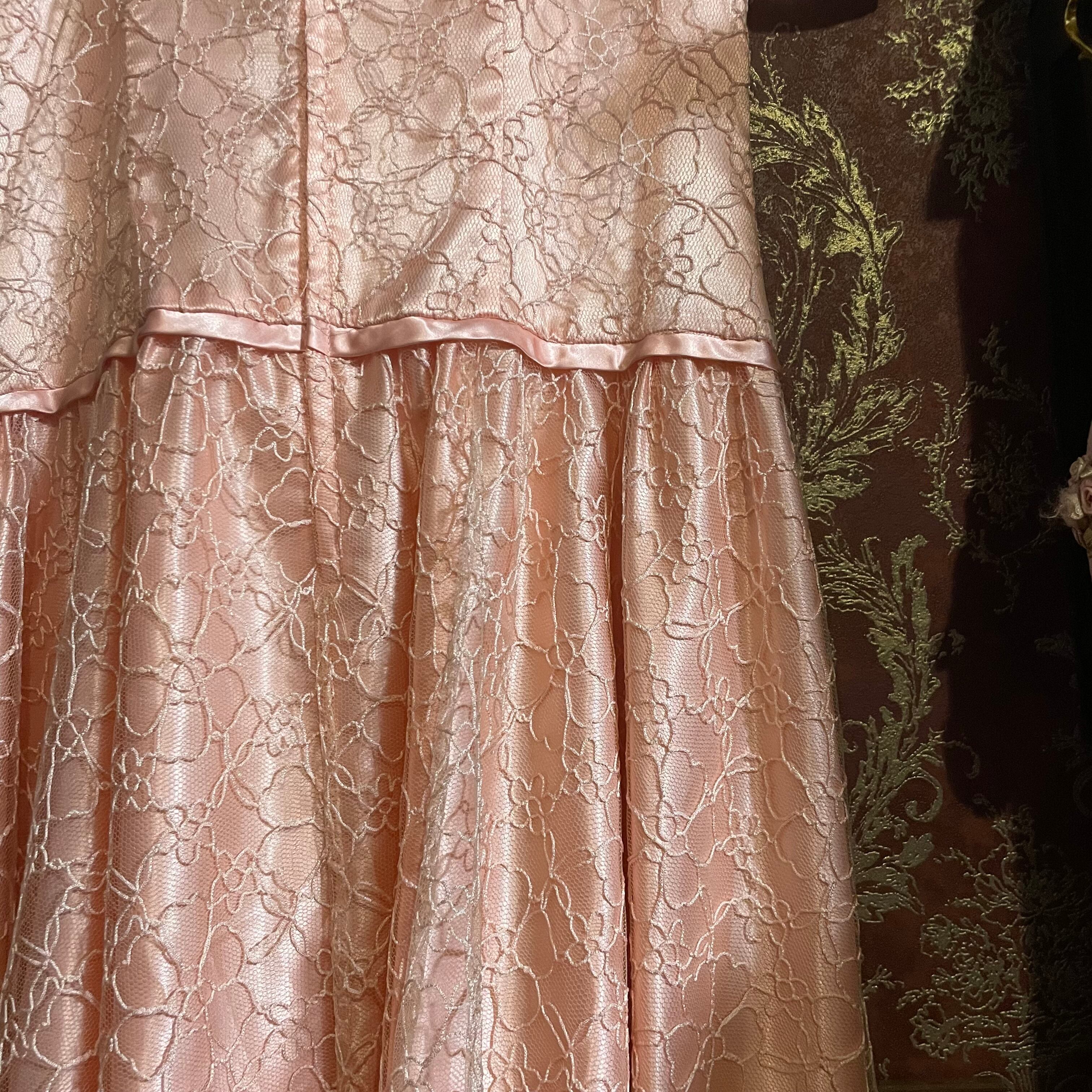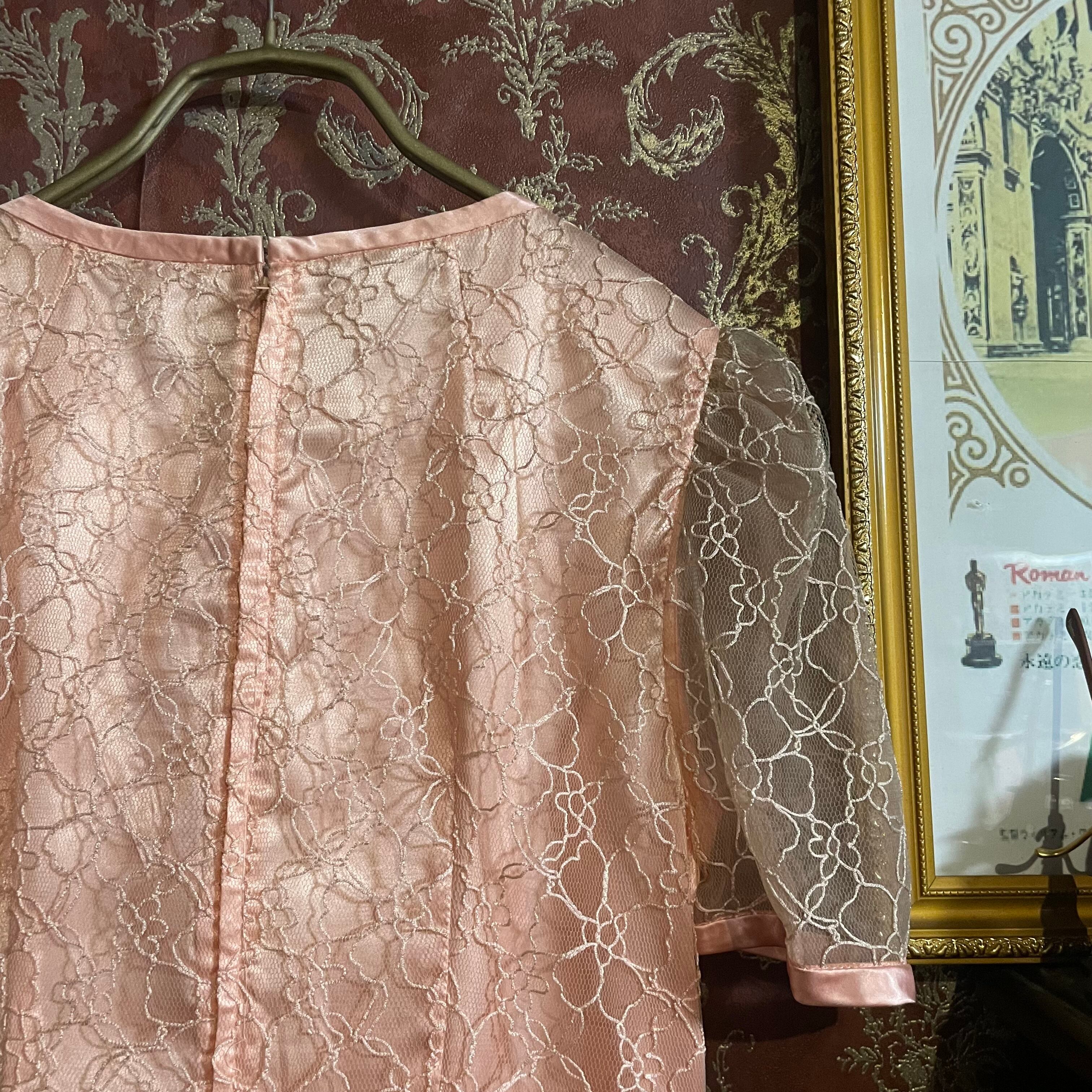 ペールトーンのピンクが可愛らしいレースのドレスです。