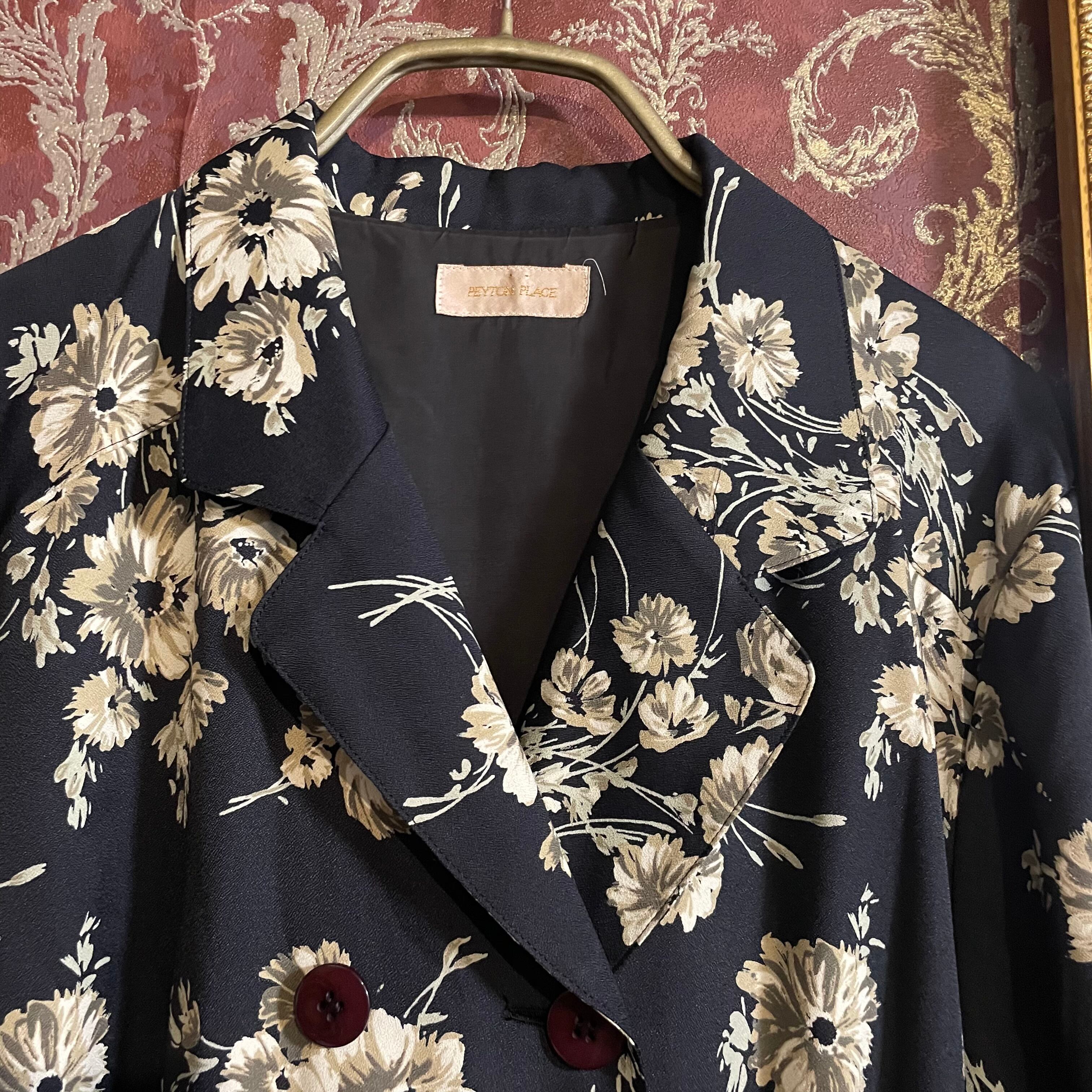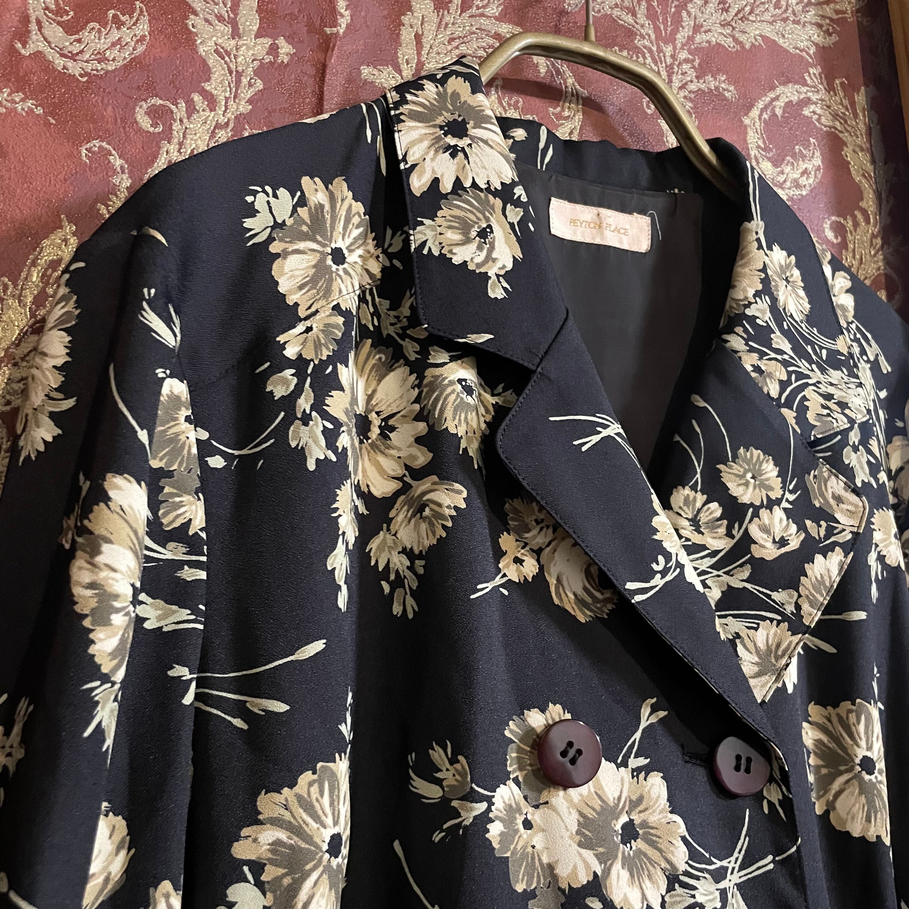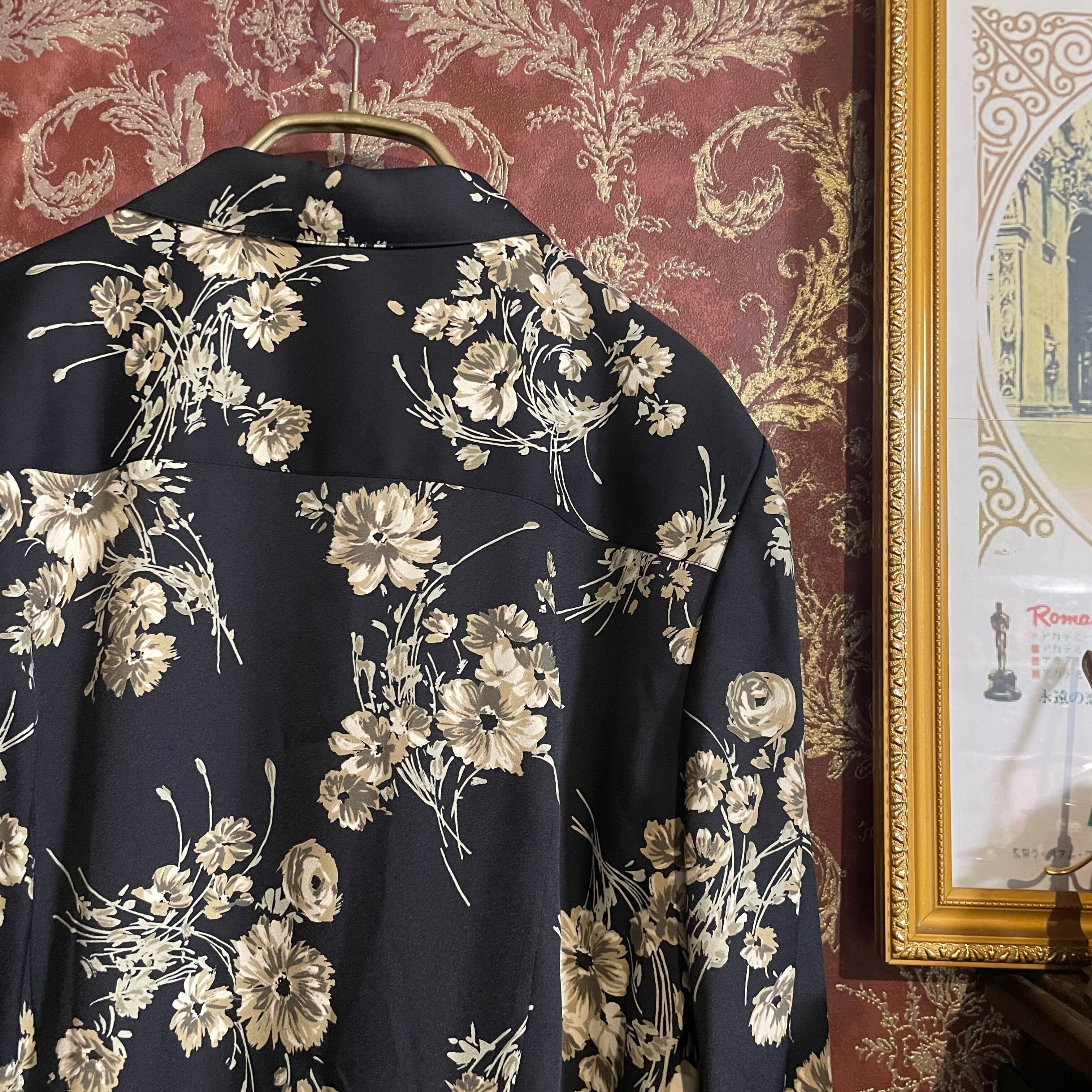 黒をベースに、白とベージュの配色が立体感を演出する花柄ワンピースです。