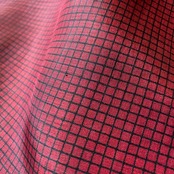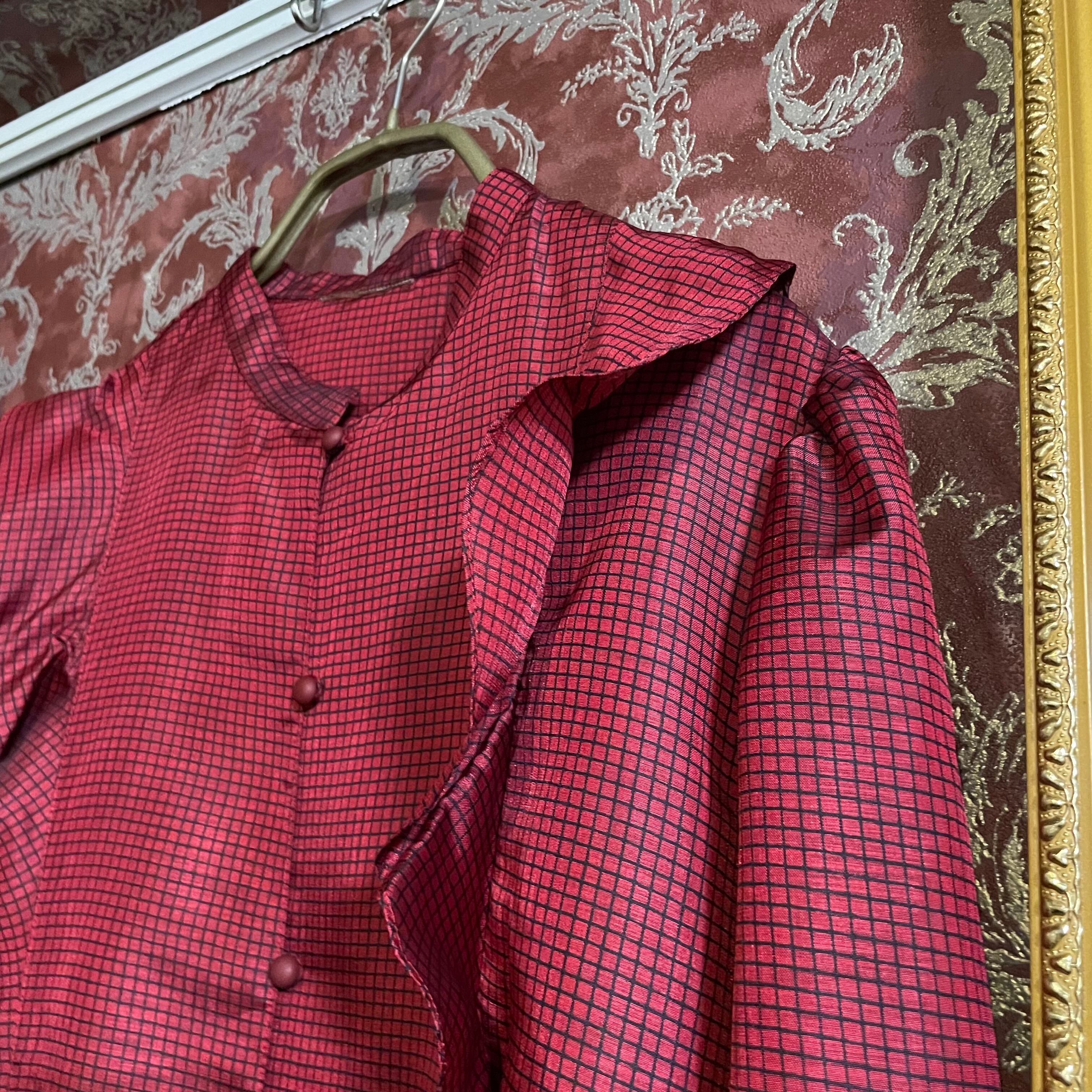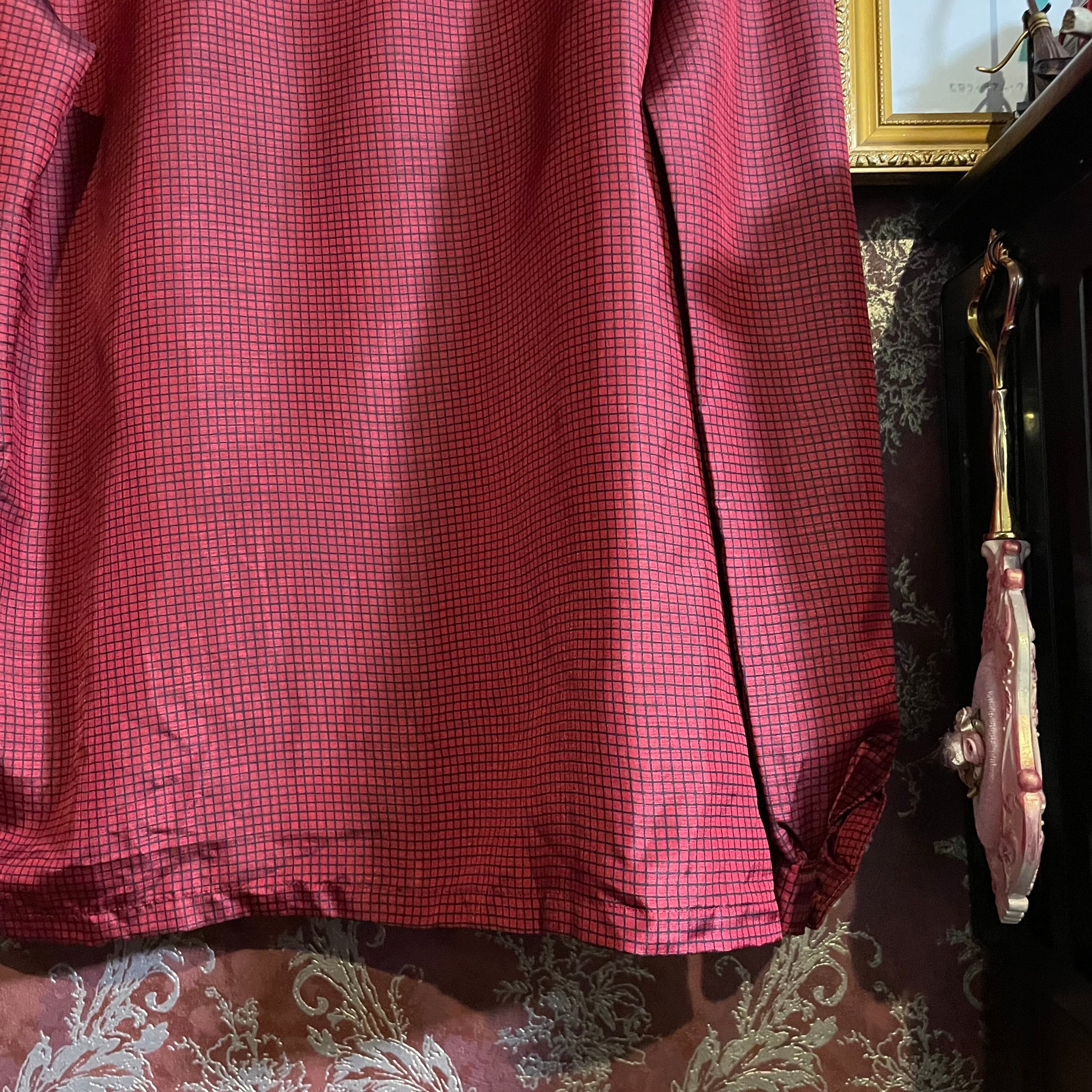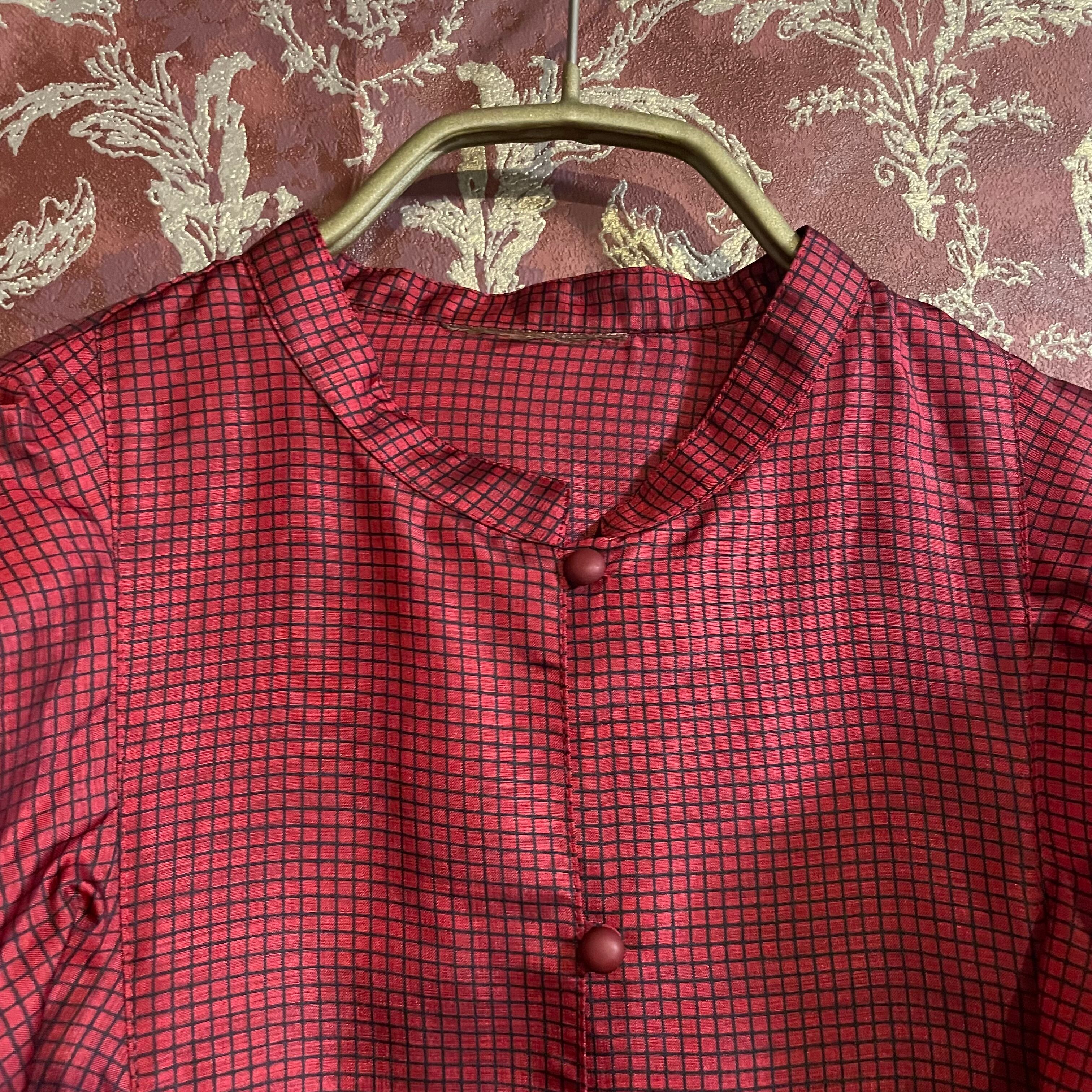 深い赤をベースに、黒のグラフチェック柄のブラウスです。