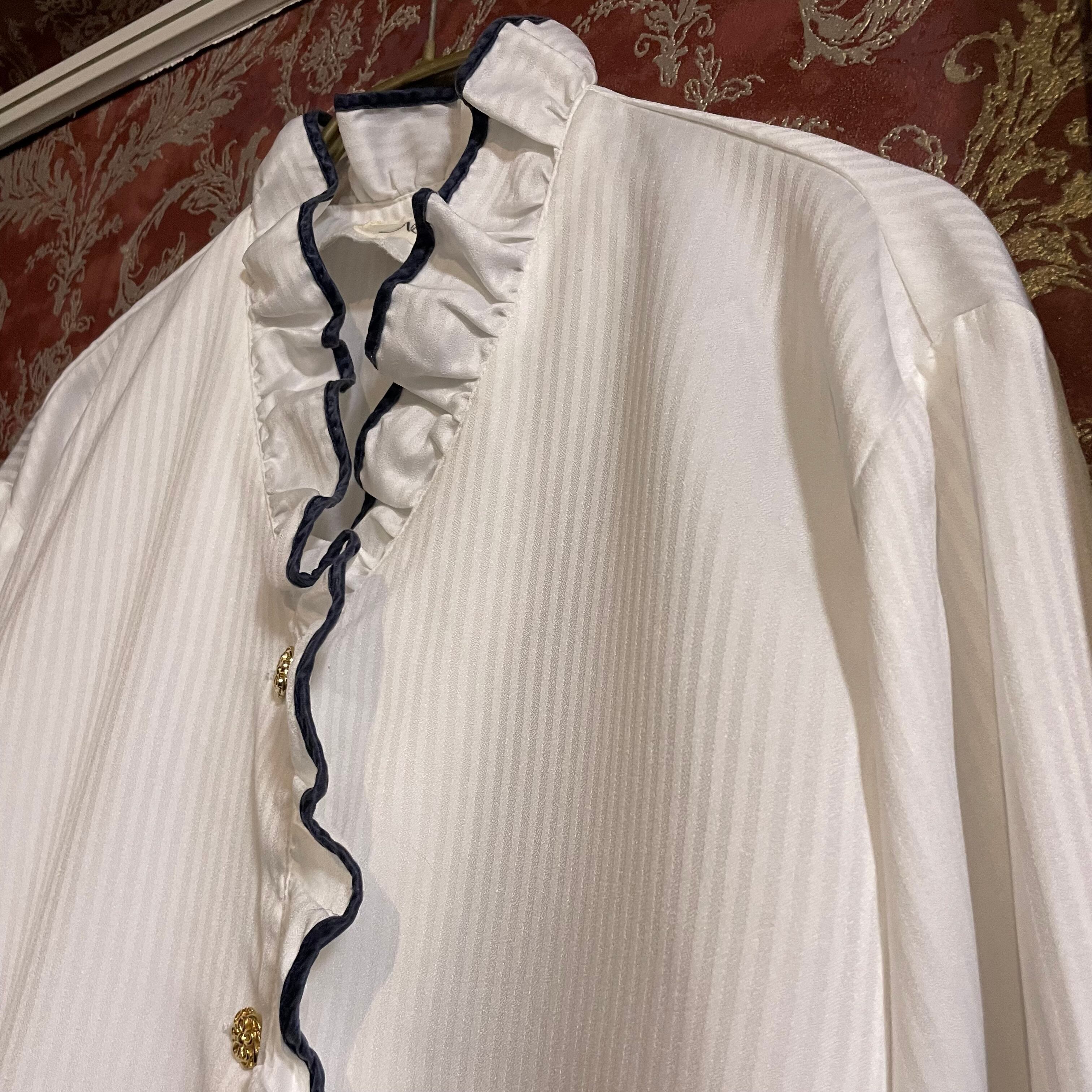 white × stripe navy line blouse