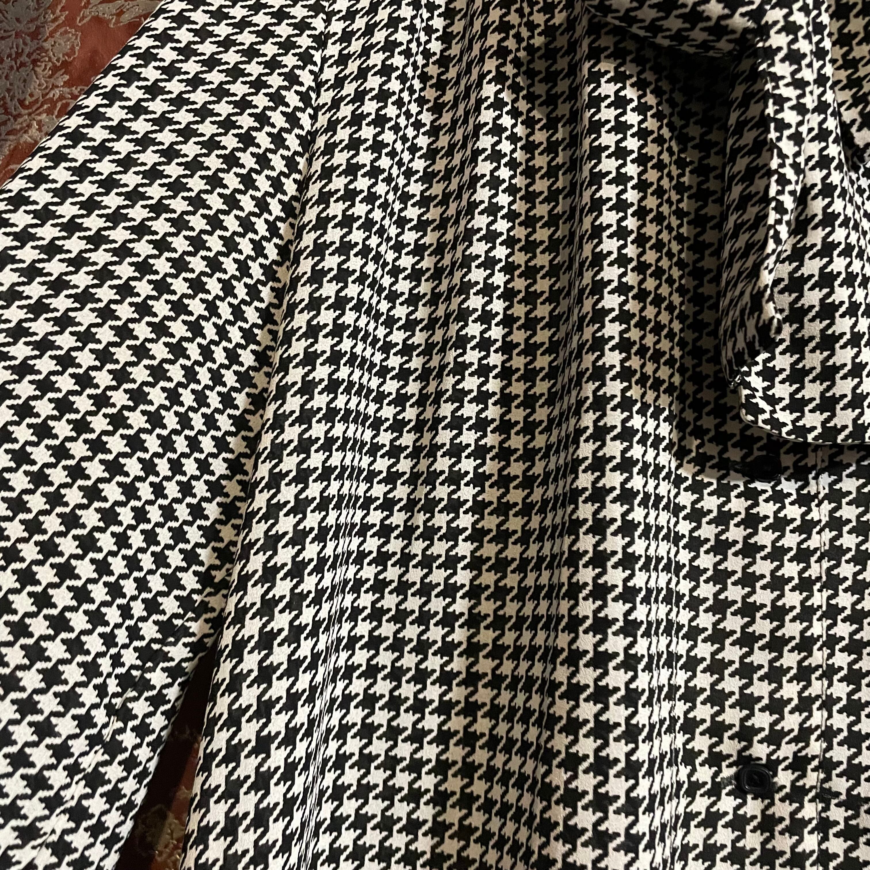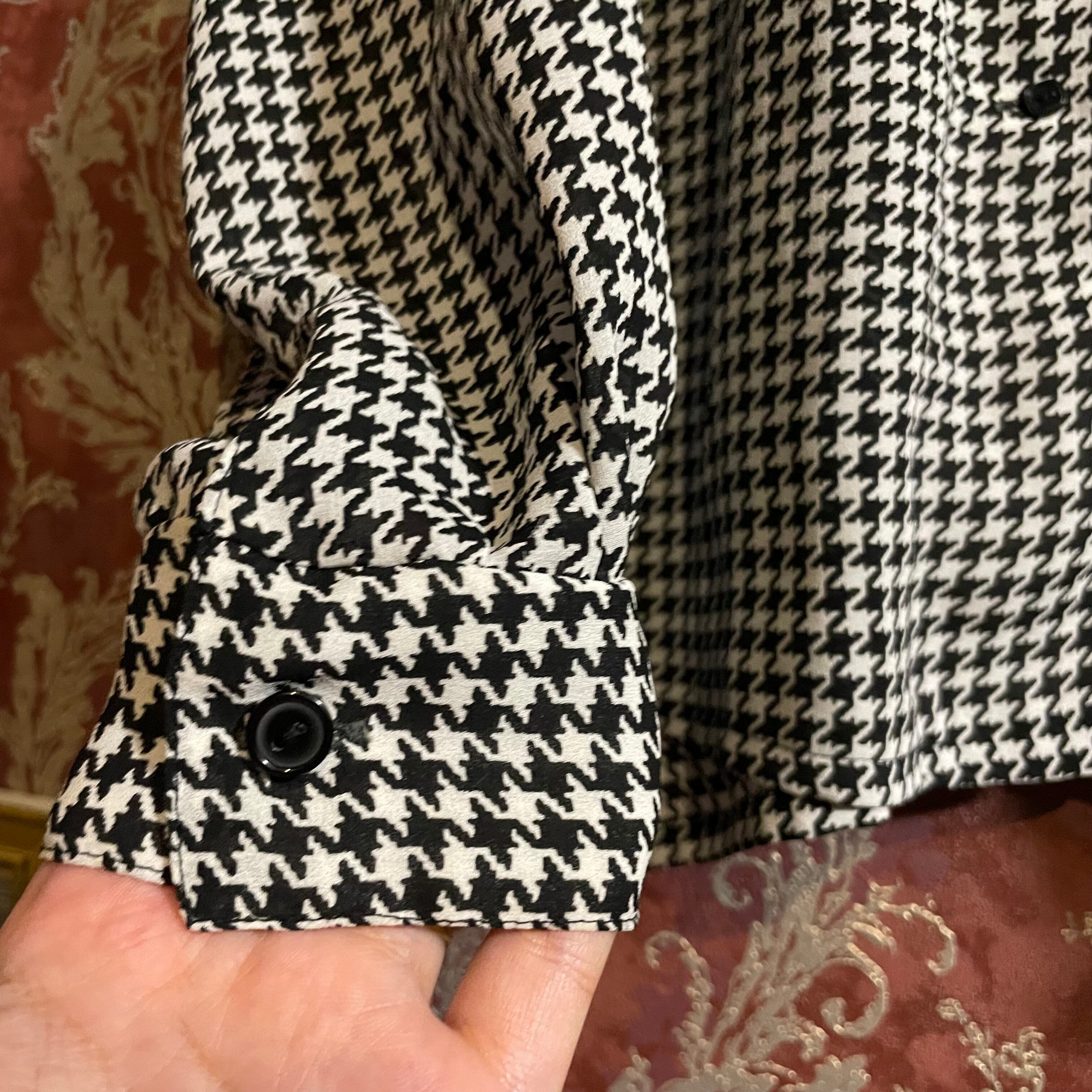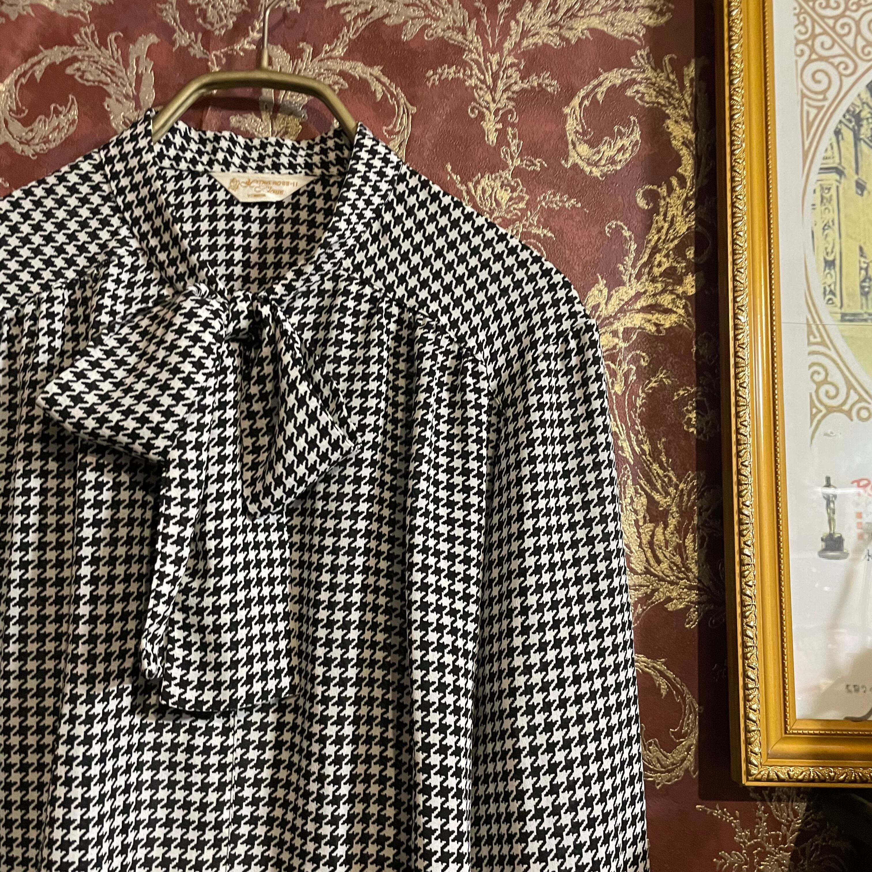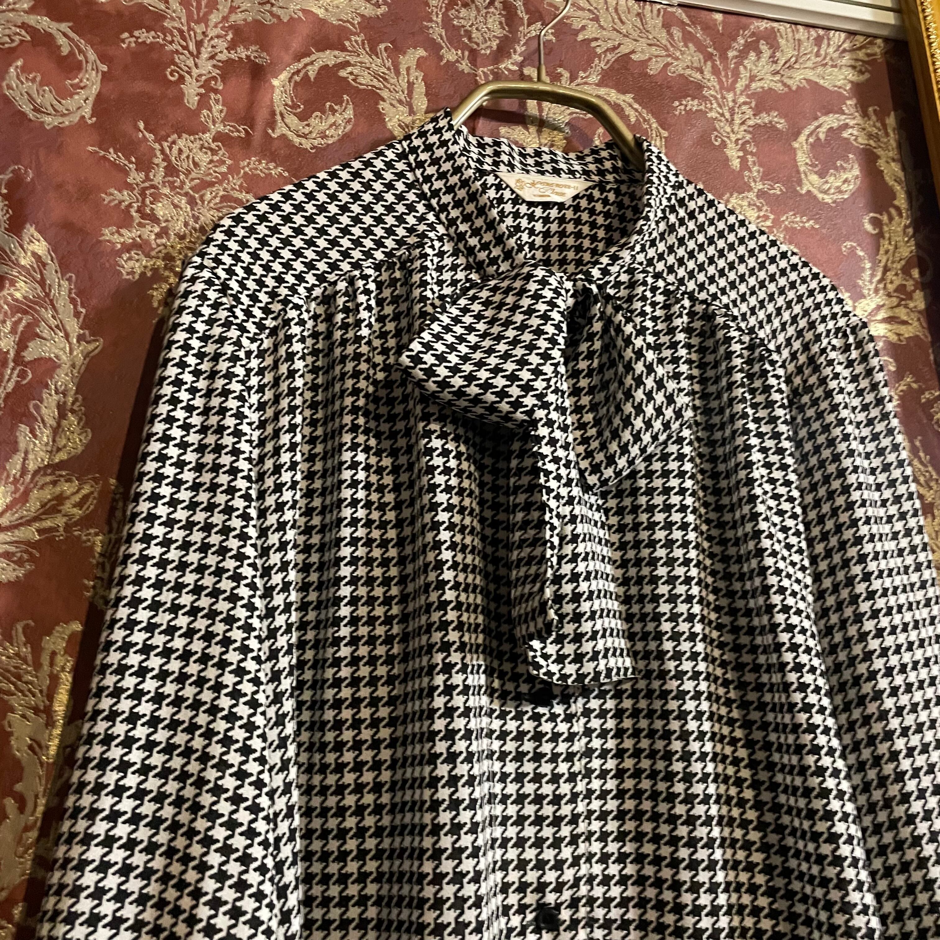 レトロな雰囲気漂うモノトーンの千鳥格子柄ブラウスです。