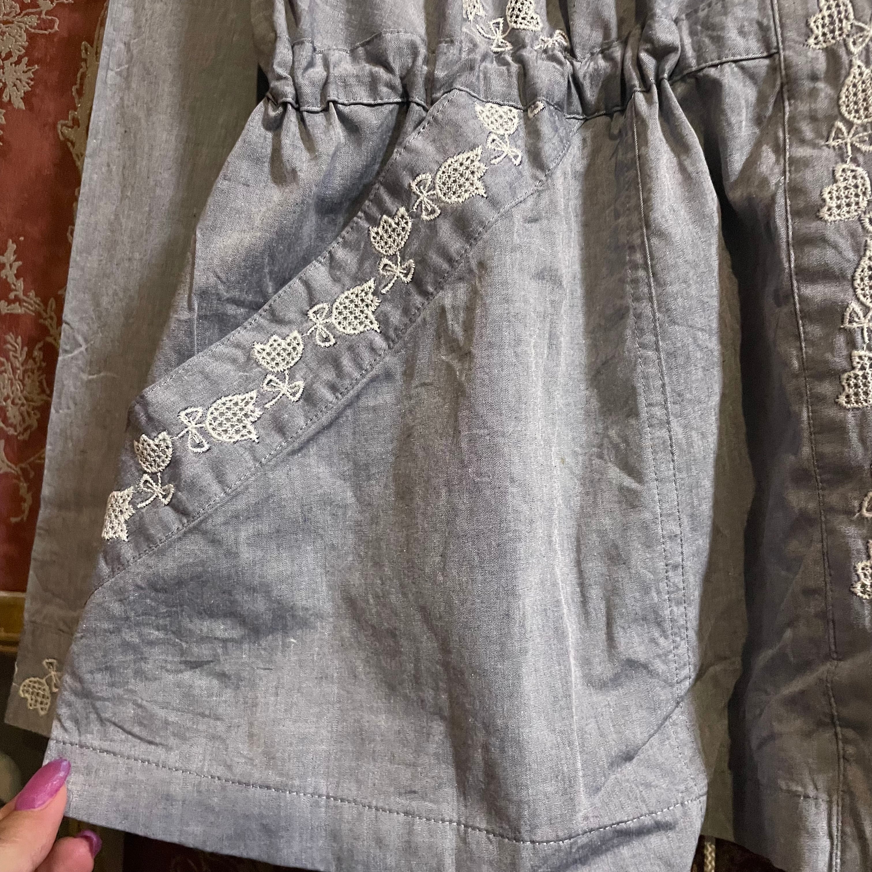 flower embroidery chambray blouse