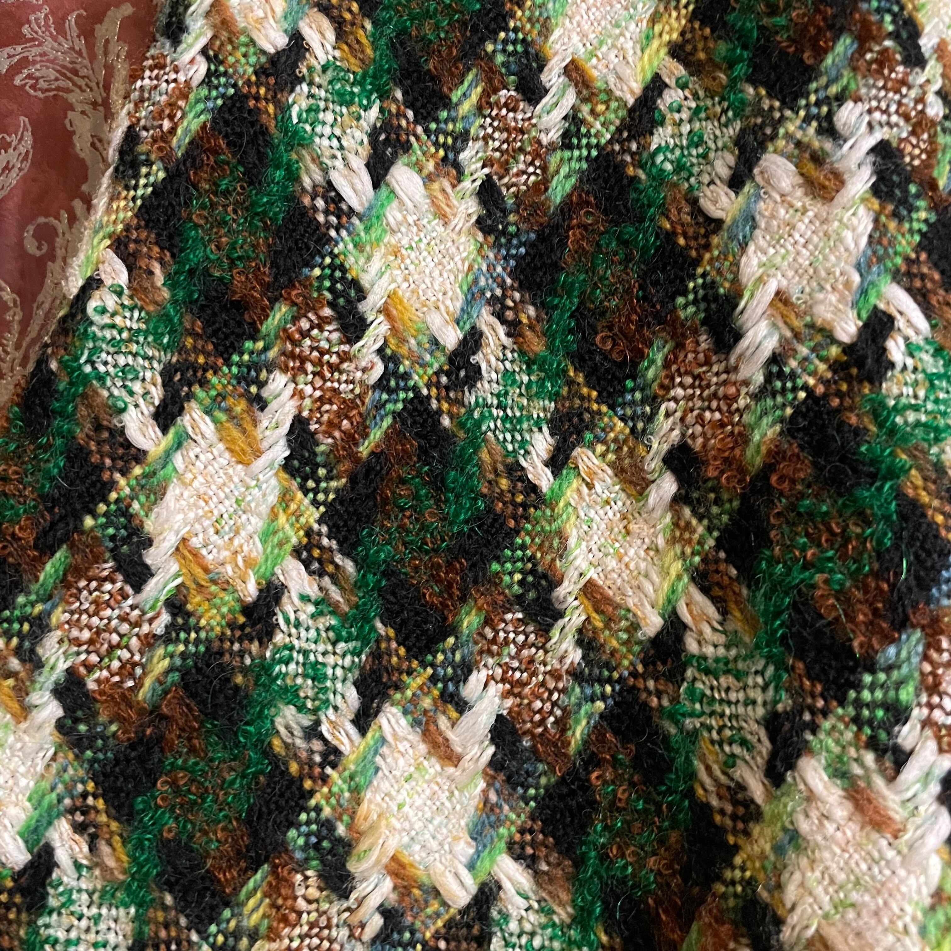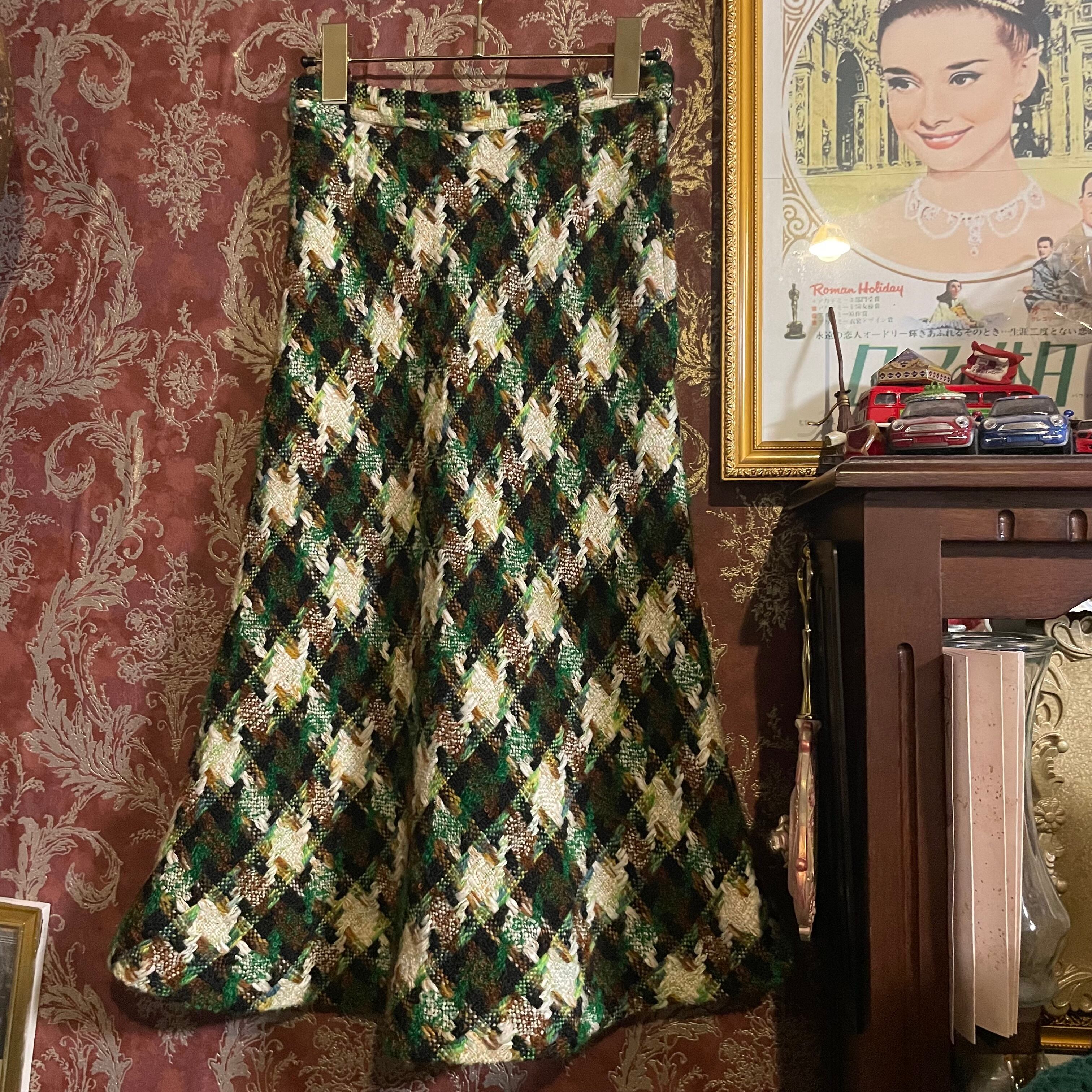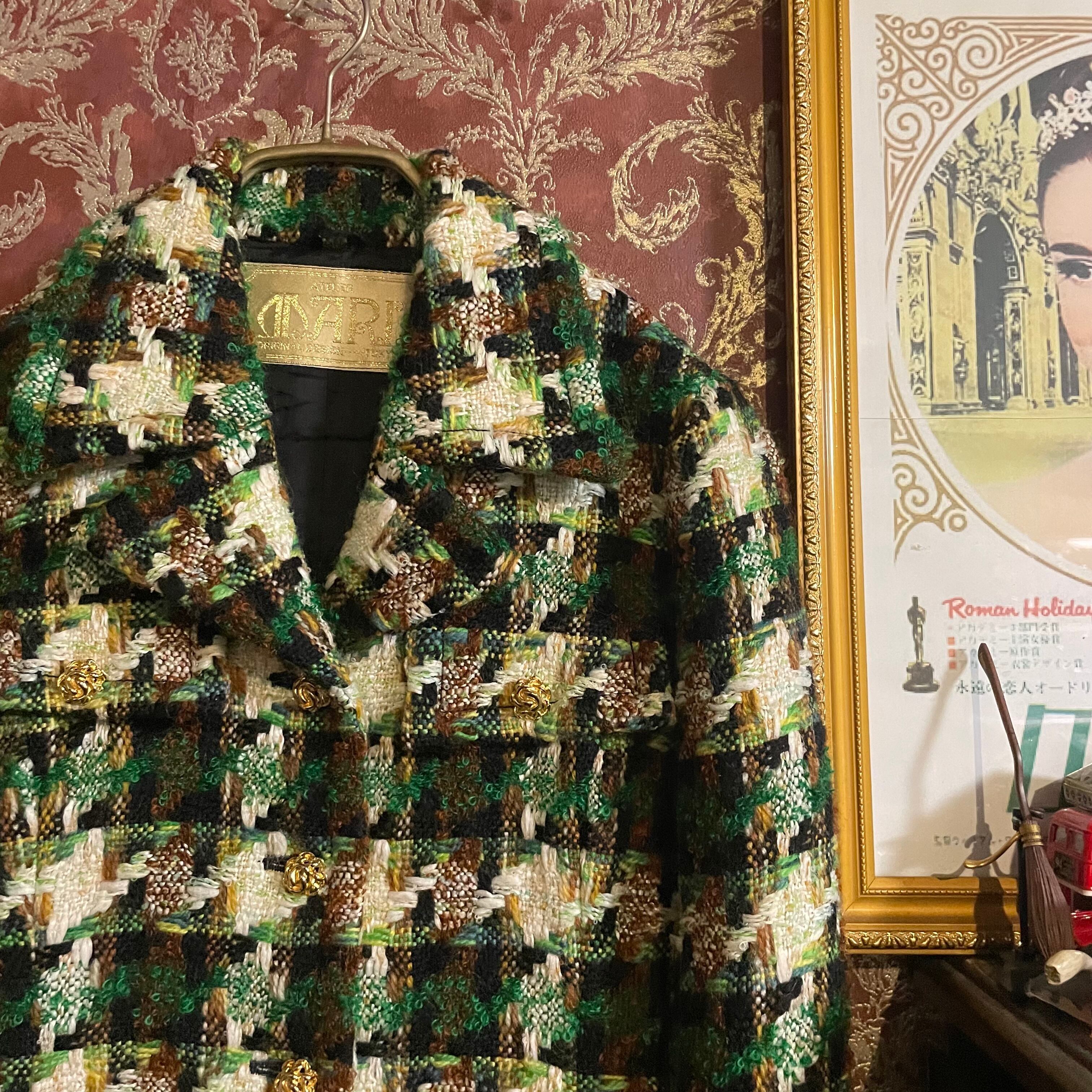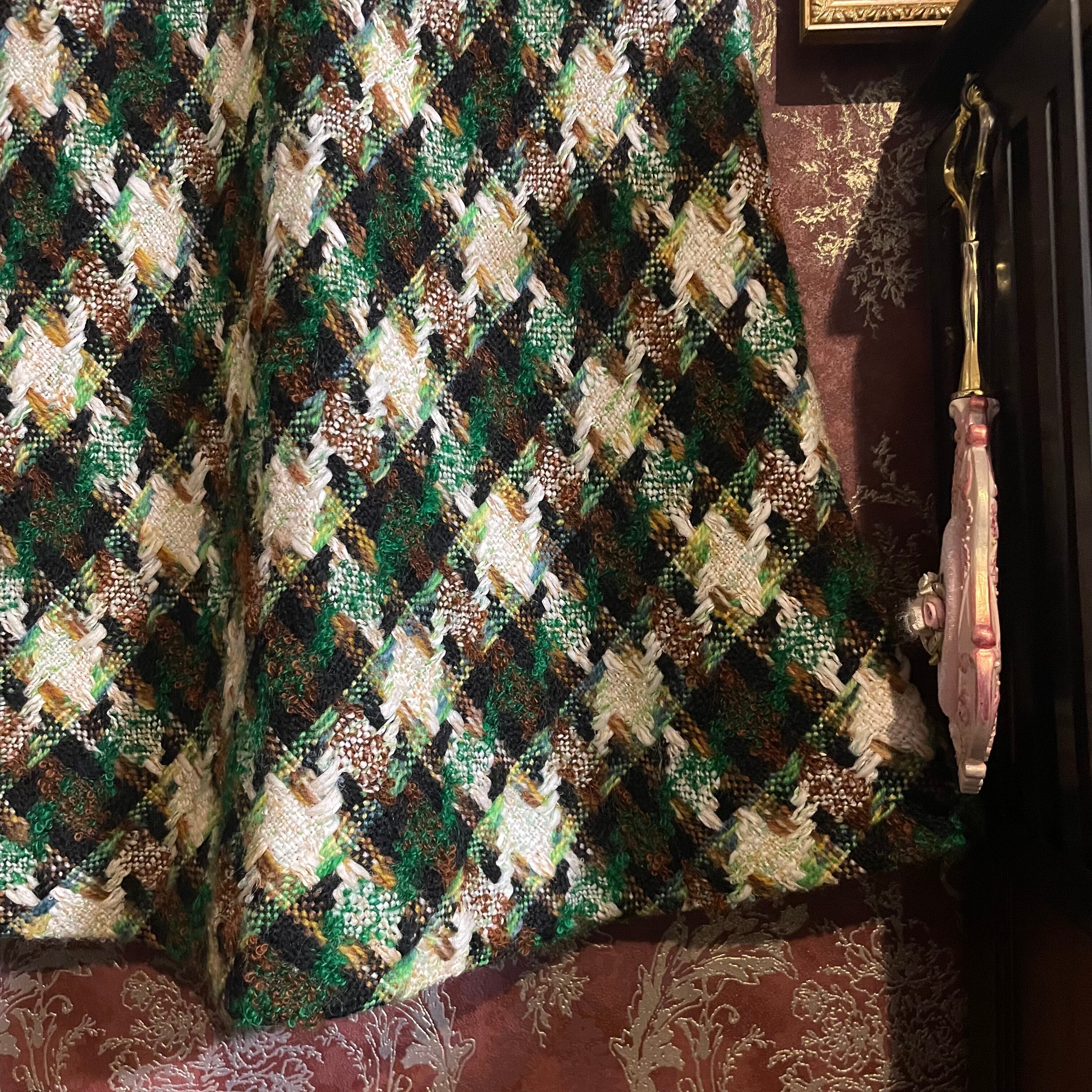 緑、黒、白の大きなチェック柄が印象的なヴィンテージのツイードセットアップです。