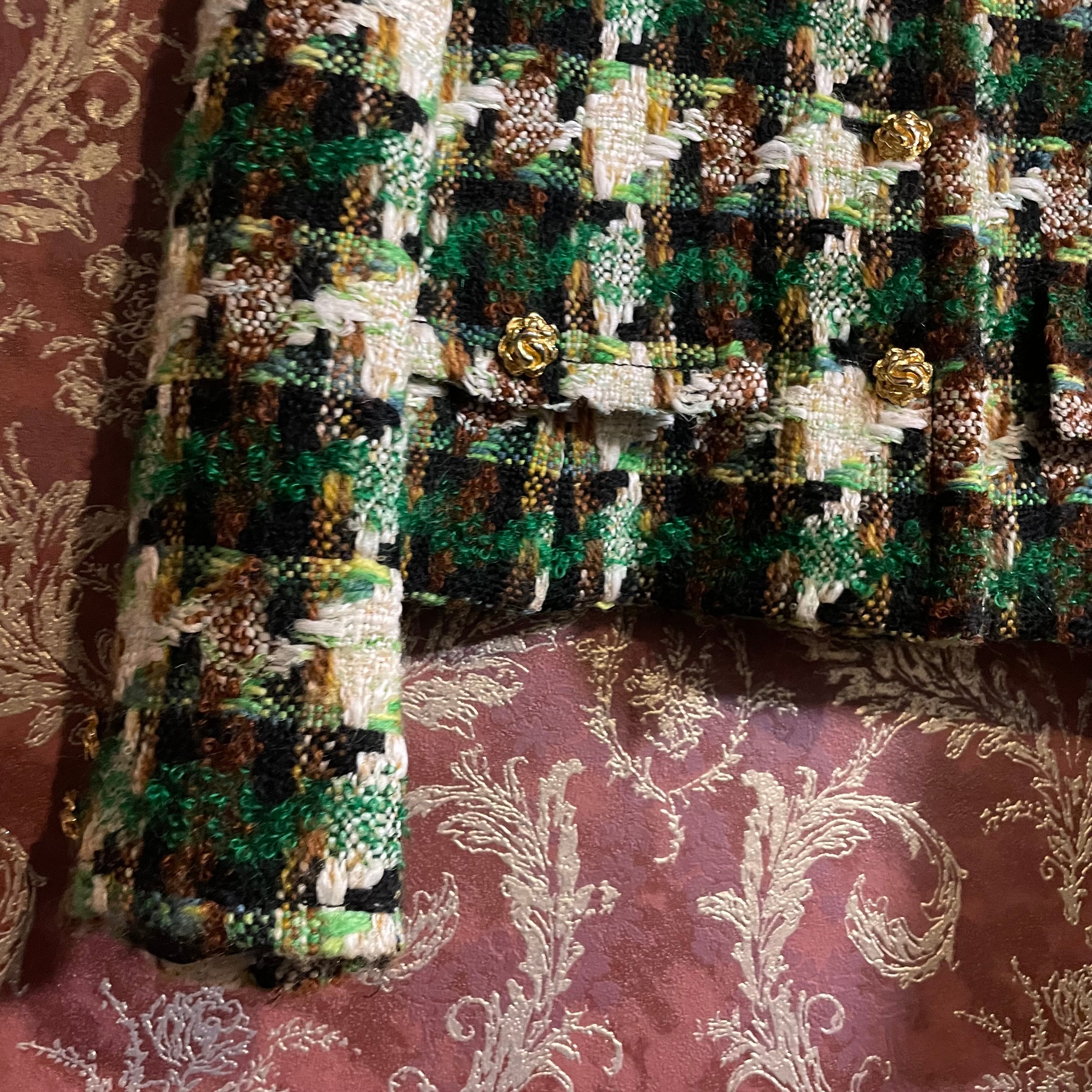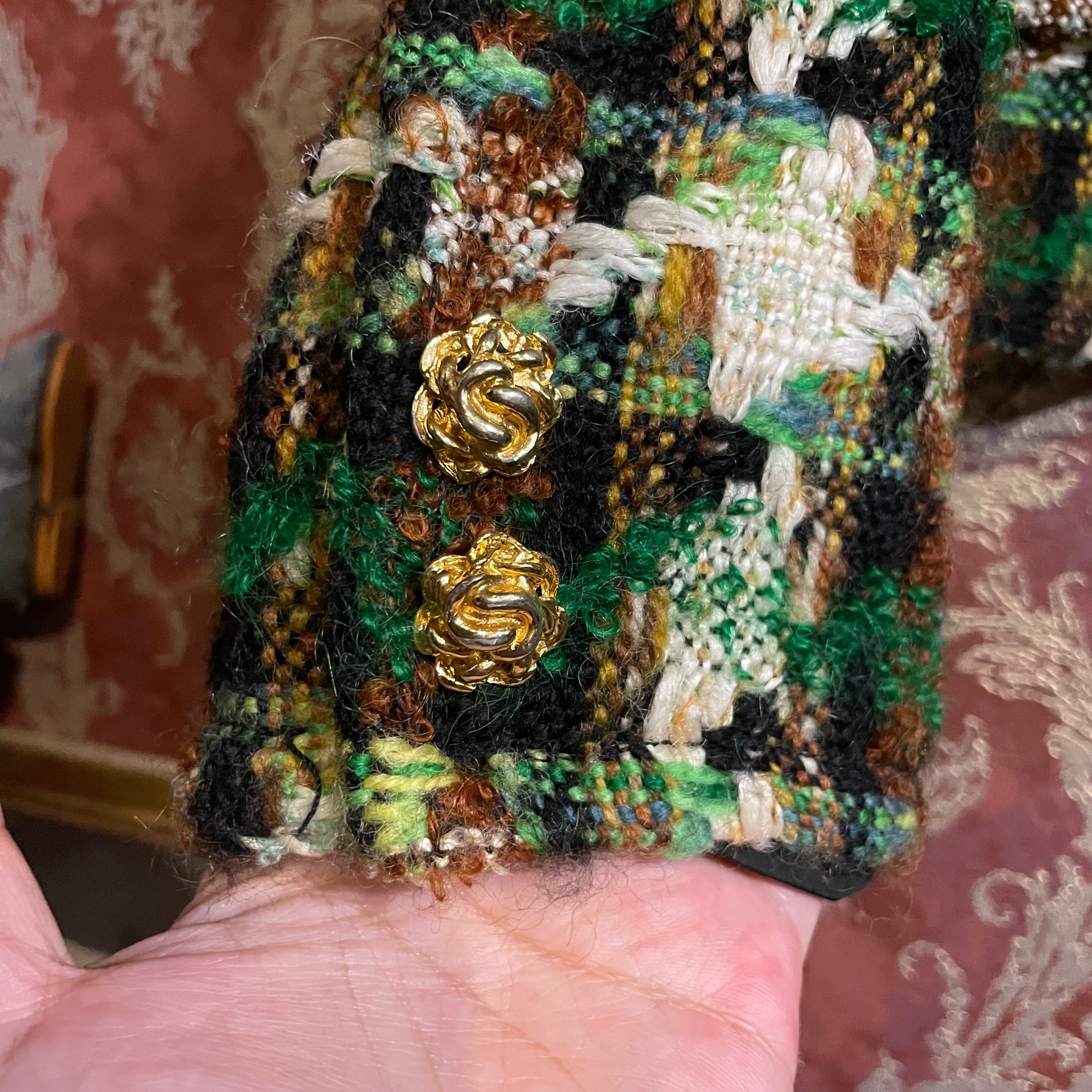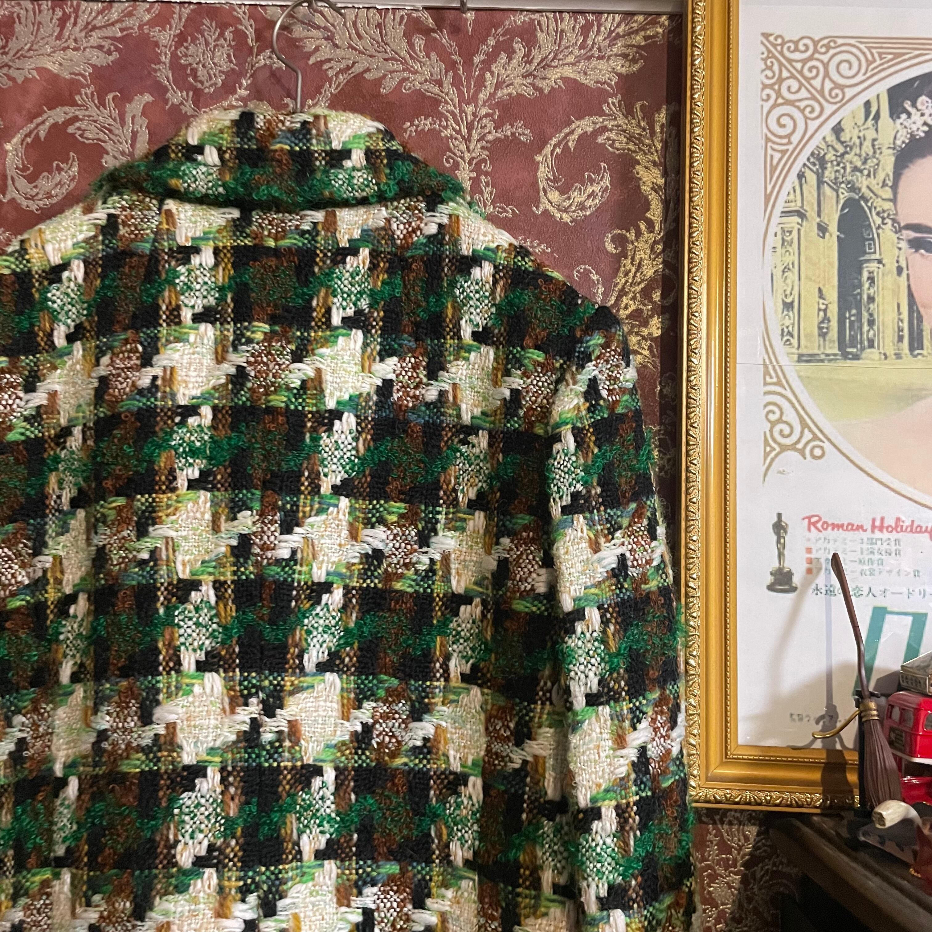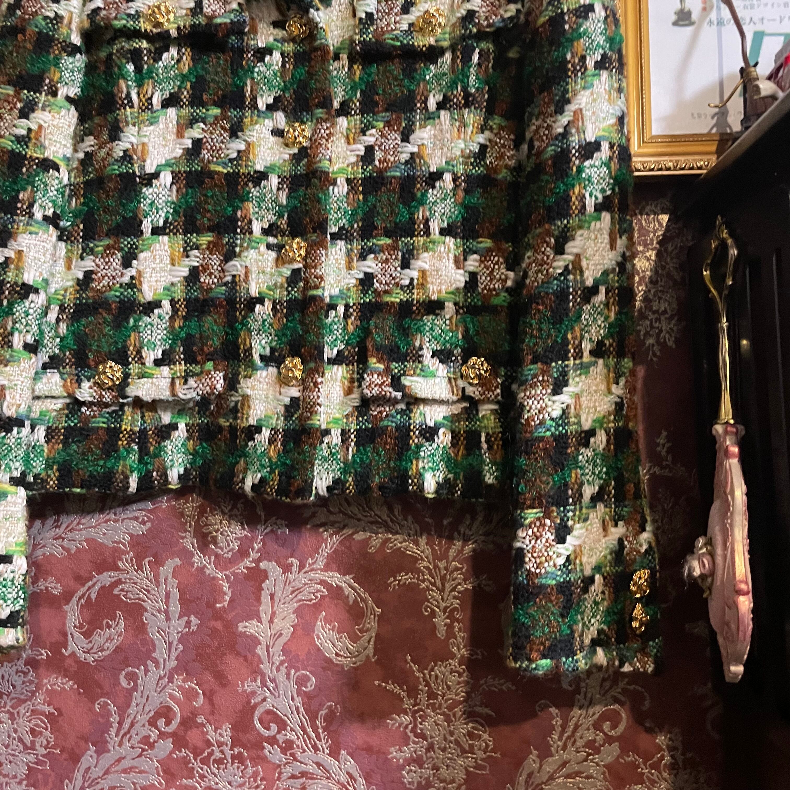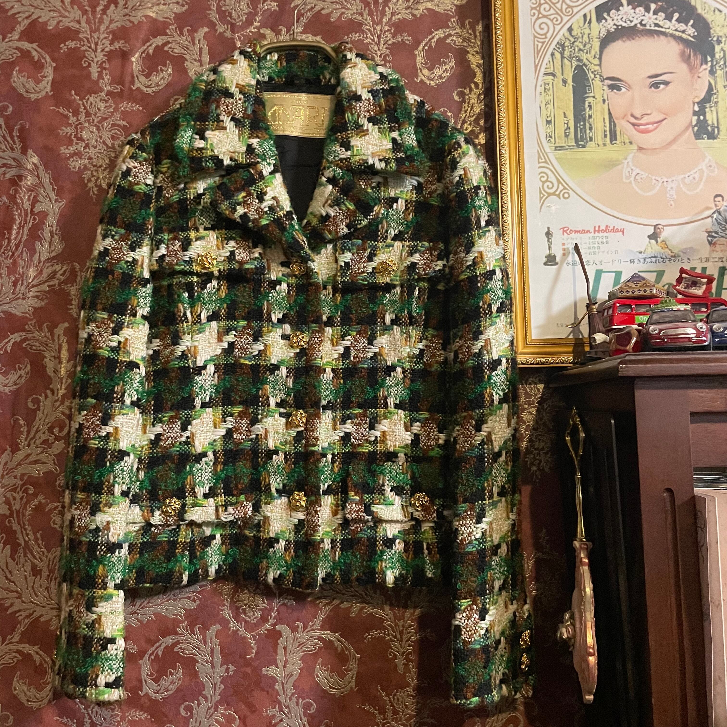 緑、黒、白の大きなチェック柄が印象的なヴィンテージのツイードセットアップです。