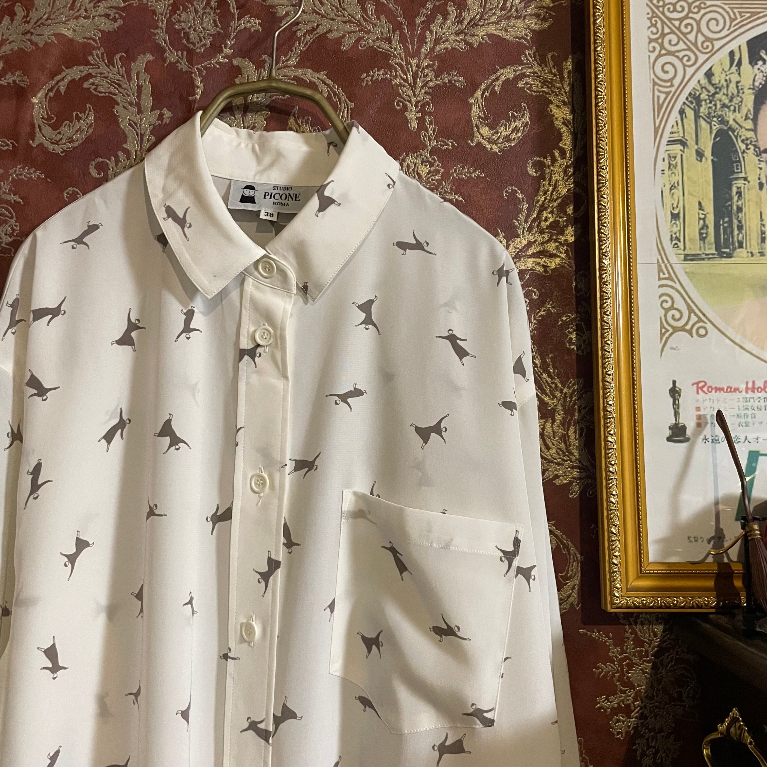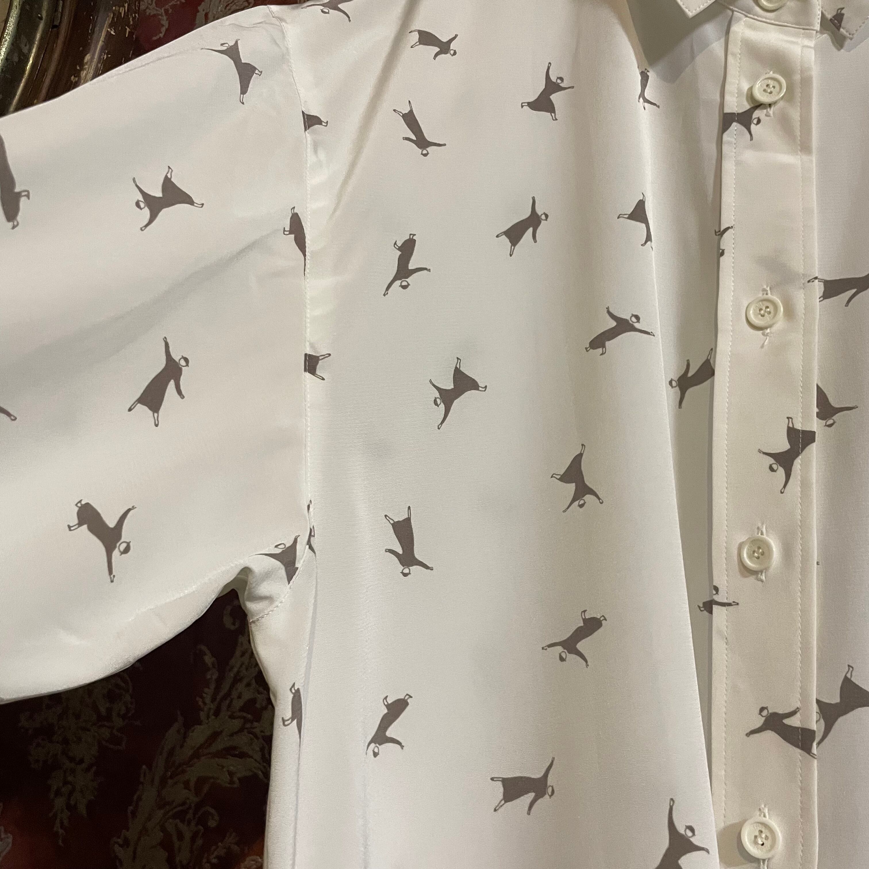 シンプルな色合いで全体から見たときの個性は抑えられていますが、よく見るととても個性的な不思議なブラウスです。