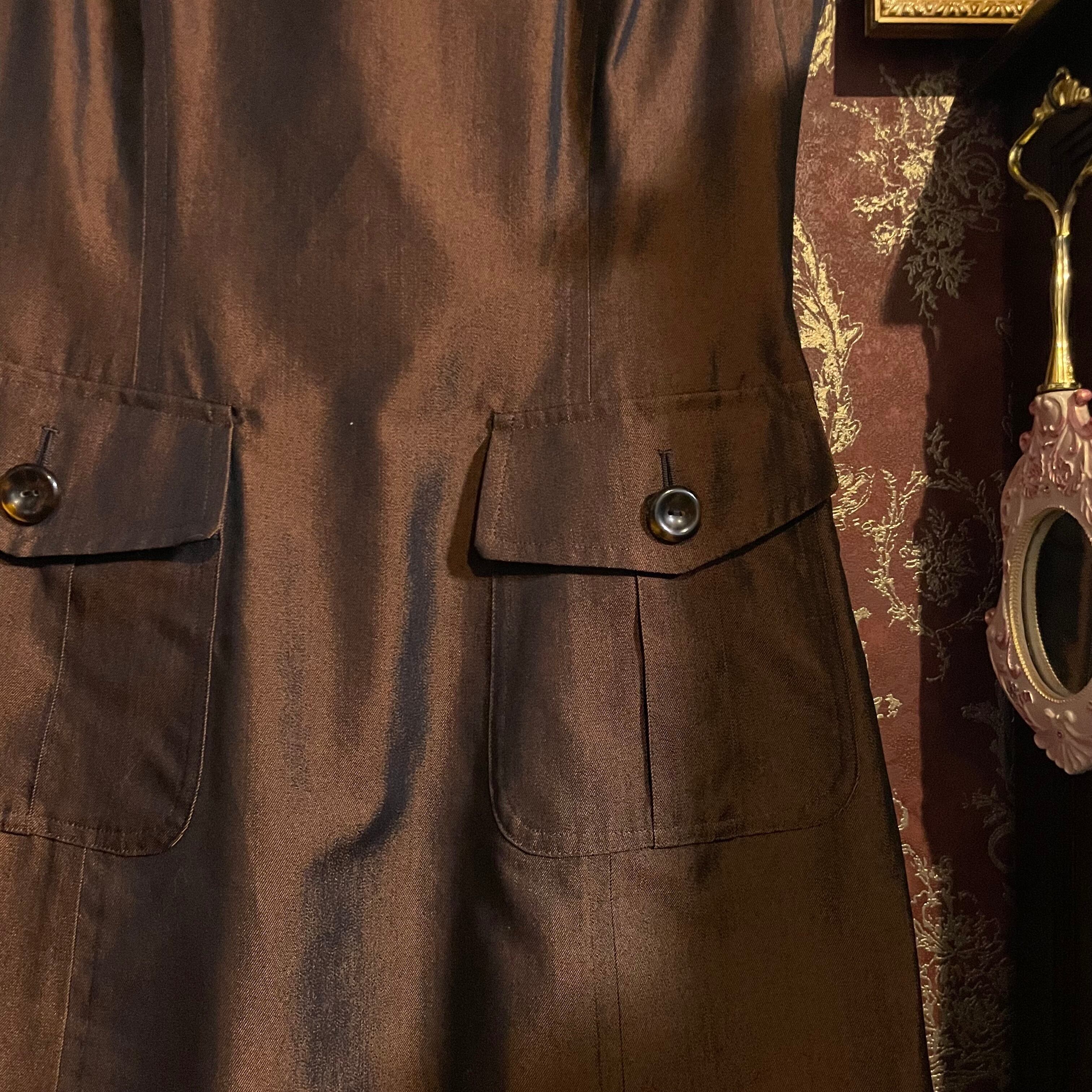光の当たり方で変化する玉虫色の美しさが魅力のミニワンピースです。