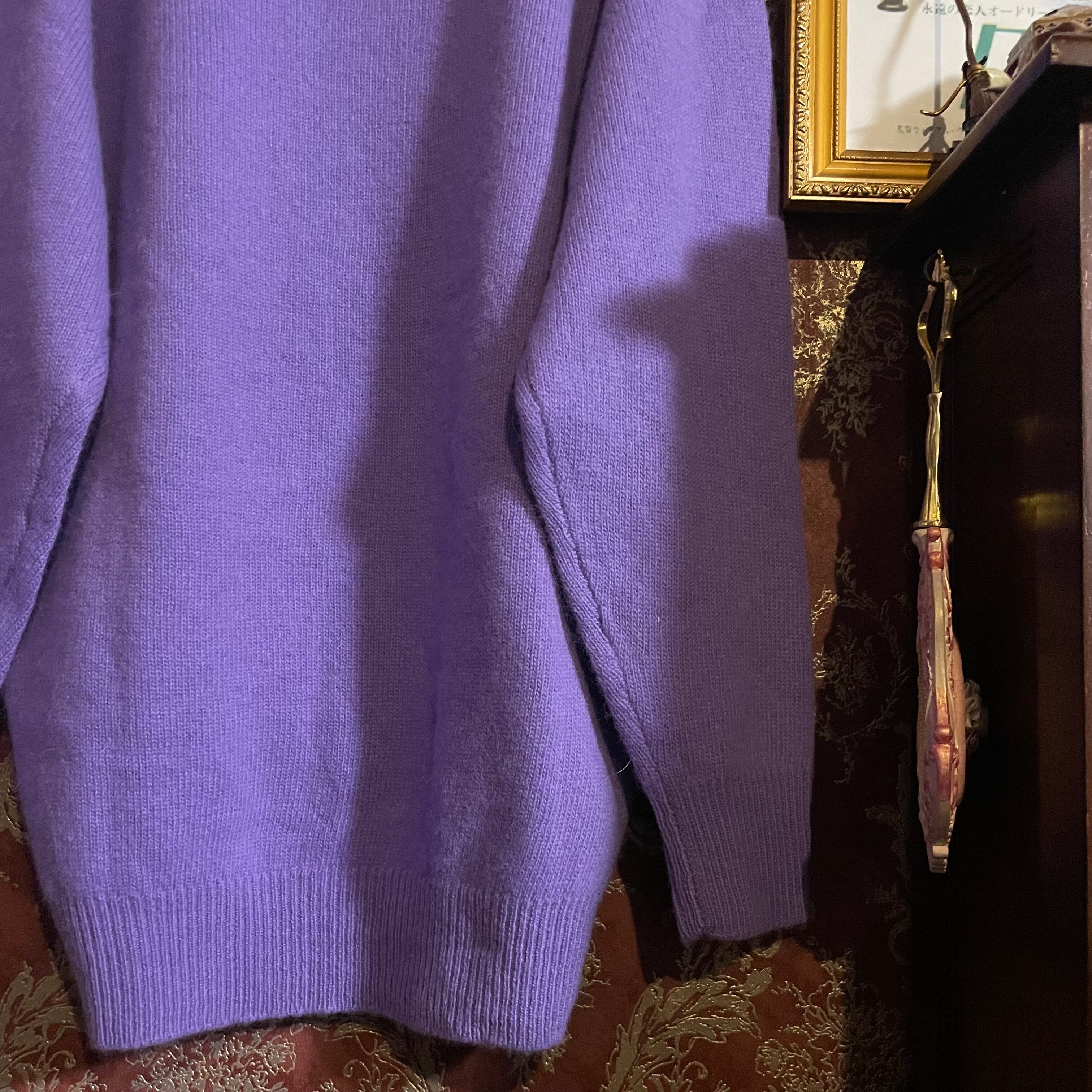 優しい紫色の魅力が際立つニットセーターで、カジュアルからお出かけまで様々なシーンにぴったりです。