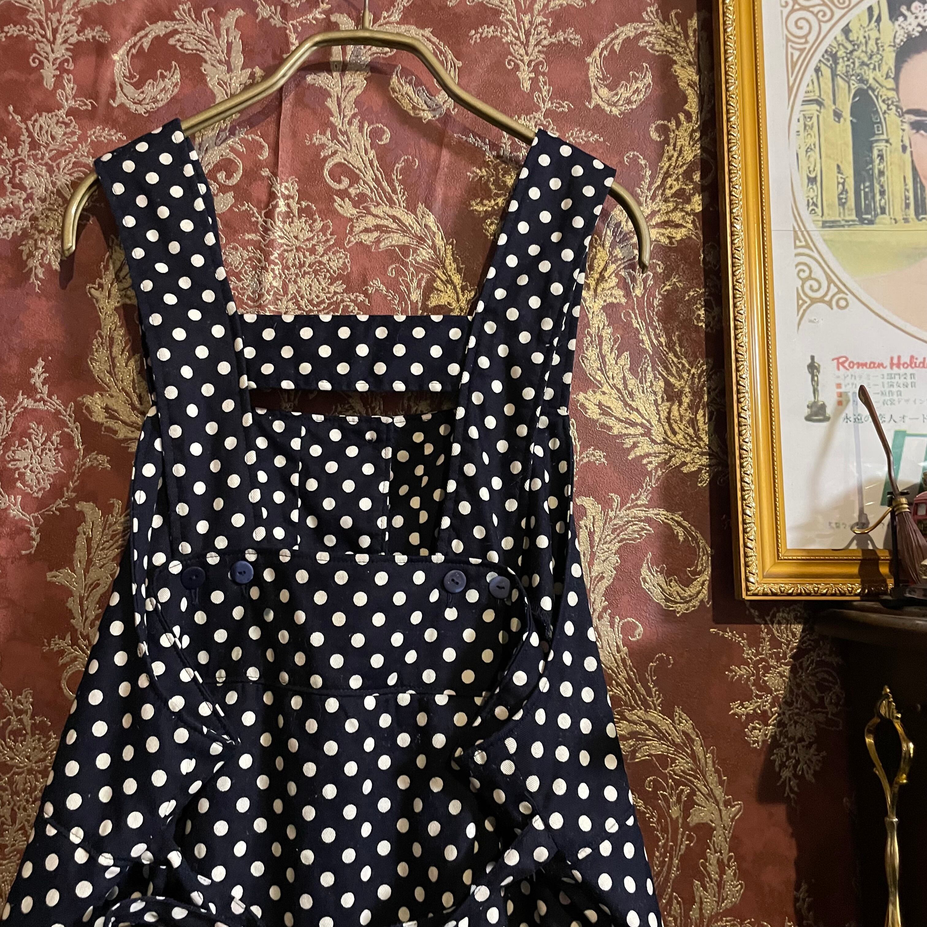 ジャンパースカートでは珍しく、ウエストにリボンがついたデザインです。