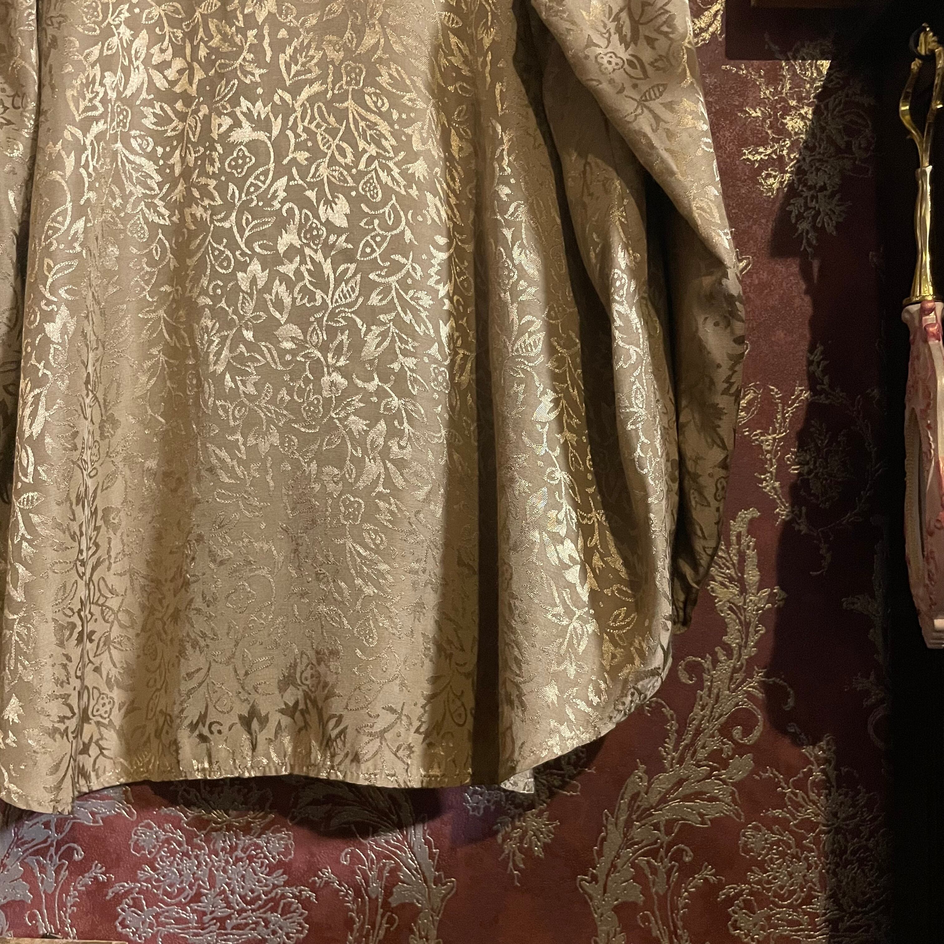 華やかなゴールドのアラベスク模様が特徴のジャガードブラウスです。