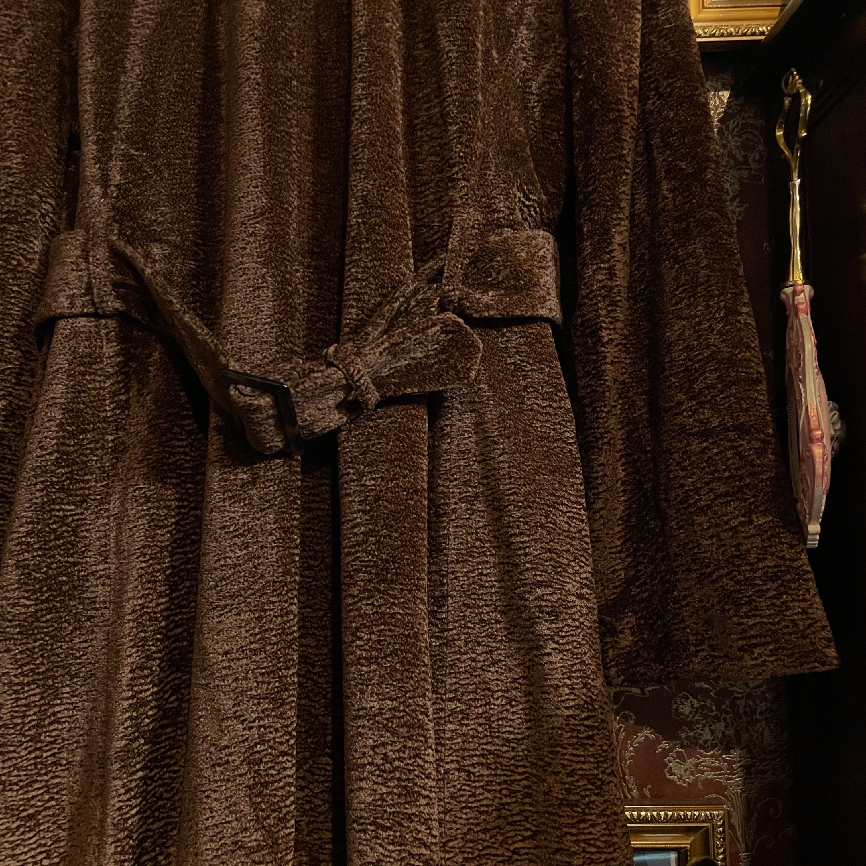プードル(アプリコット)のような深いチョコレート色が印象的なこのロングコートです。