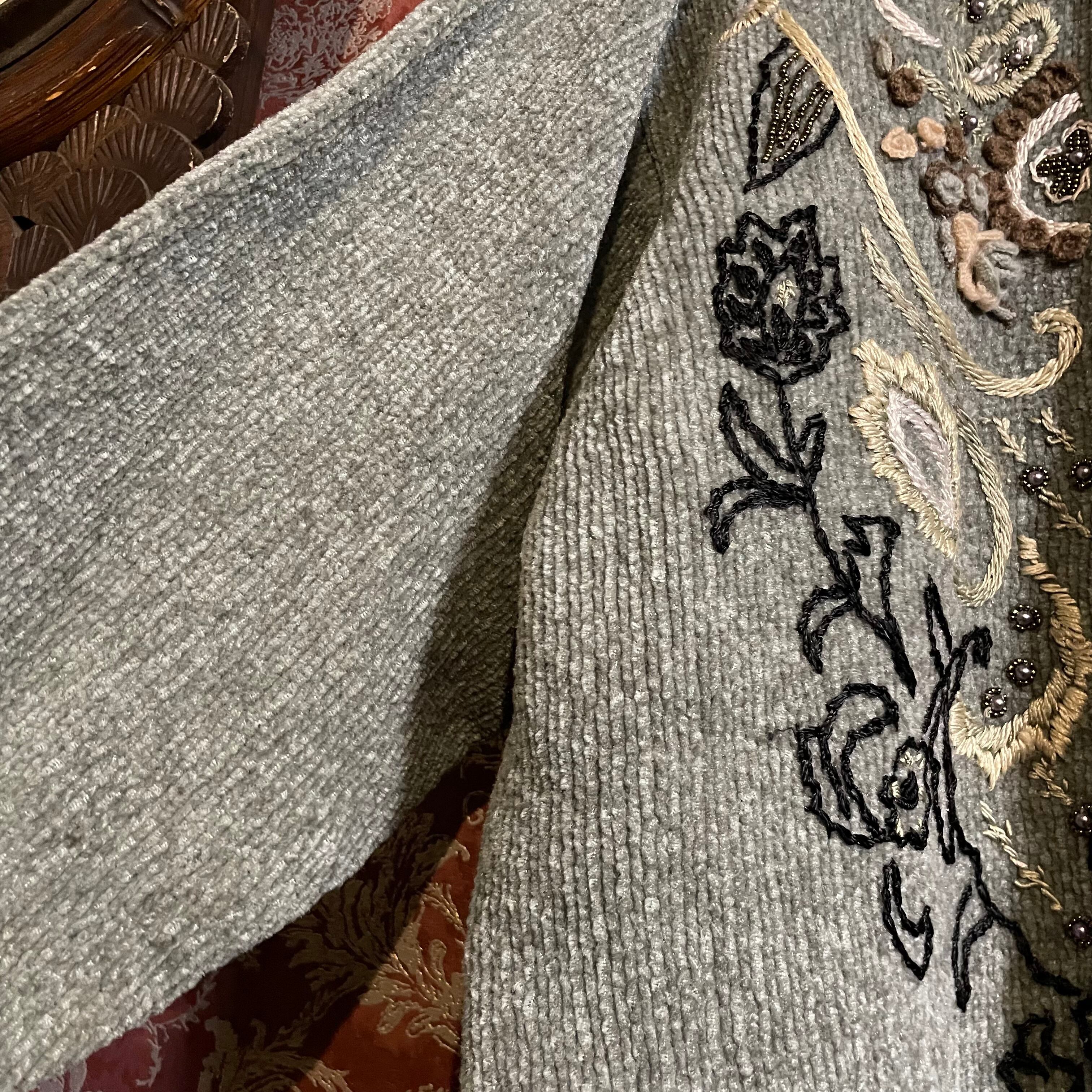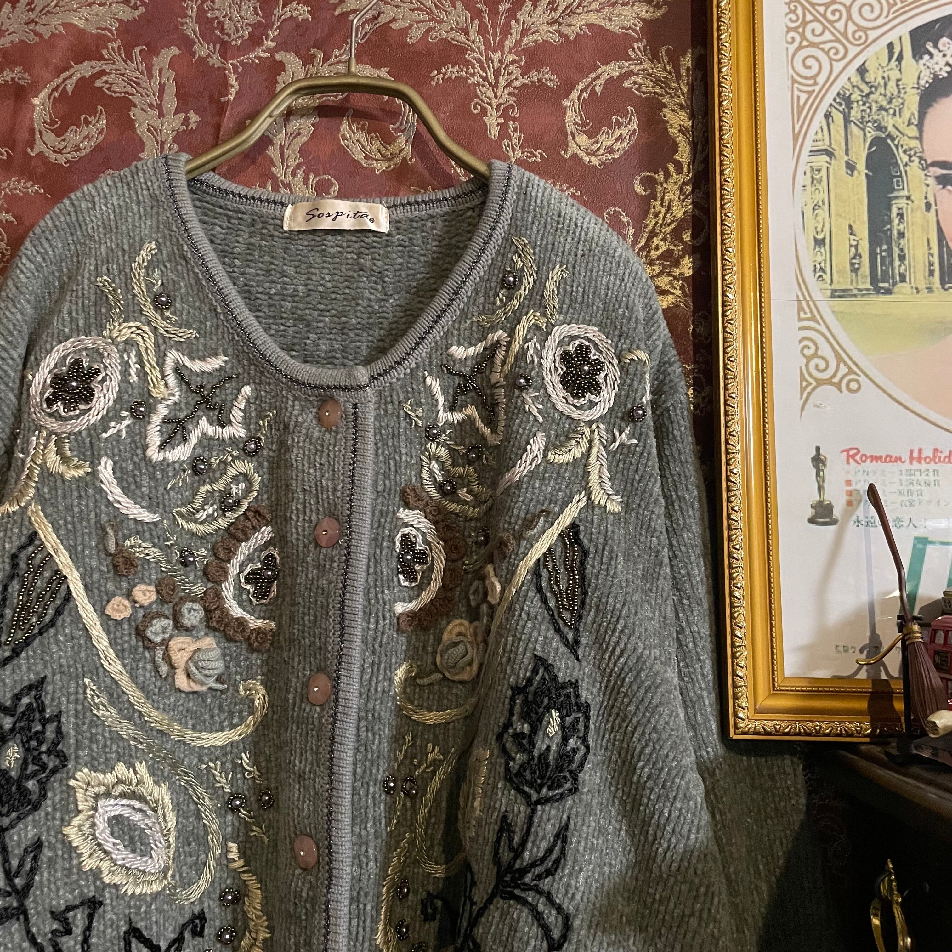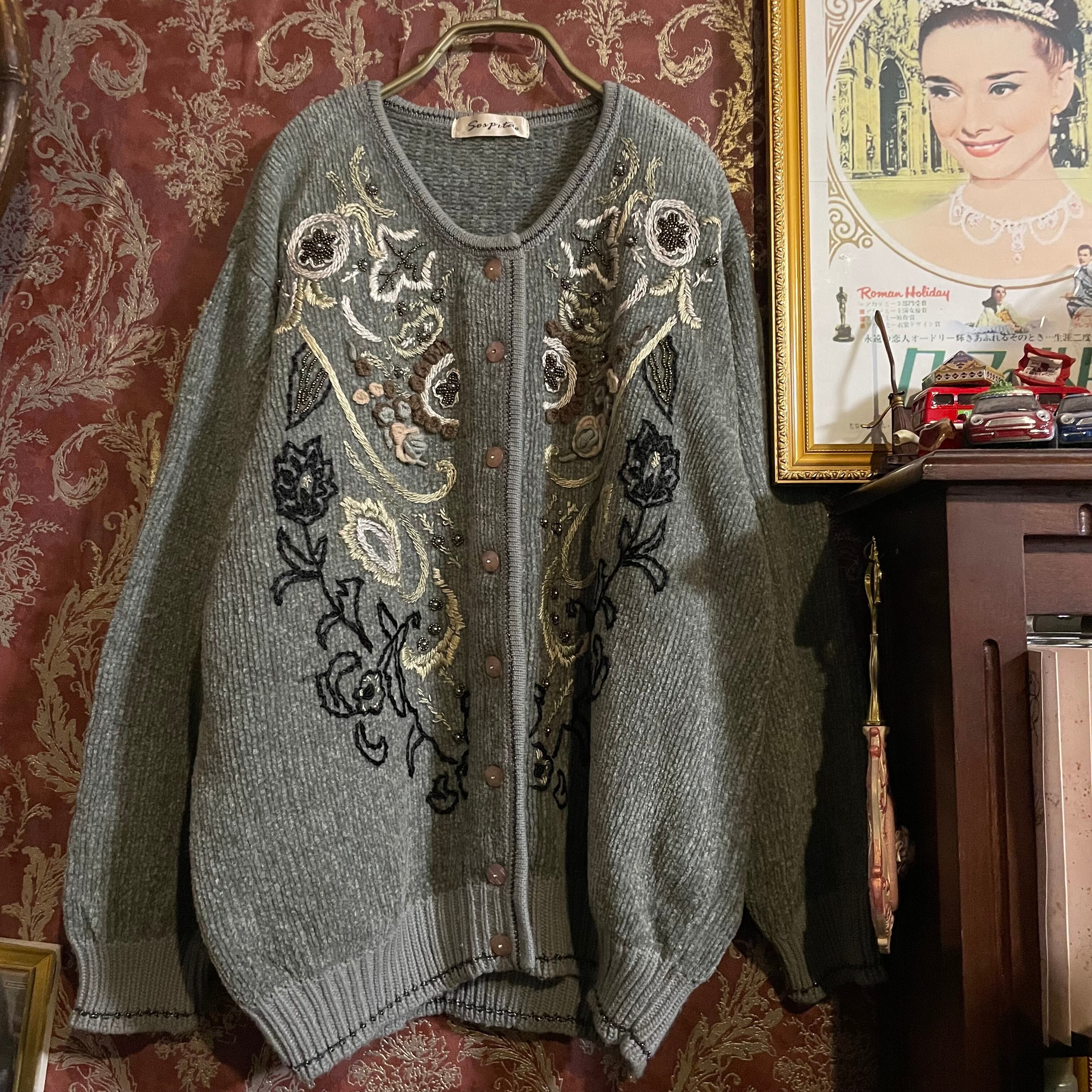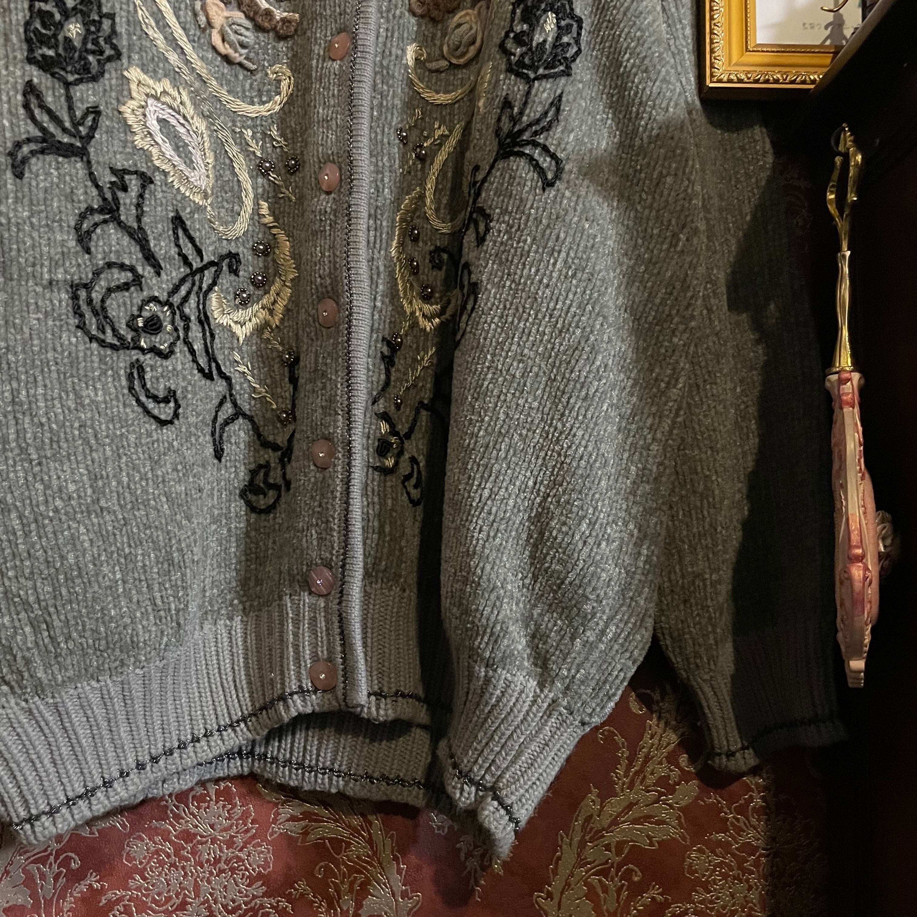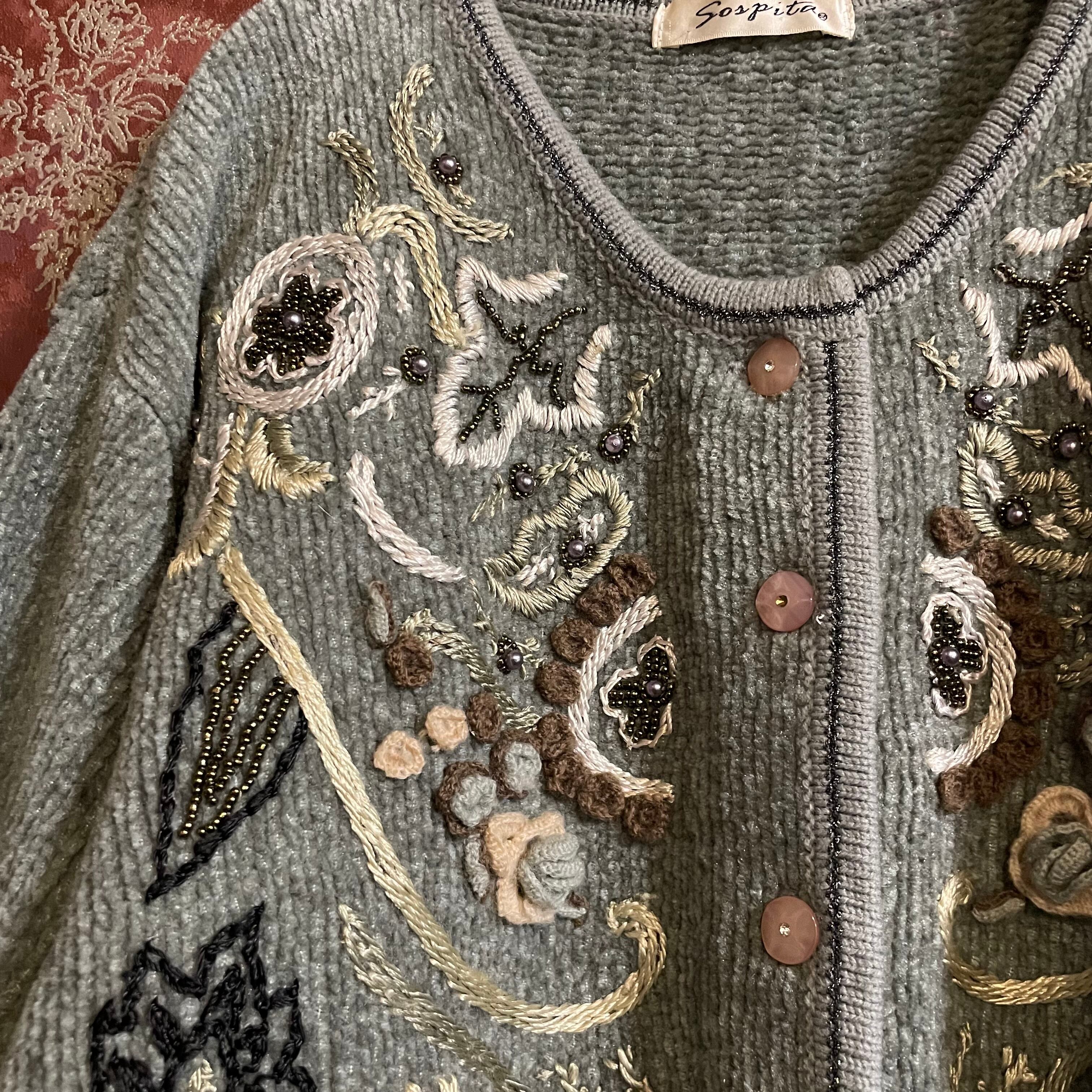 太めの毛糸ならではの厚手な質感で、ビーズが華やかな刺繍がエレガントなデザインです。