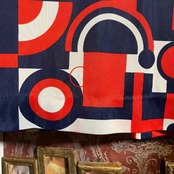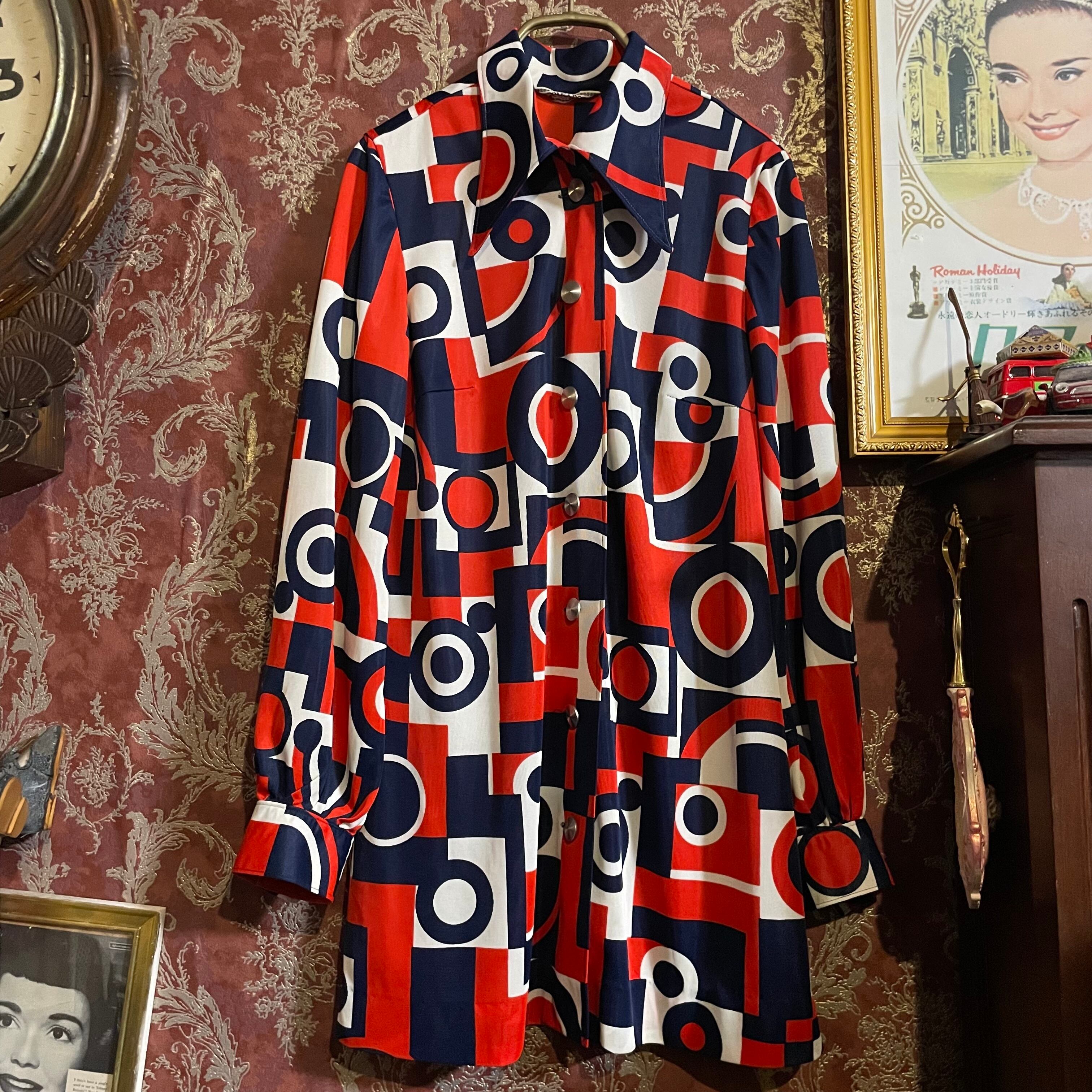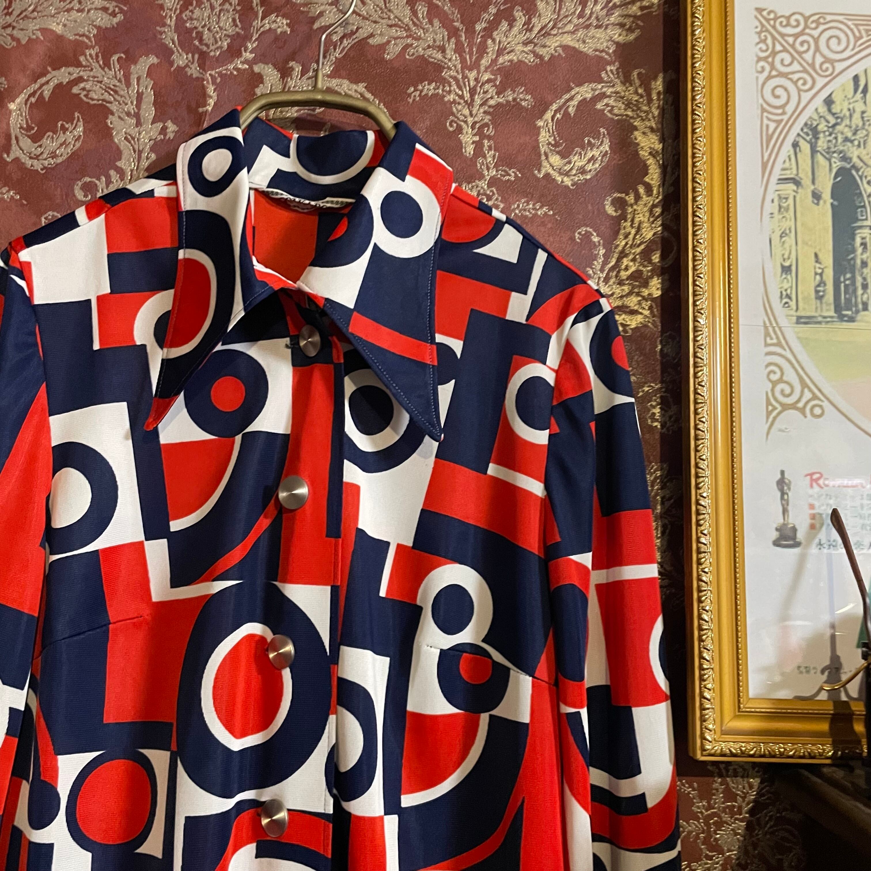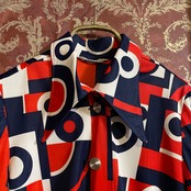 紺、赤、白の幾何学模様が印象的なヴィンテージブラウスです。
