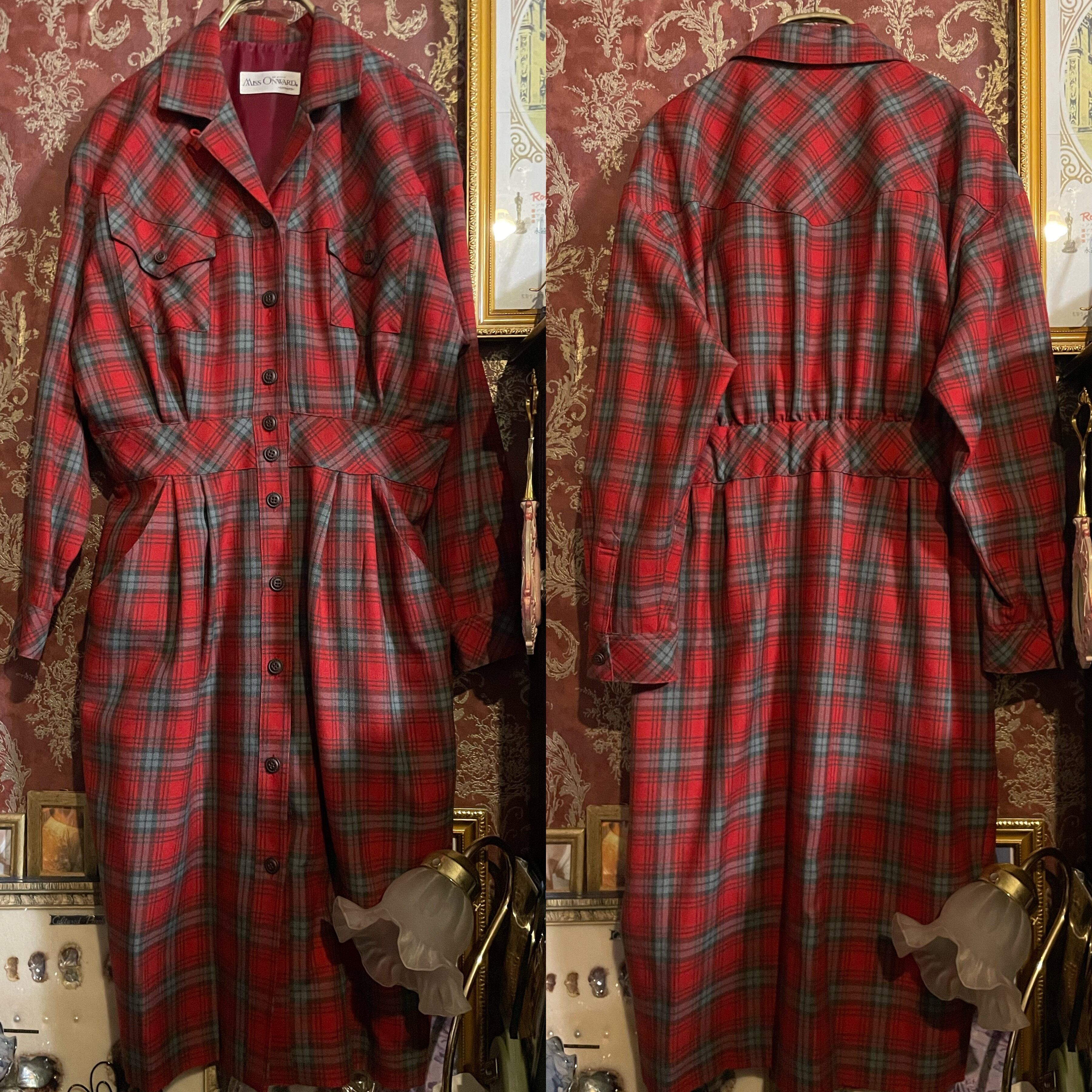 落ち着いたトーンの赤チェックが、クラシックでありながらもトレンディな印象を与えます。