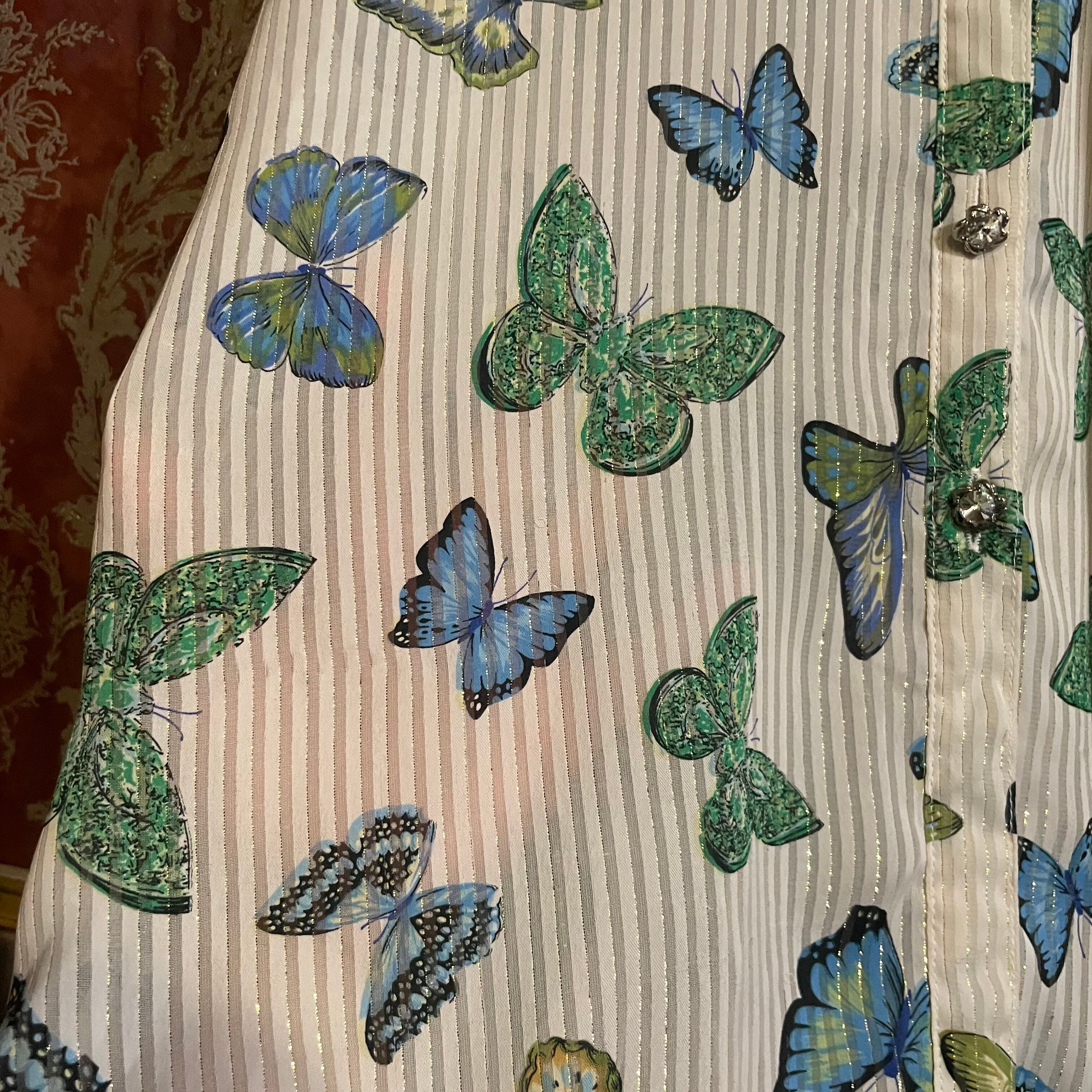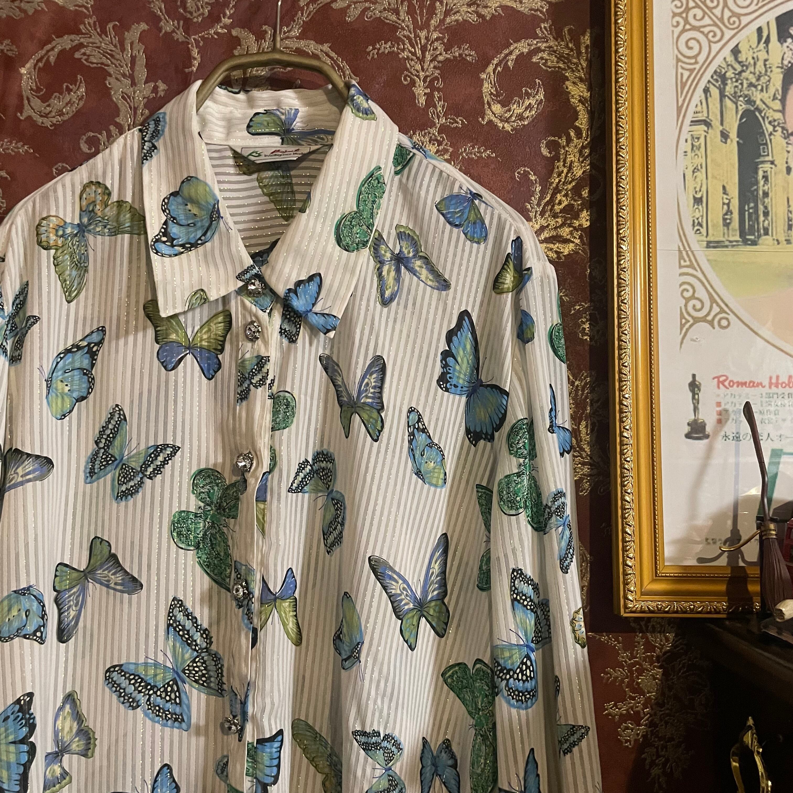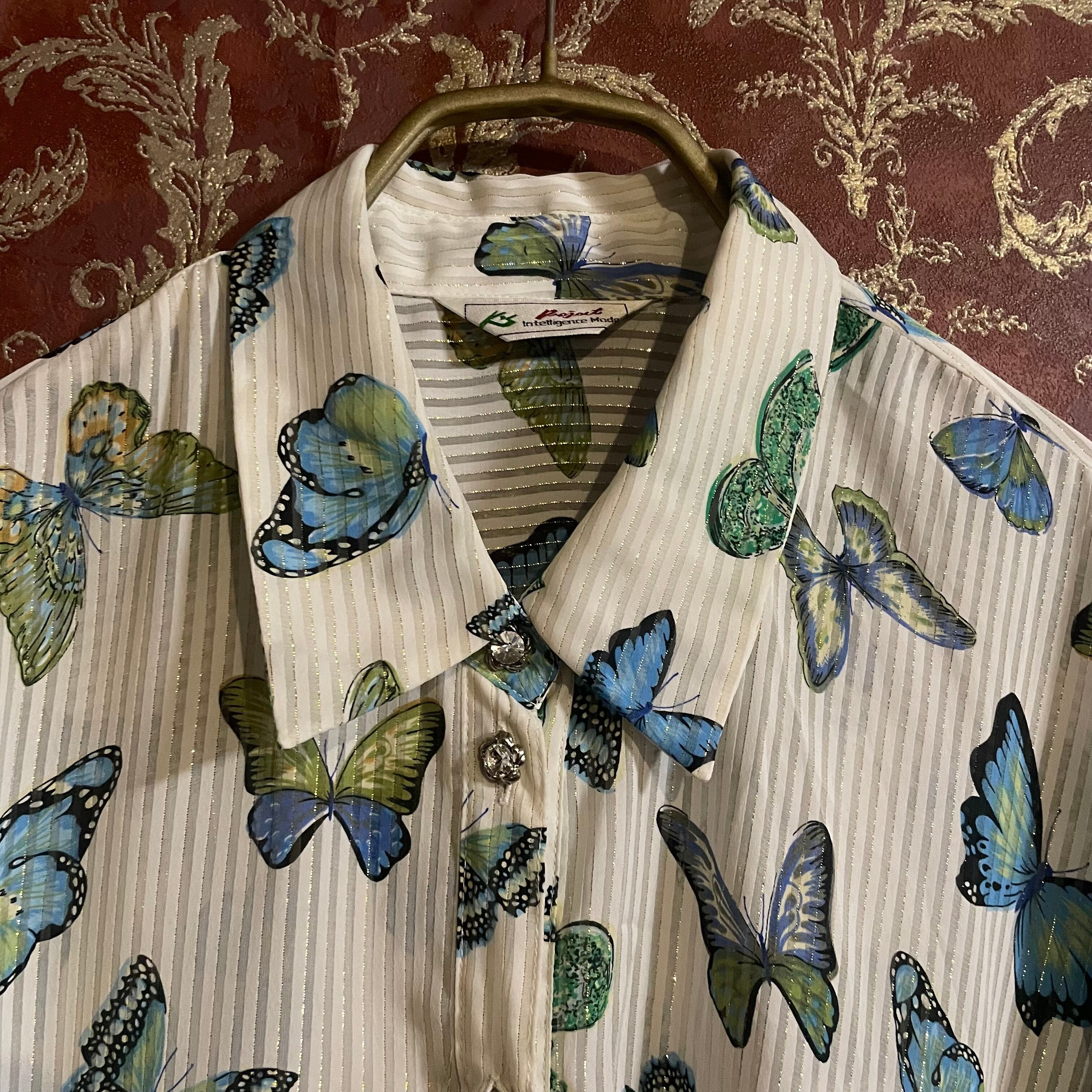 white × gold stripe butterfly blouse