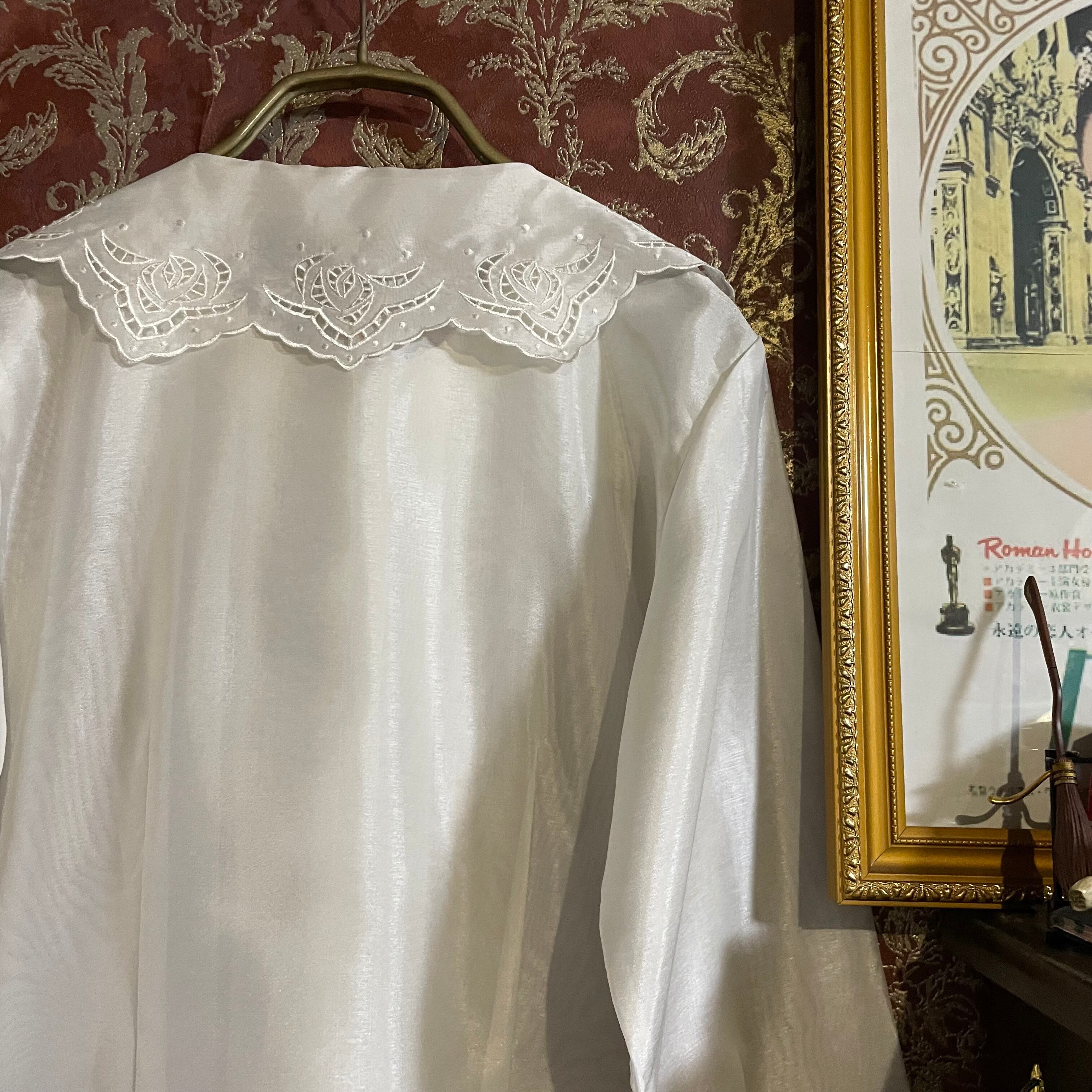 大きな襟が印象的な白のヴィンテージブラウスです。