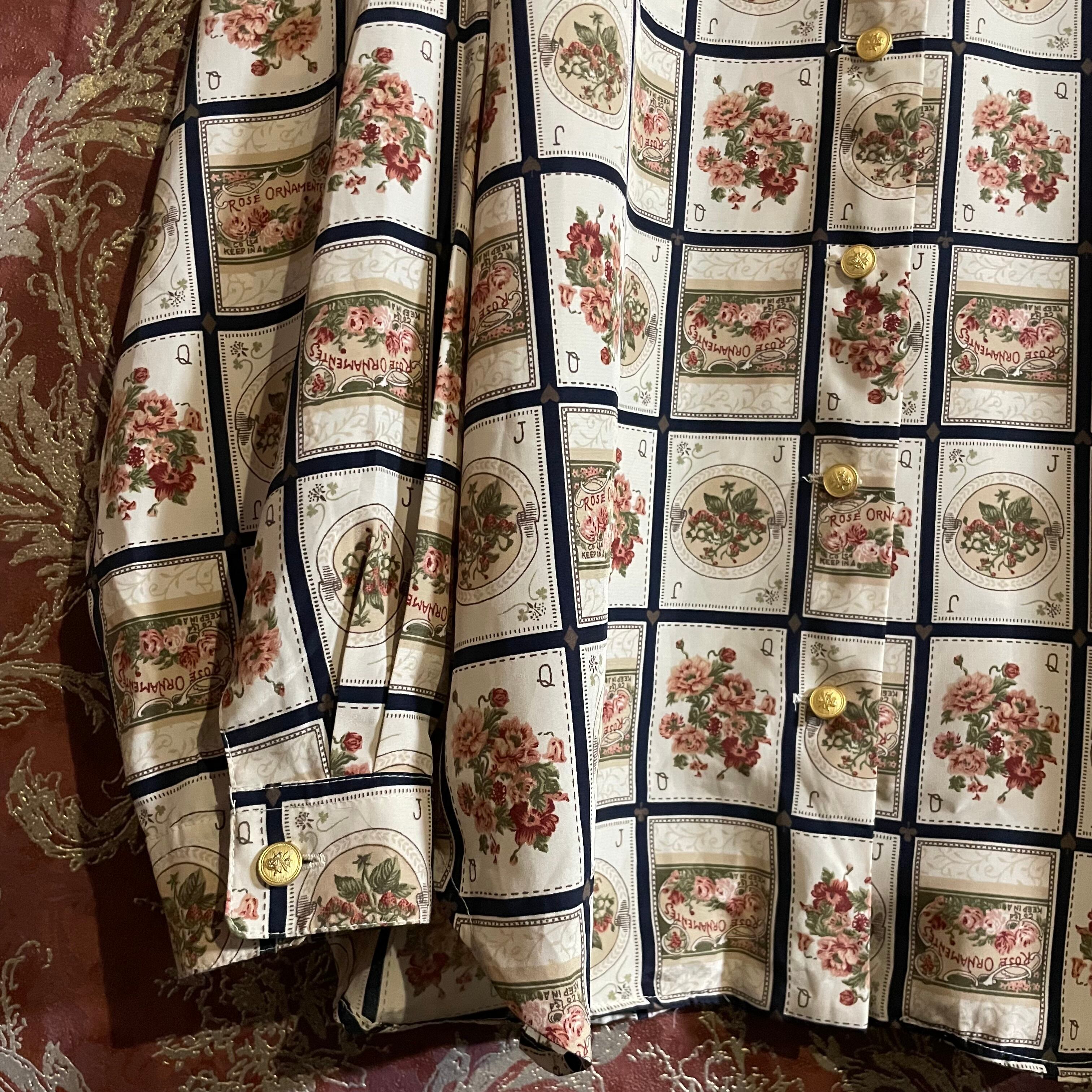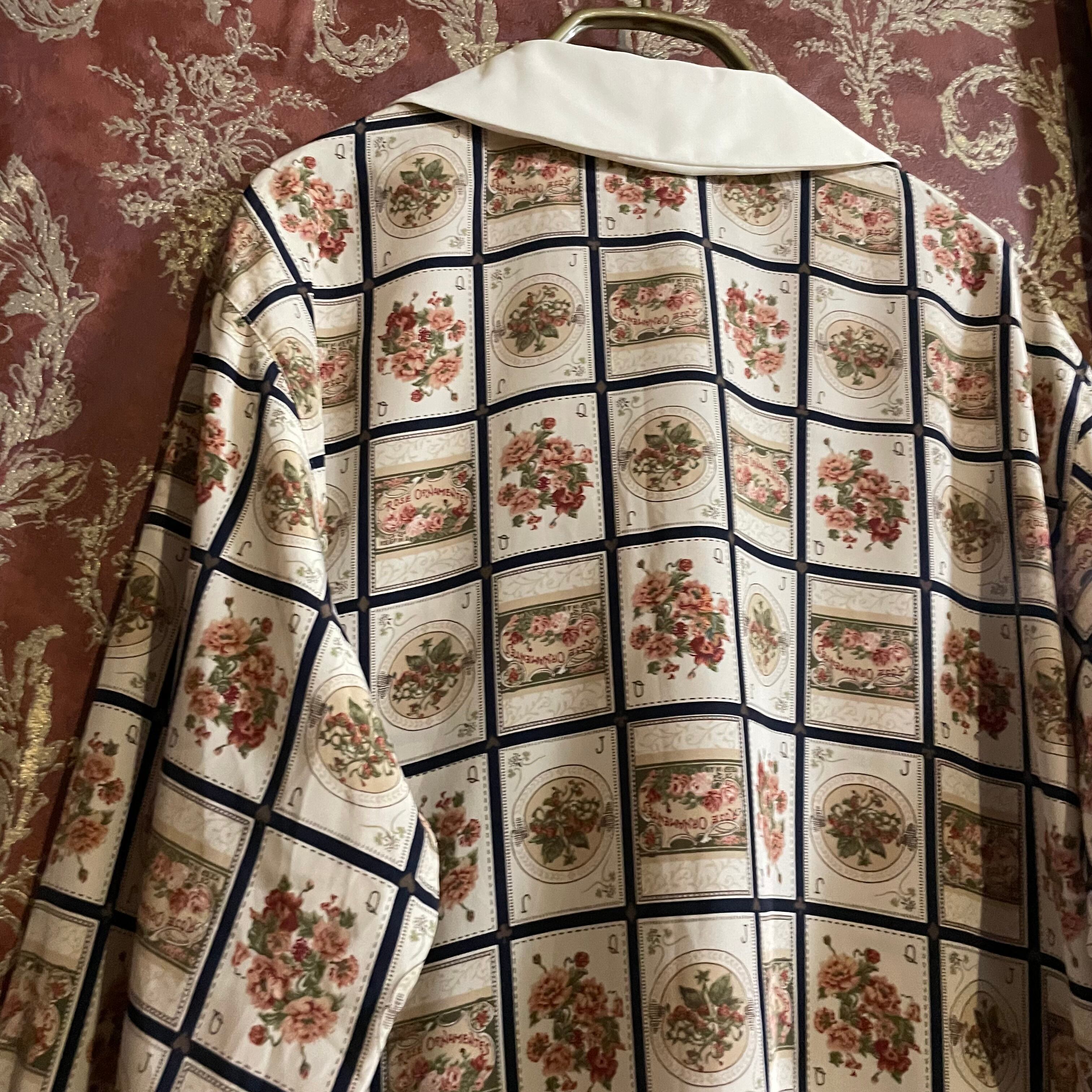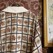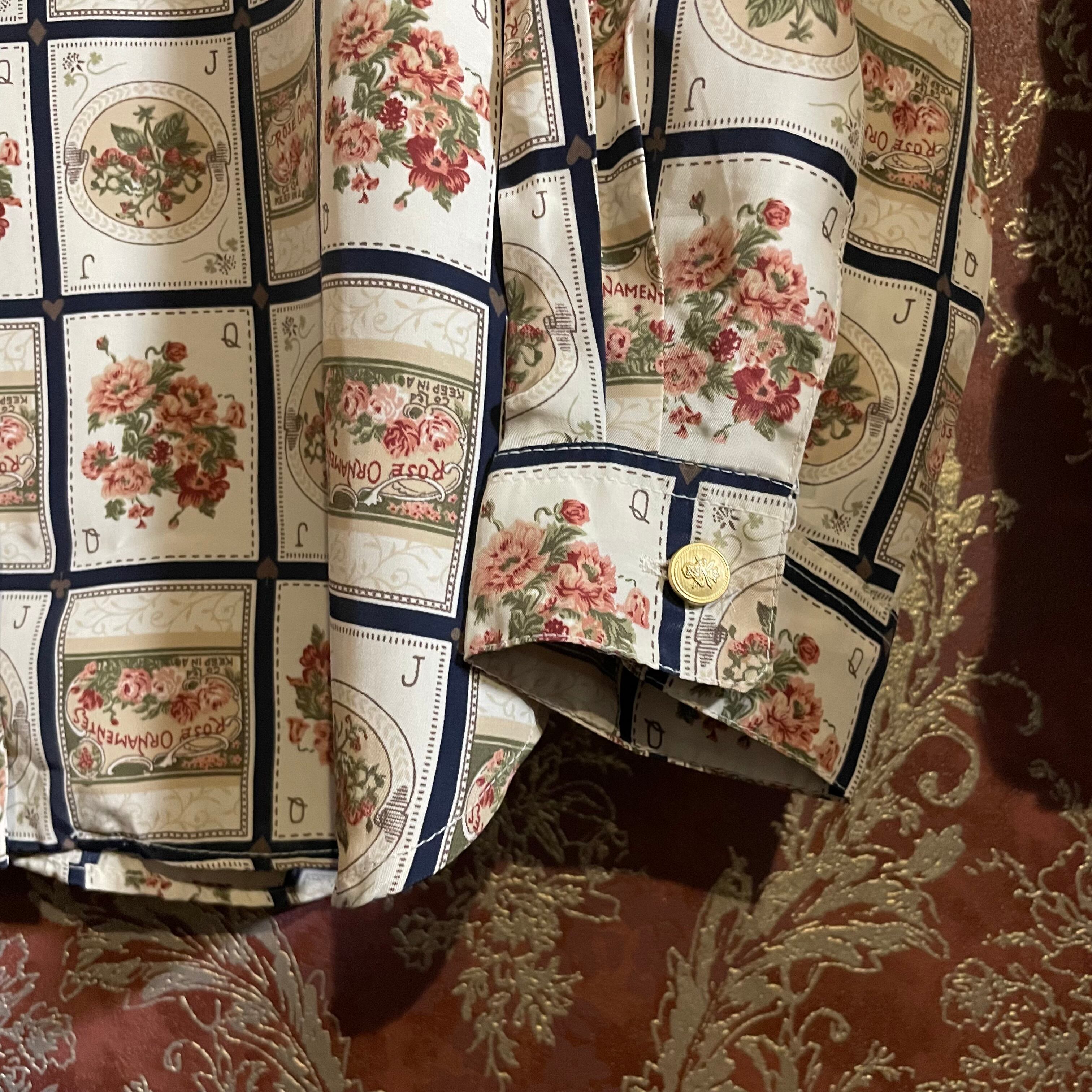 花柄のトランプが並べられたデザインが魅力のブラウスです。