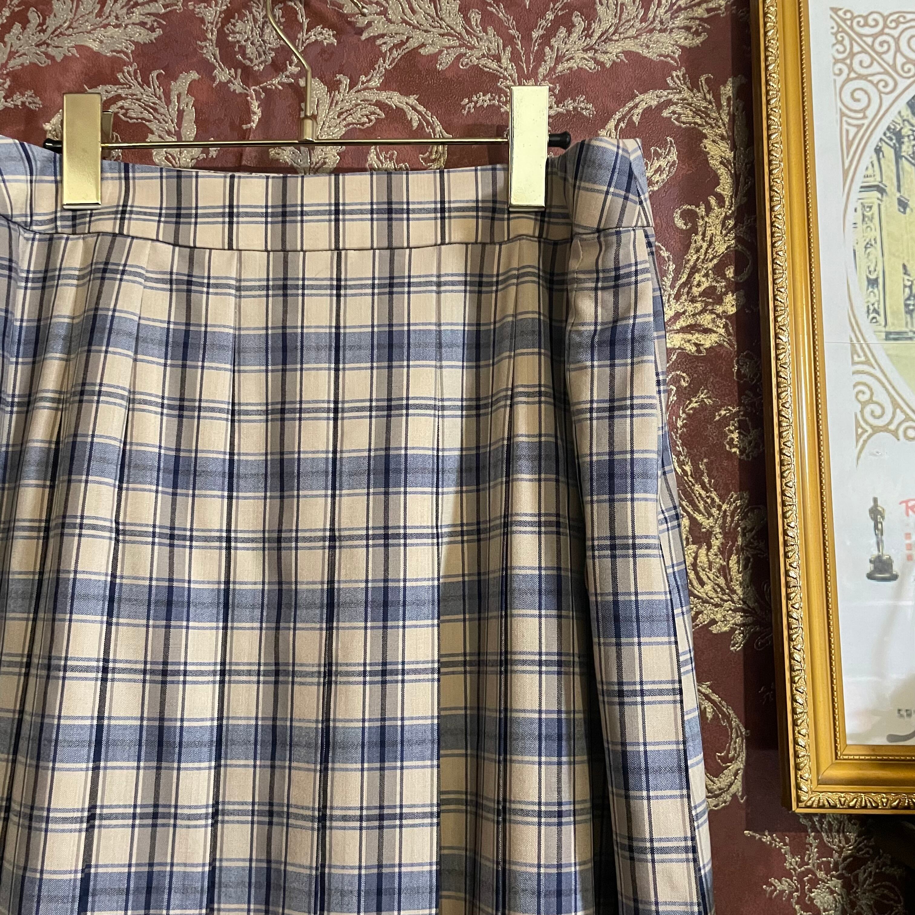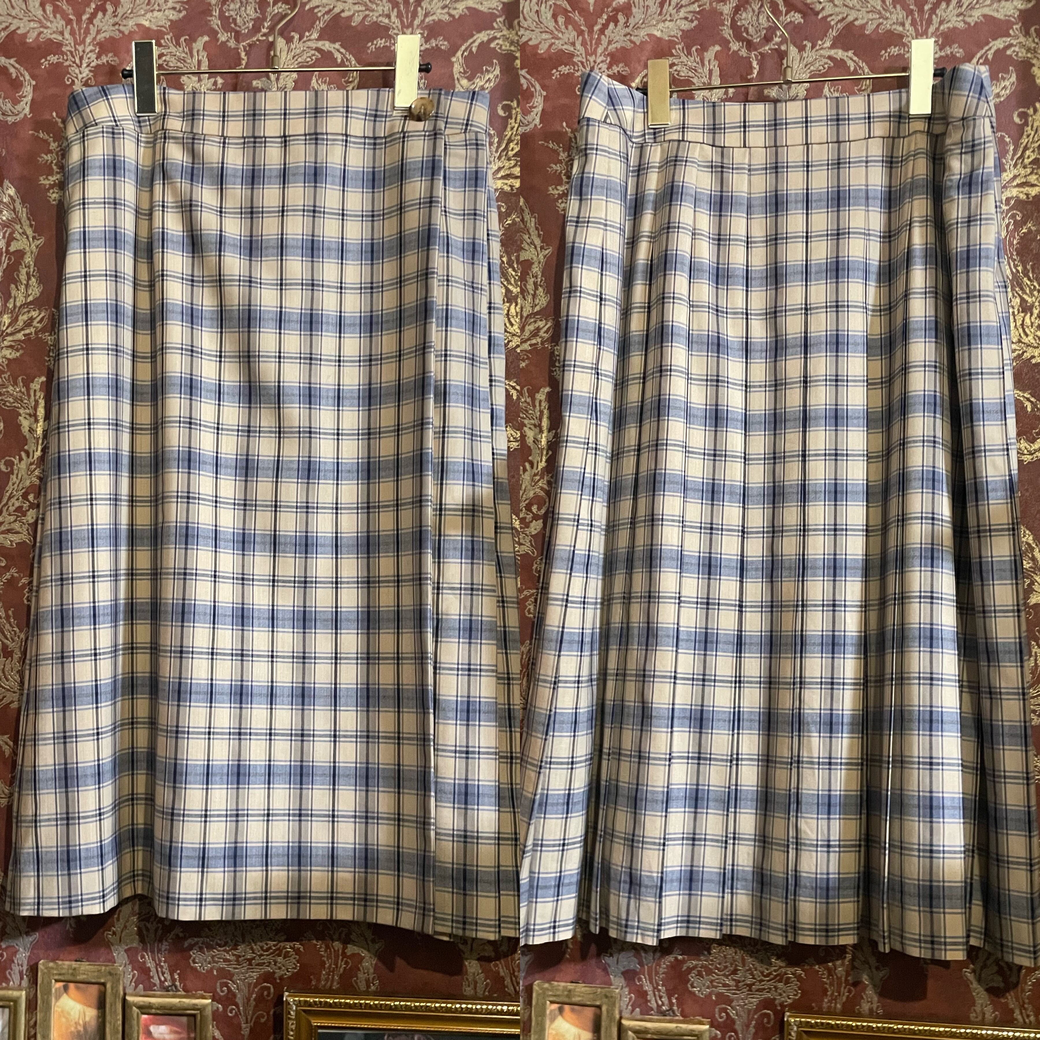 DAKS light blue × beige plaid wrap skirt