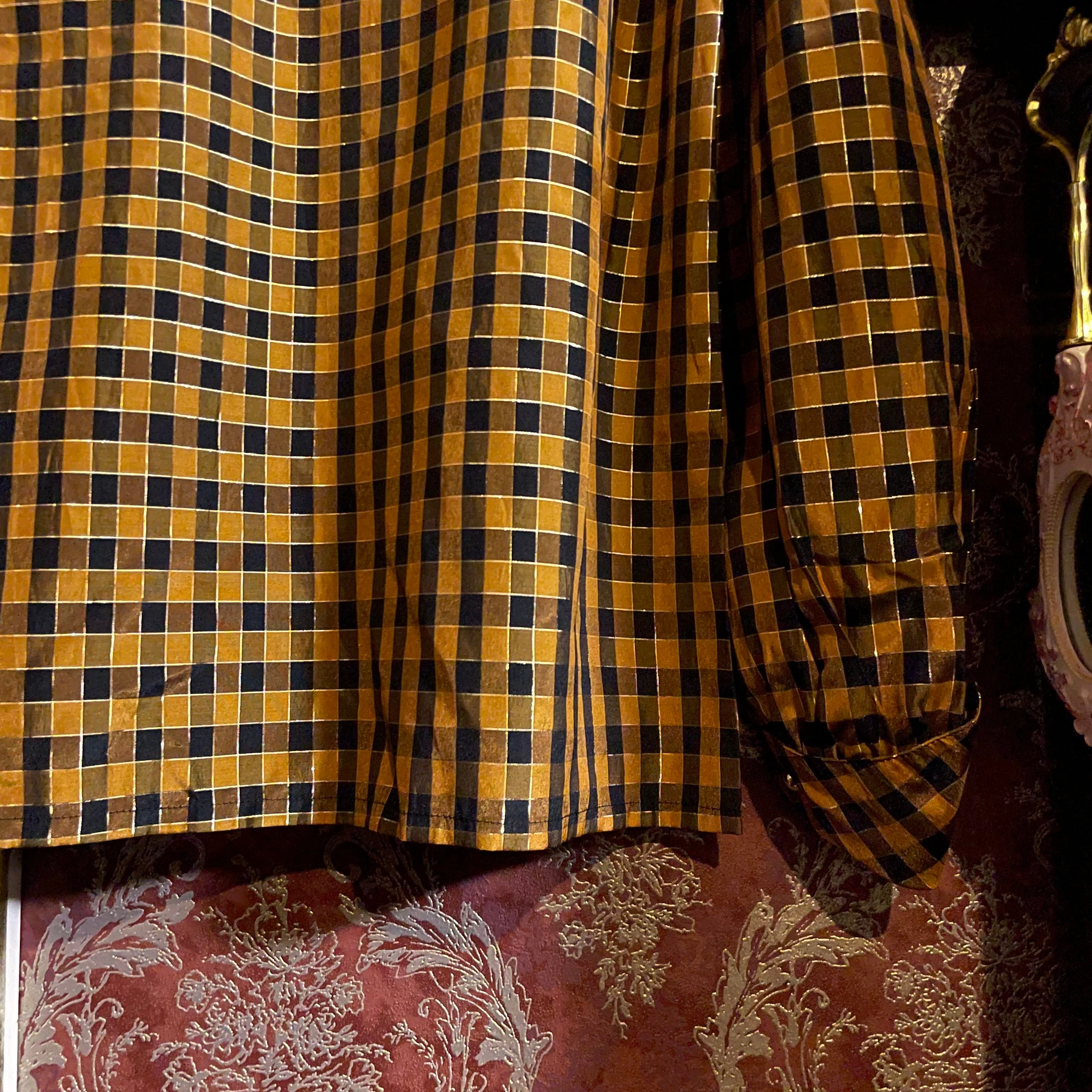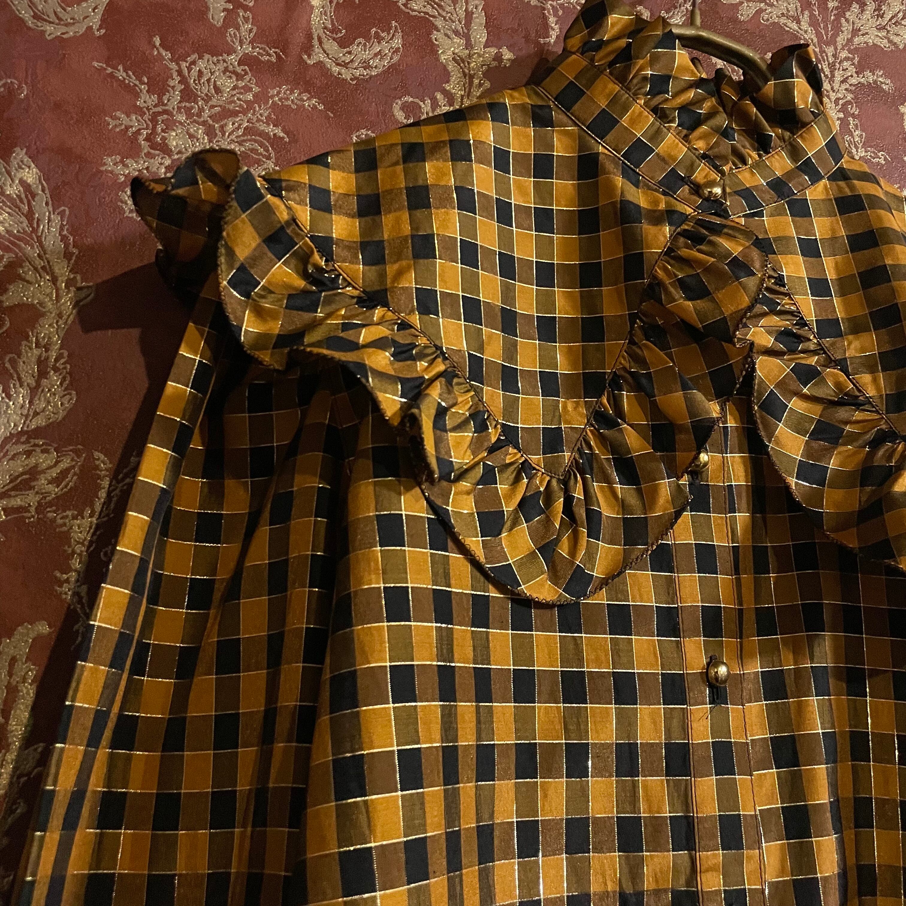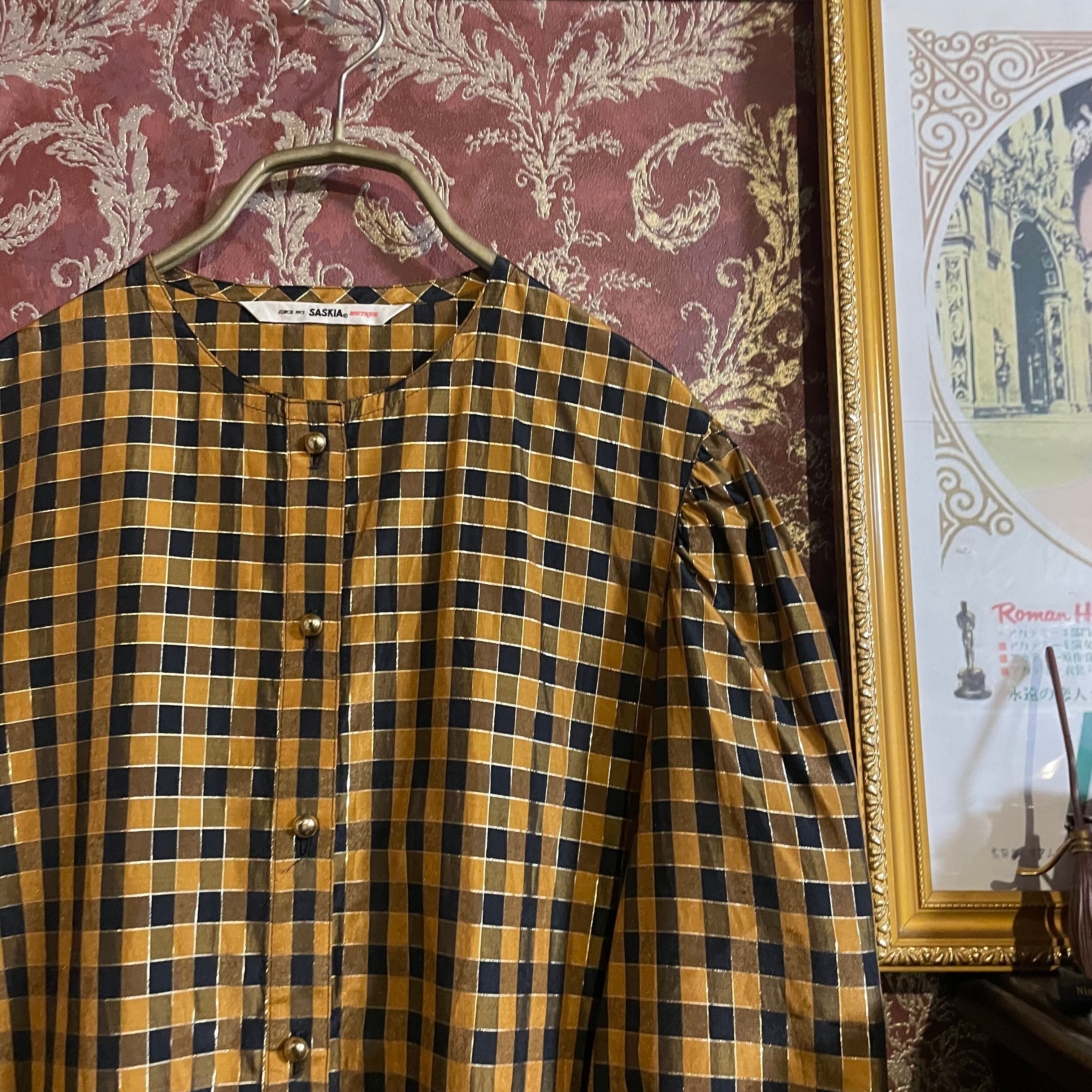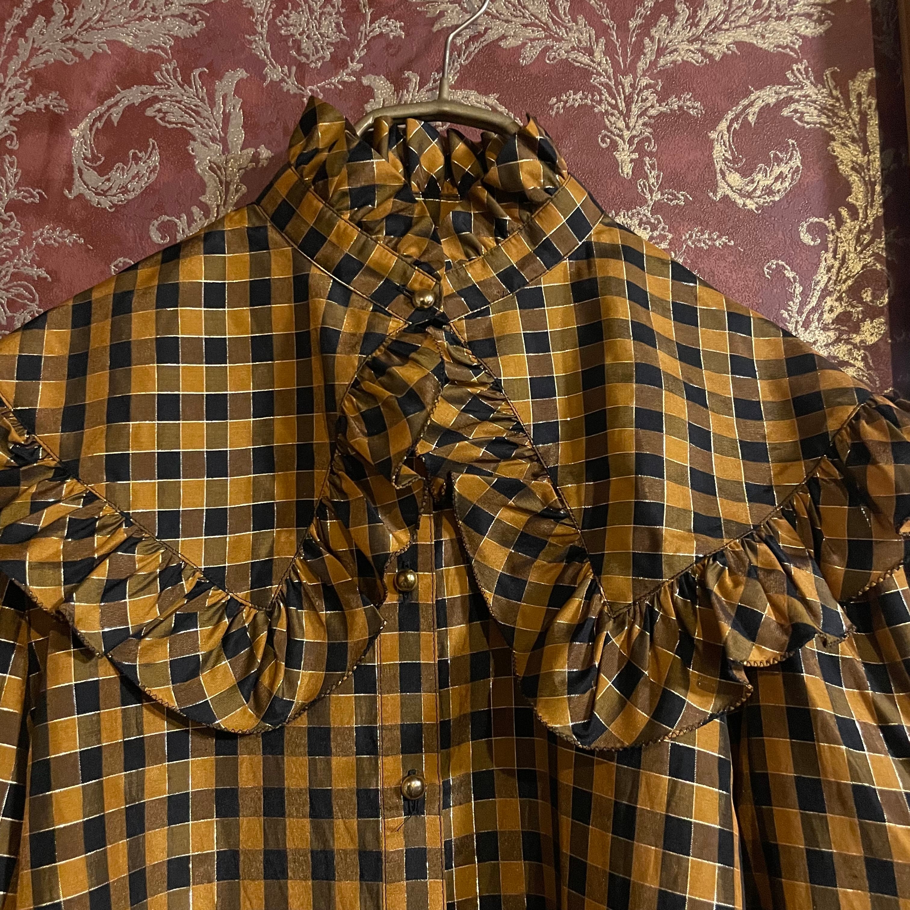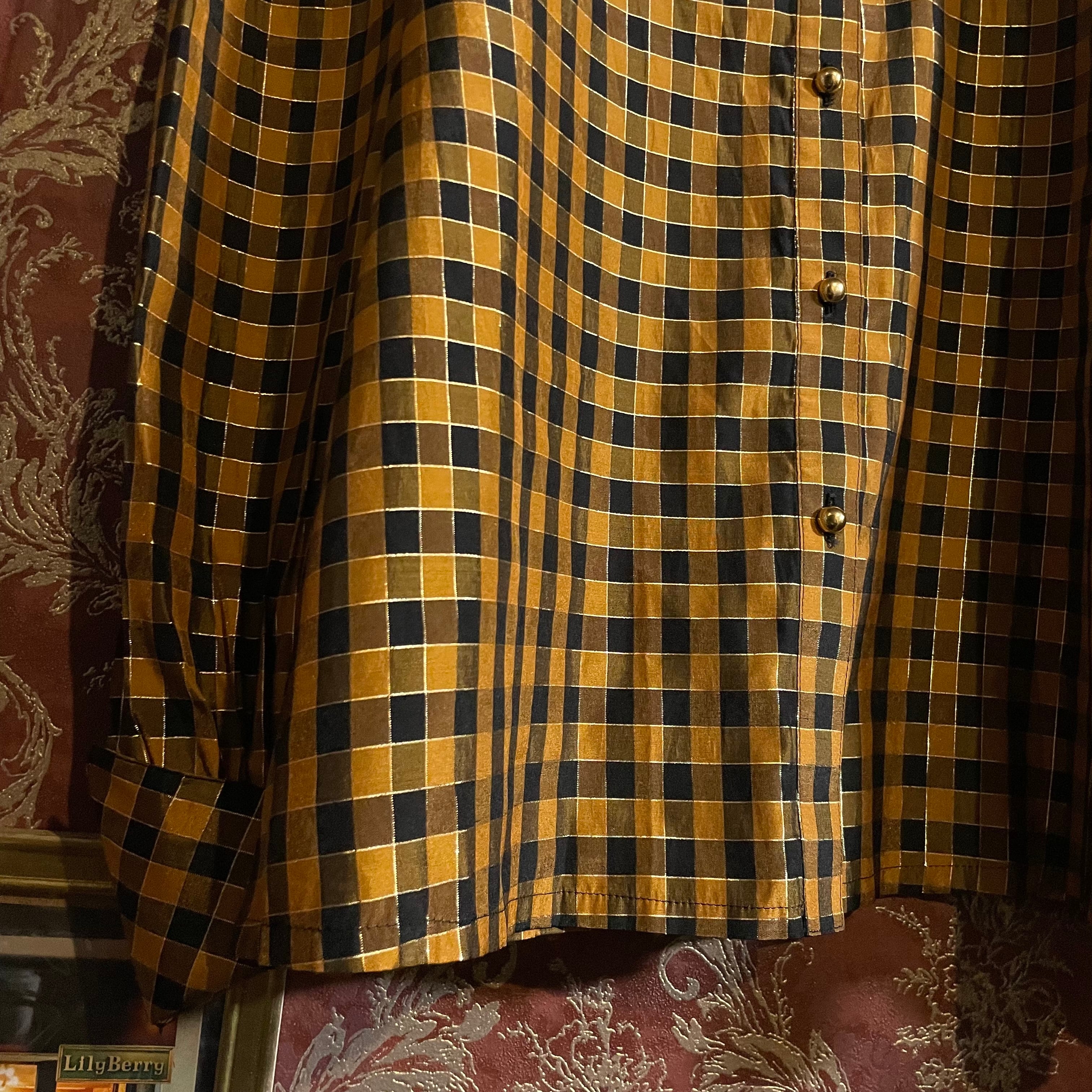 黄色と黒のチェック柄が特徴的なヴィンテージブラウスです。