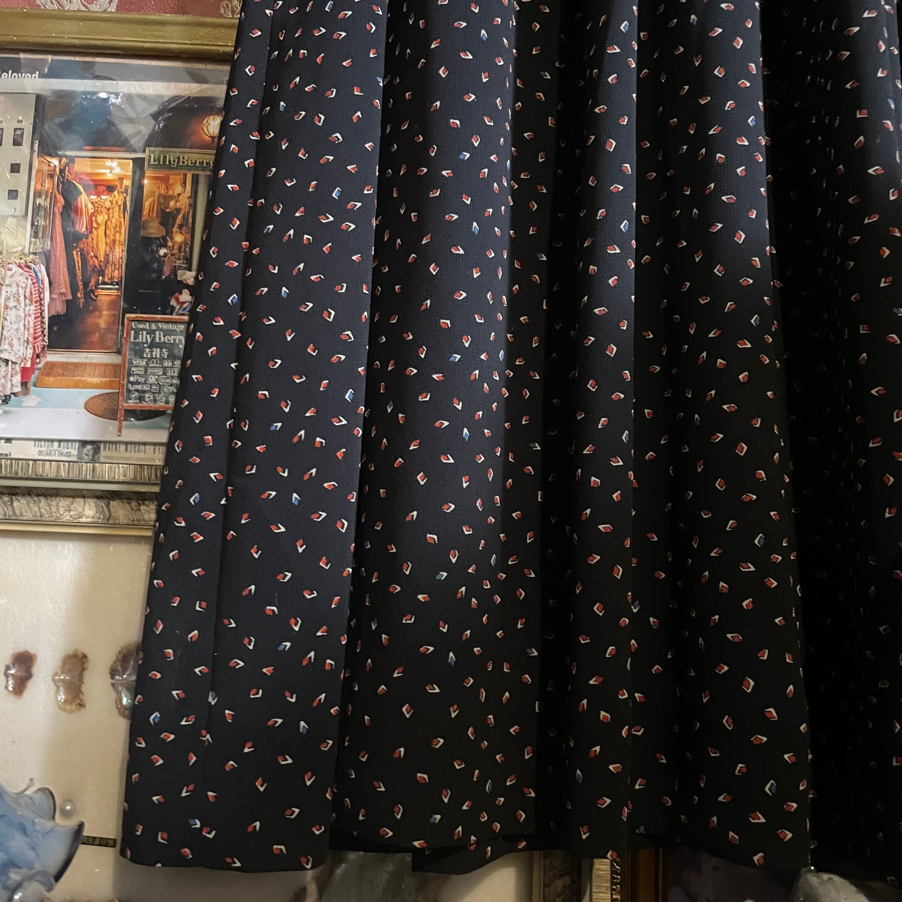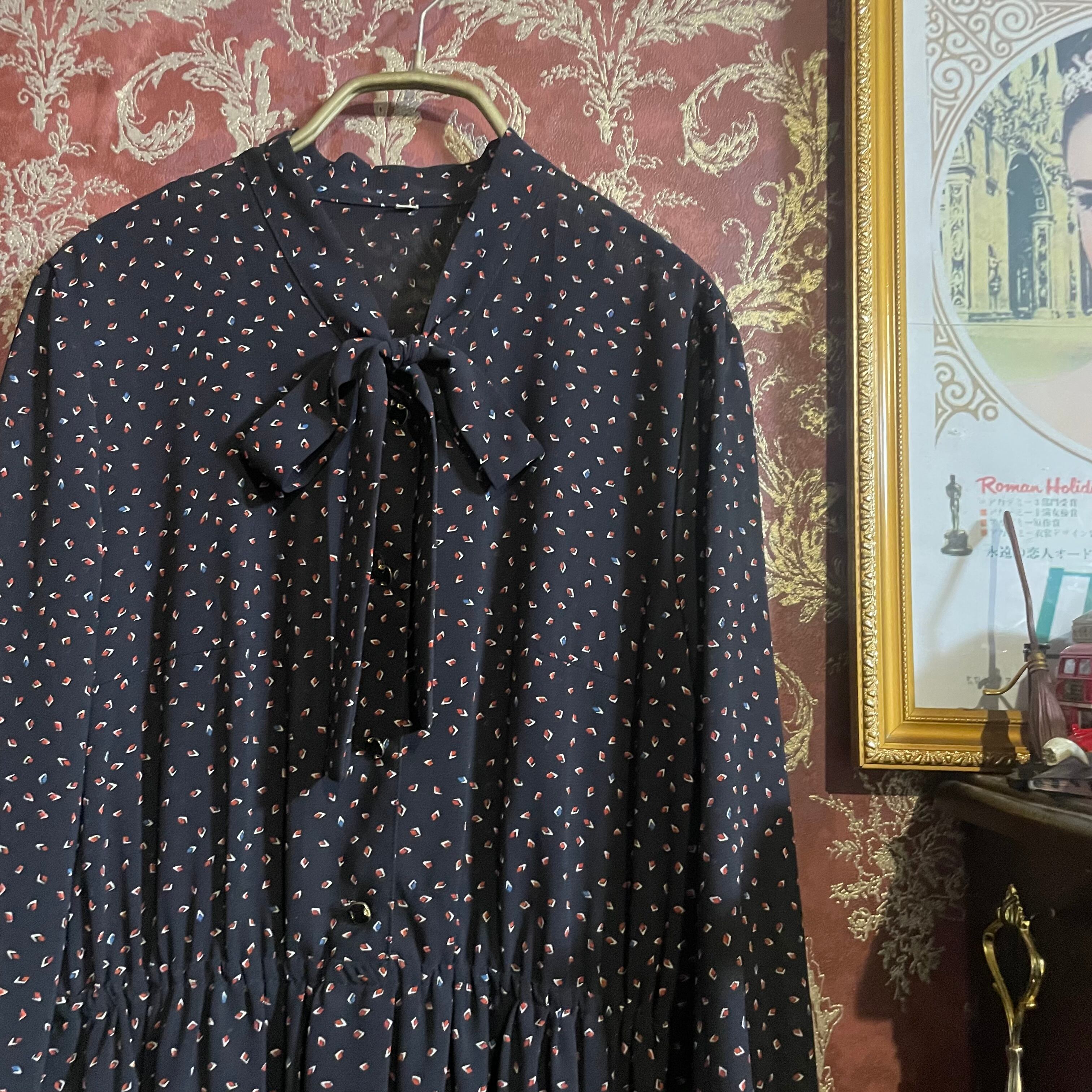 黒を基調としたレトロなスクエアパターンのワンピースです。