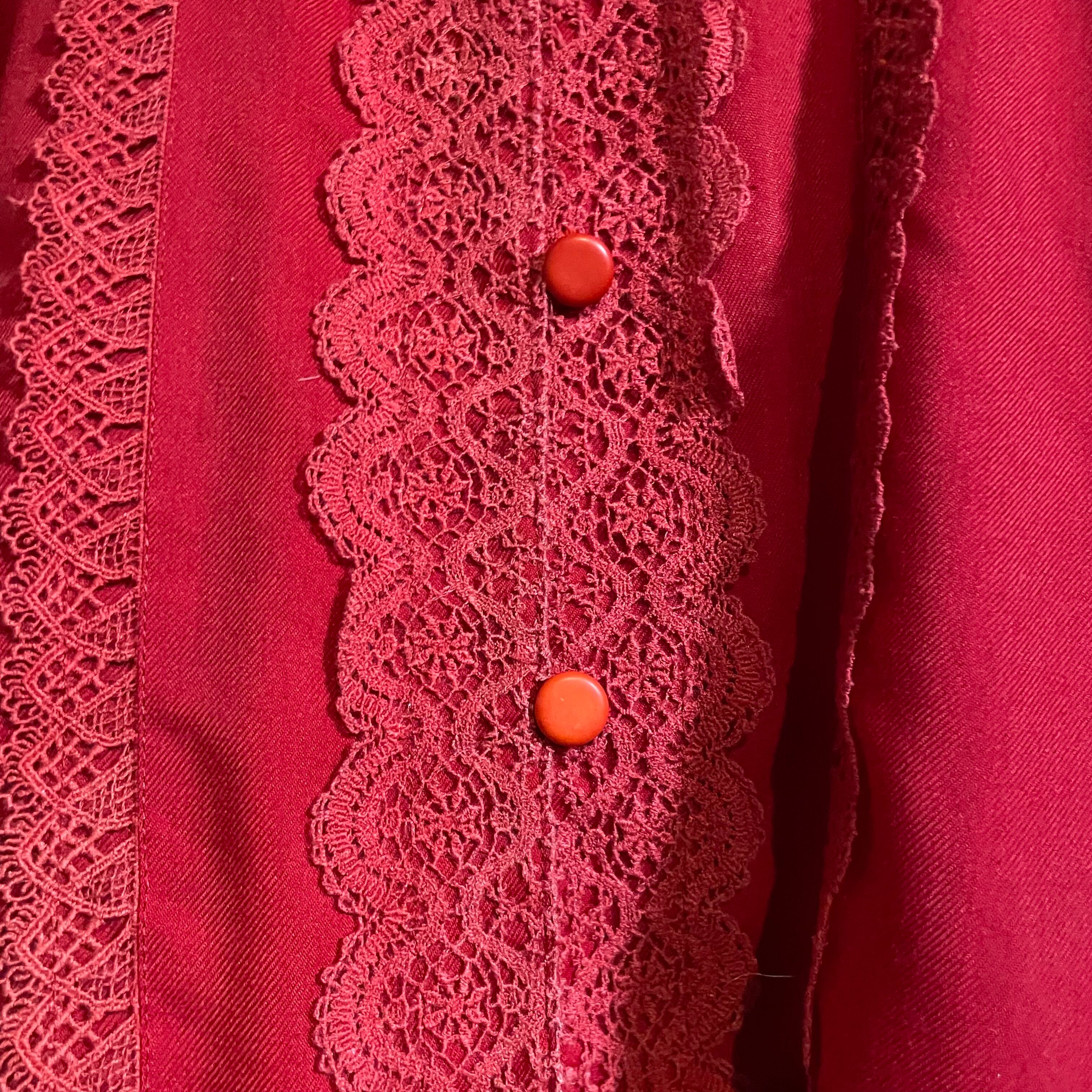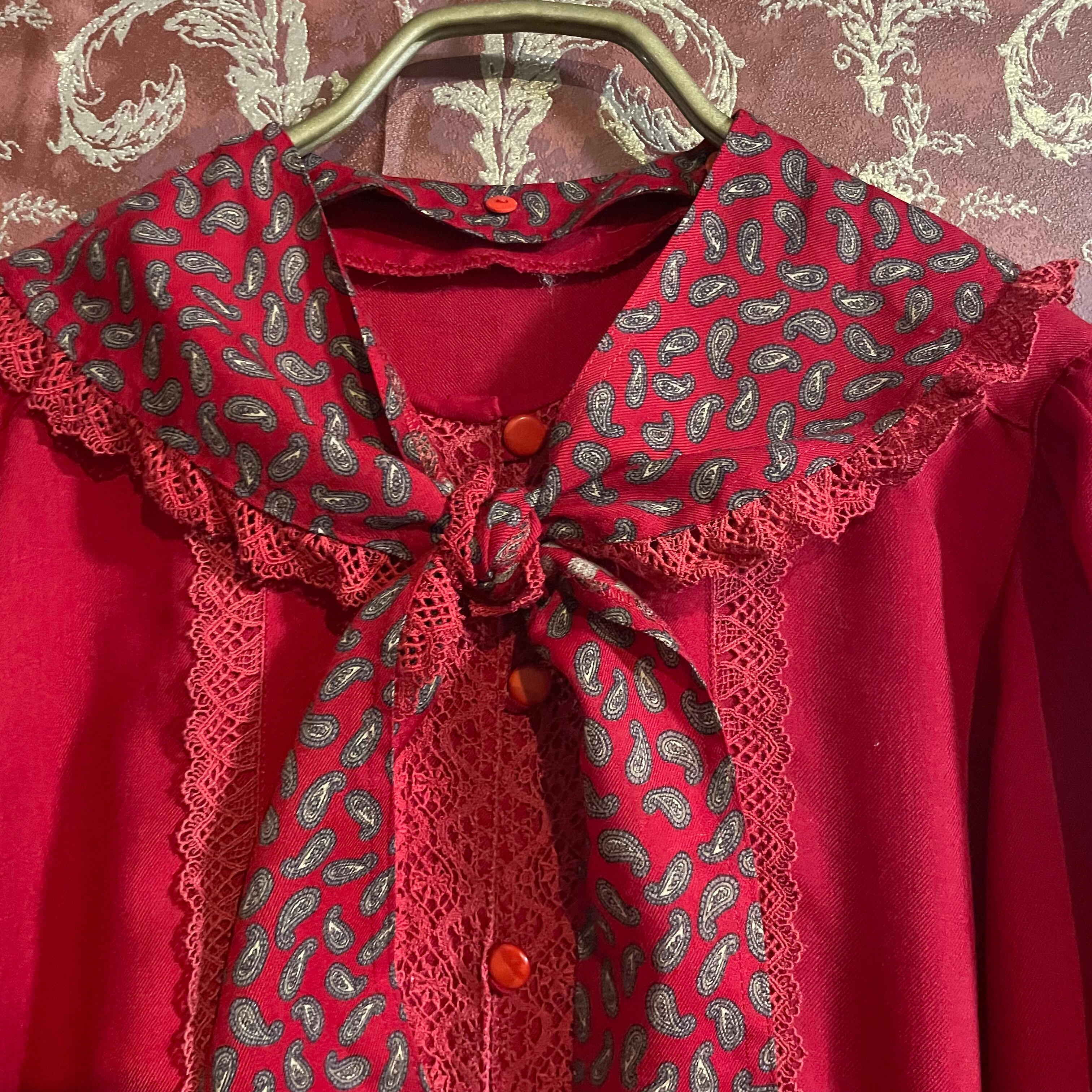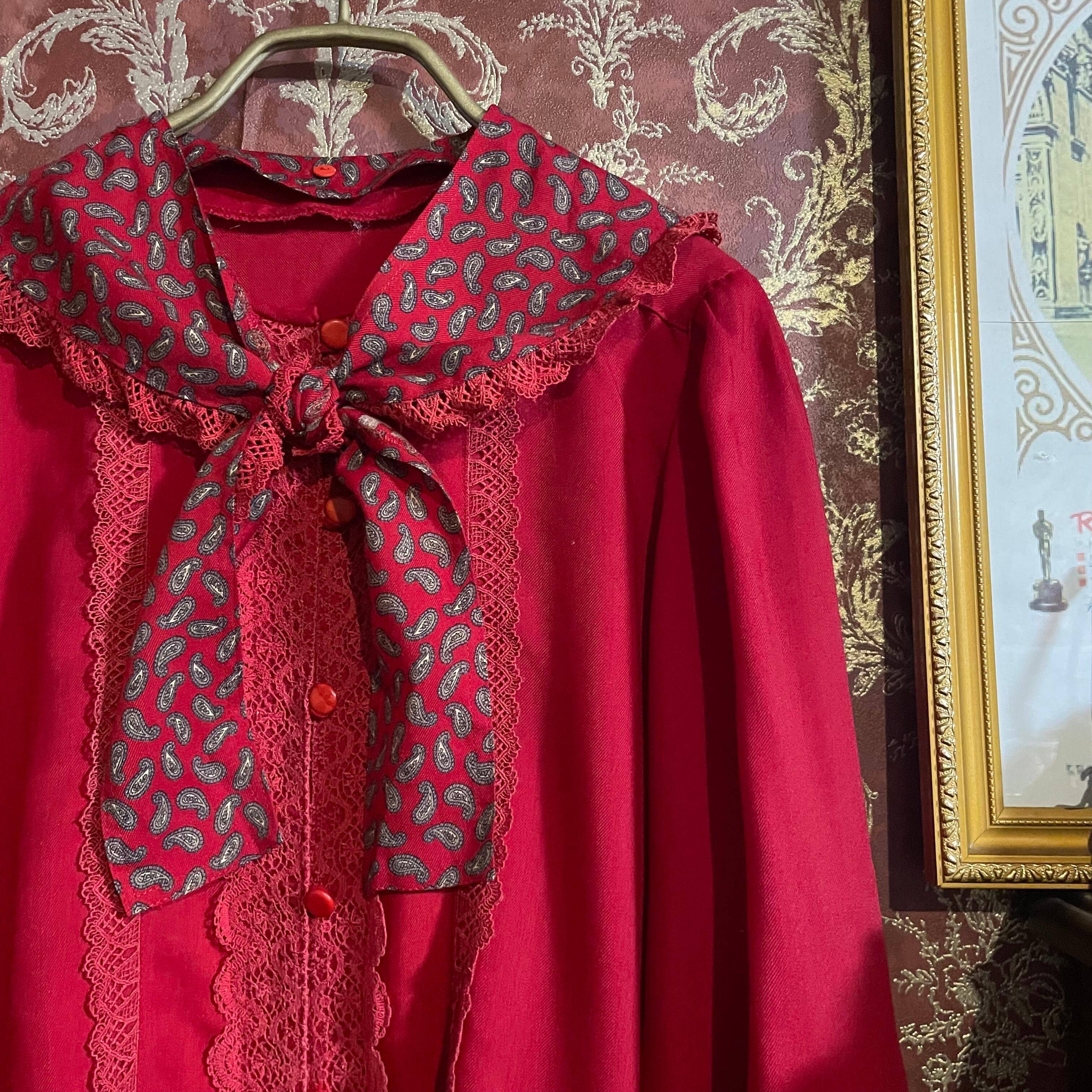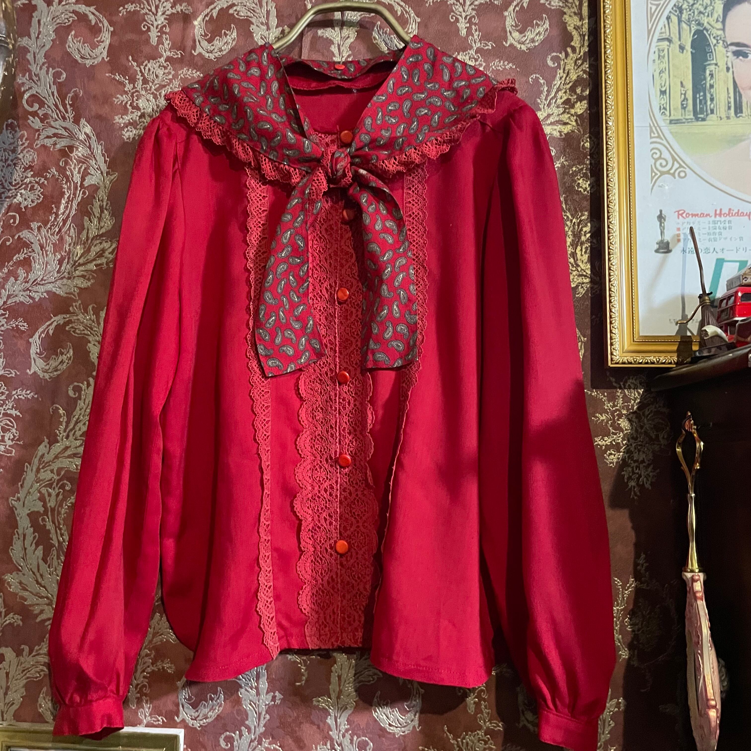 赤を基調としたレトロな雰囲気が魅力のブラウスです。